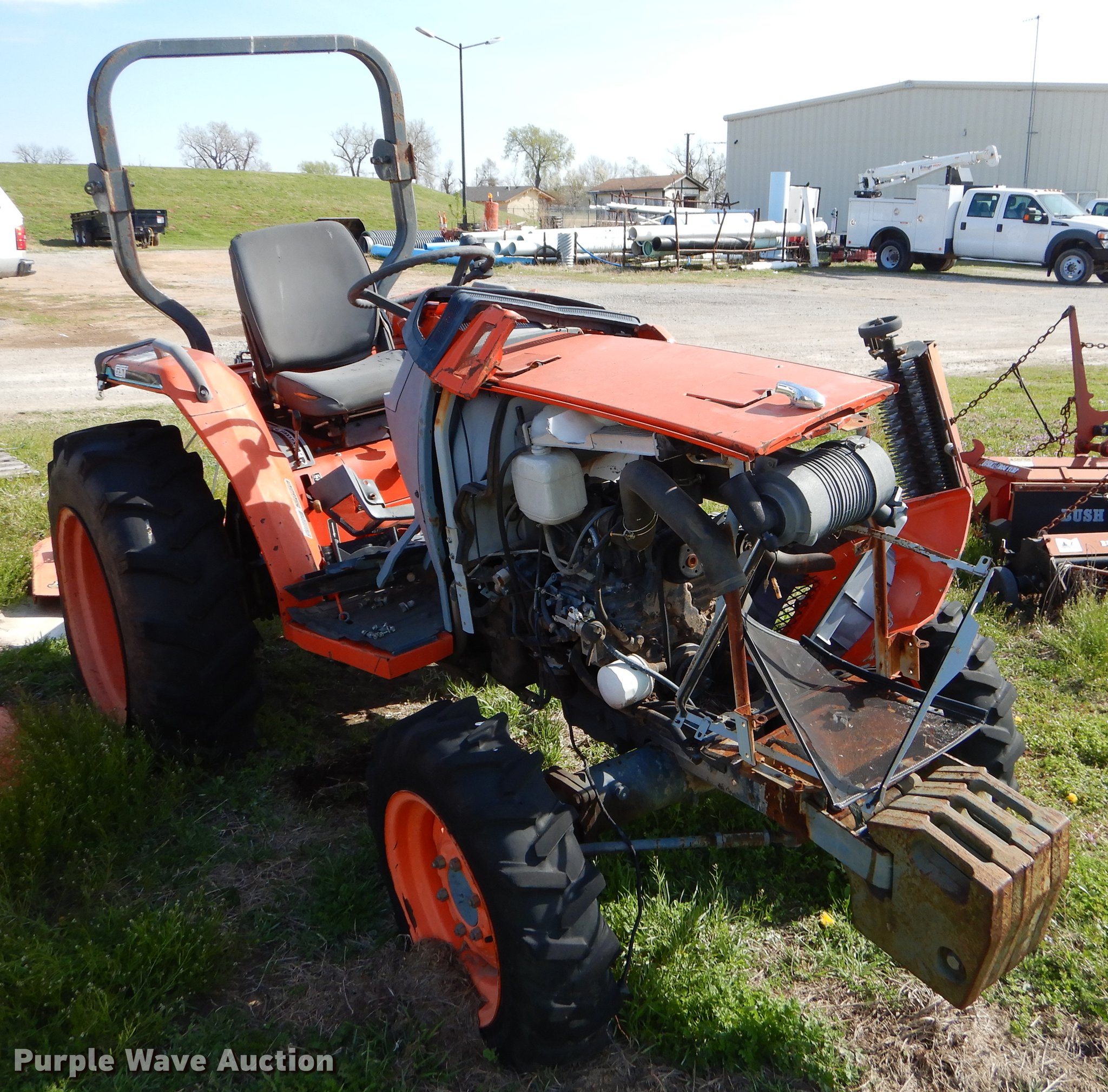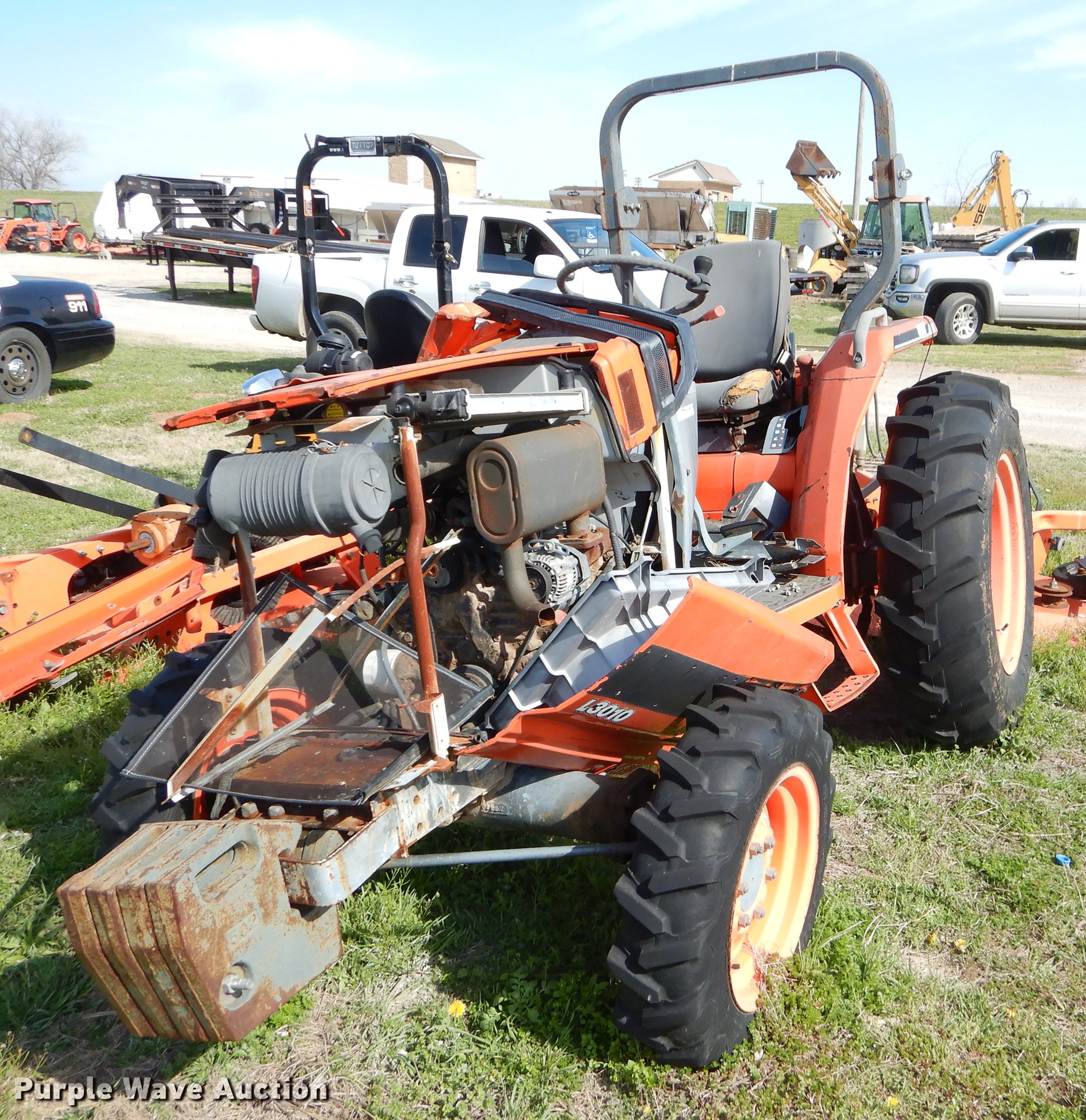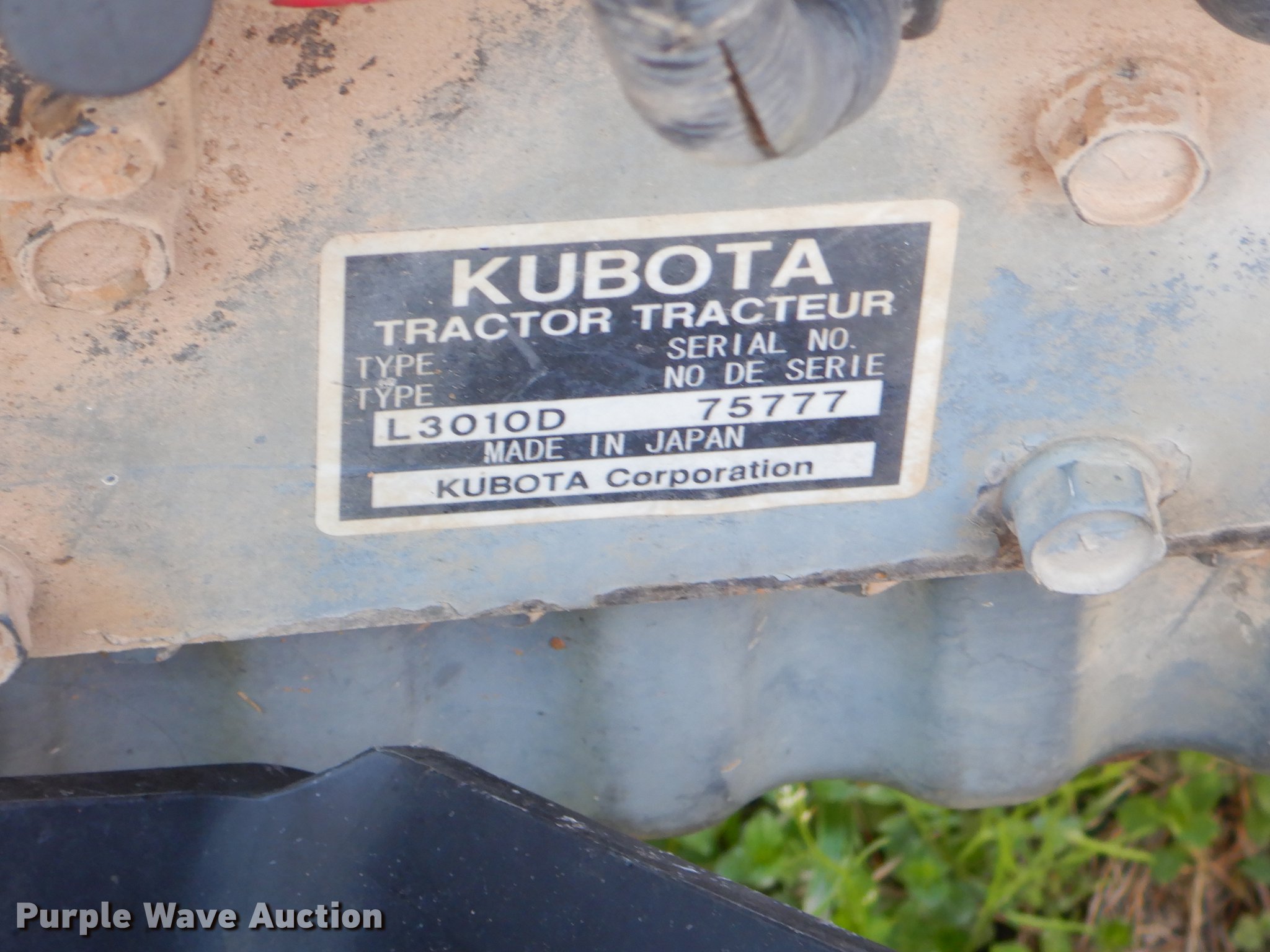 Purple Wave is selling a used Tractor in Oklahoma. This item is a Kubota L3010D tractor with the following: 1,440 hours on meter, Kubota three cylinder diesel engine, Manual transmission, 8F-8R gears, Differential lock, Three point, 540 PTO, Land Pride rotary mower, 6'W, 540 PTO, Three point, Non-operational, (4) suitcase weights, 7-16 front tires, 12.4-24 rear tires, Serial 75777