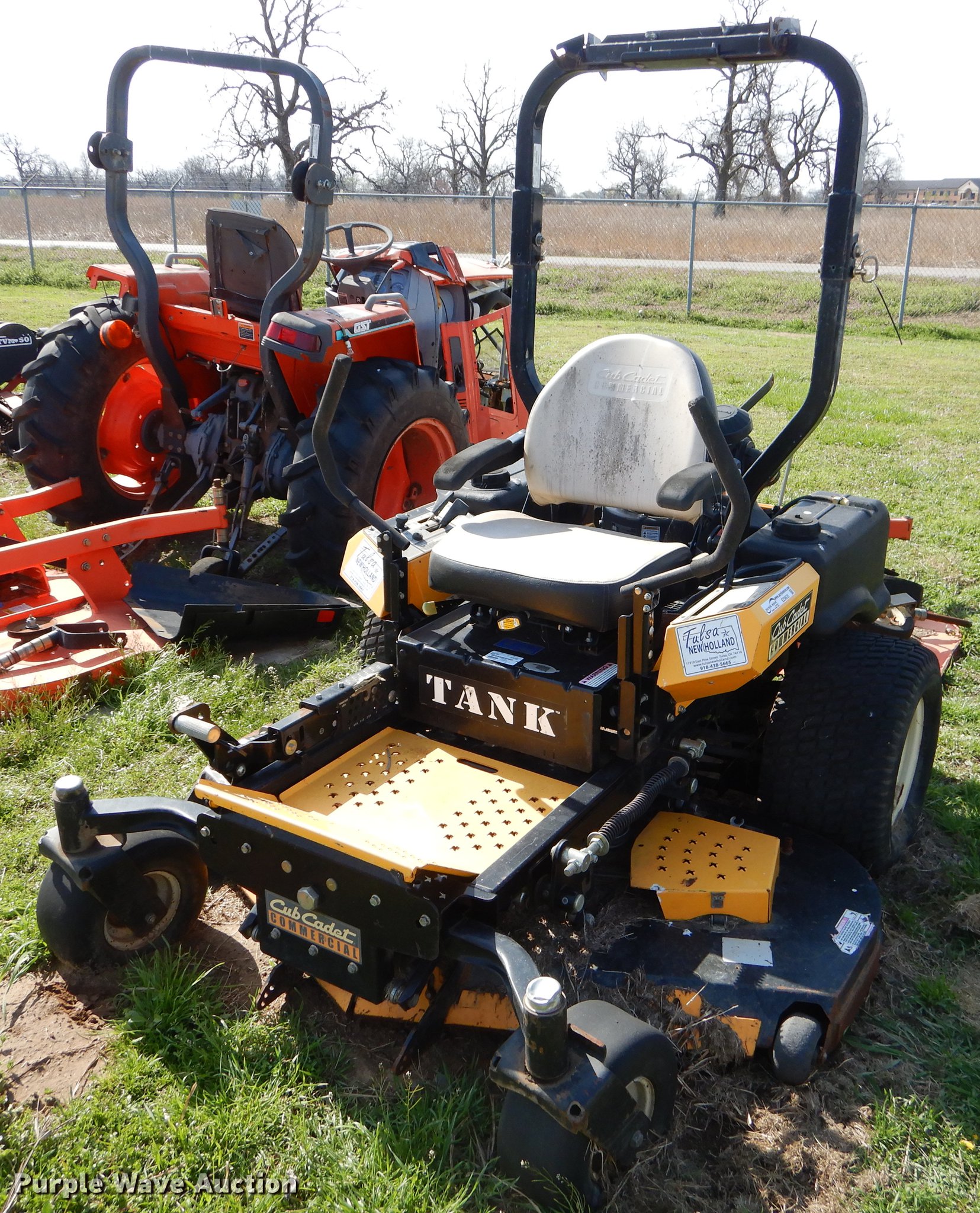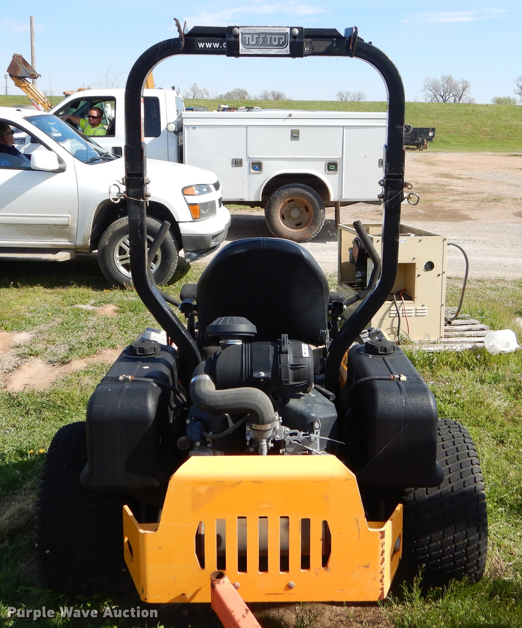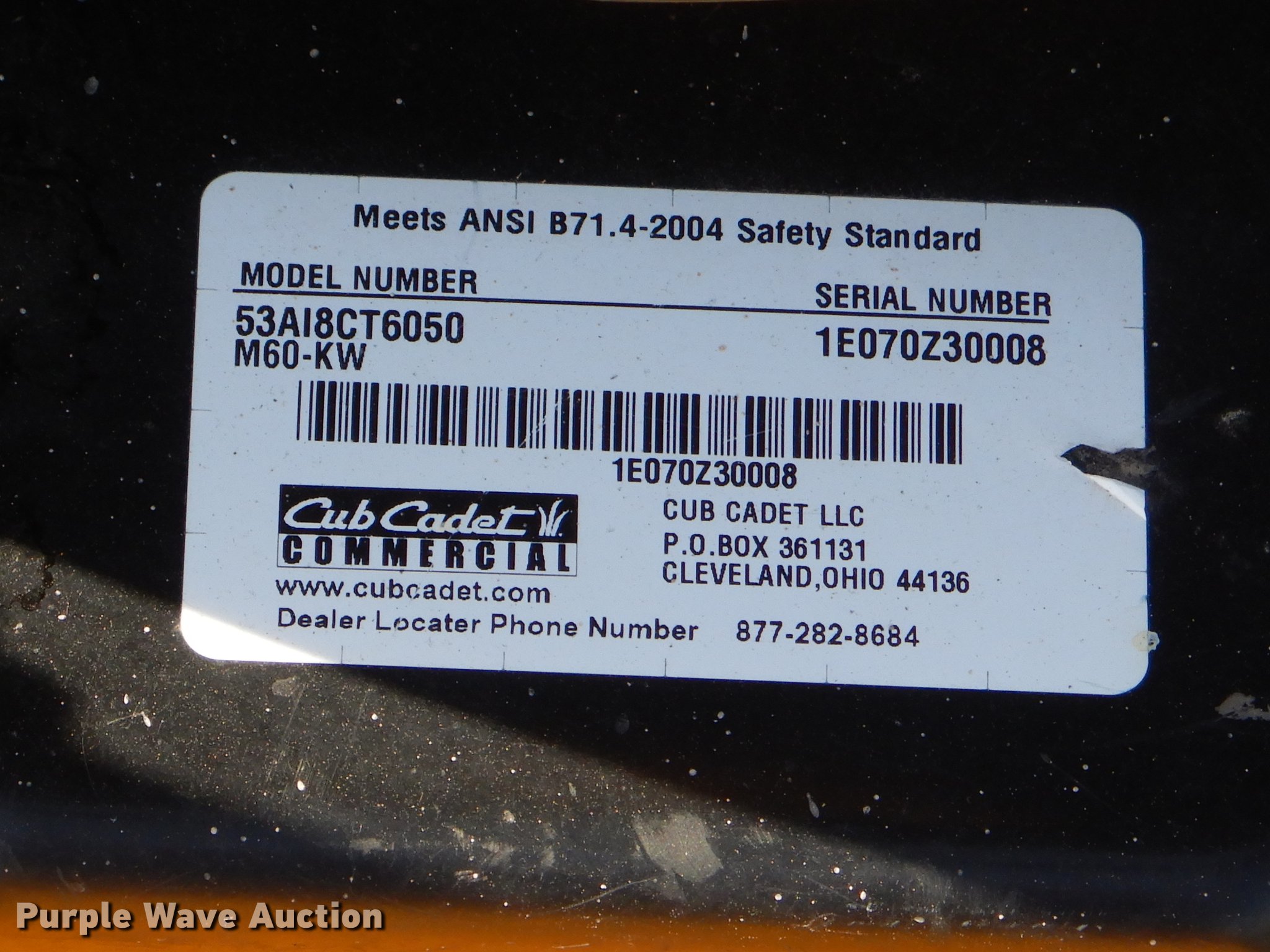 Purple Wave is selling a used Commercial Turf Mower in Oklahoma. This item is a Cub Cadet 53A18CT6050 ZTR lawn mower with the following: 664 hours on meter, 60" cut, Kawasaki FX850V gas engine, 31 HP, Hydrostatic transmission, Roll bar, 13x6.50-6 front tires, Non-operational unit, Serial 1E070Z30008
