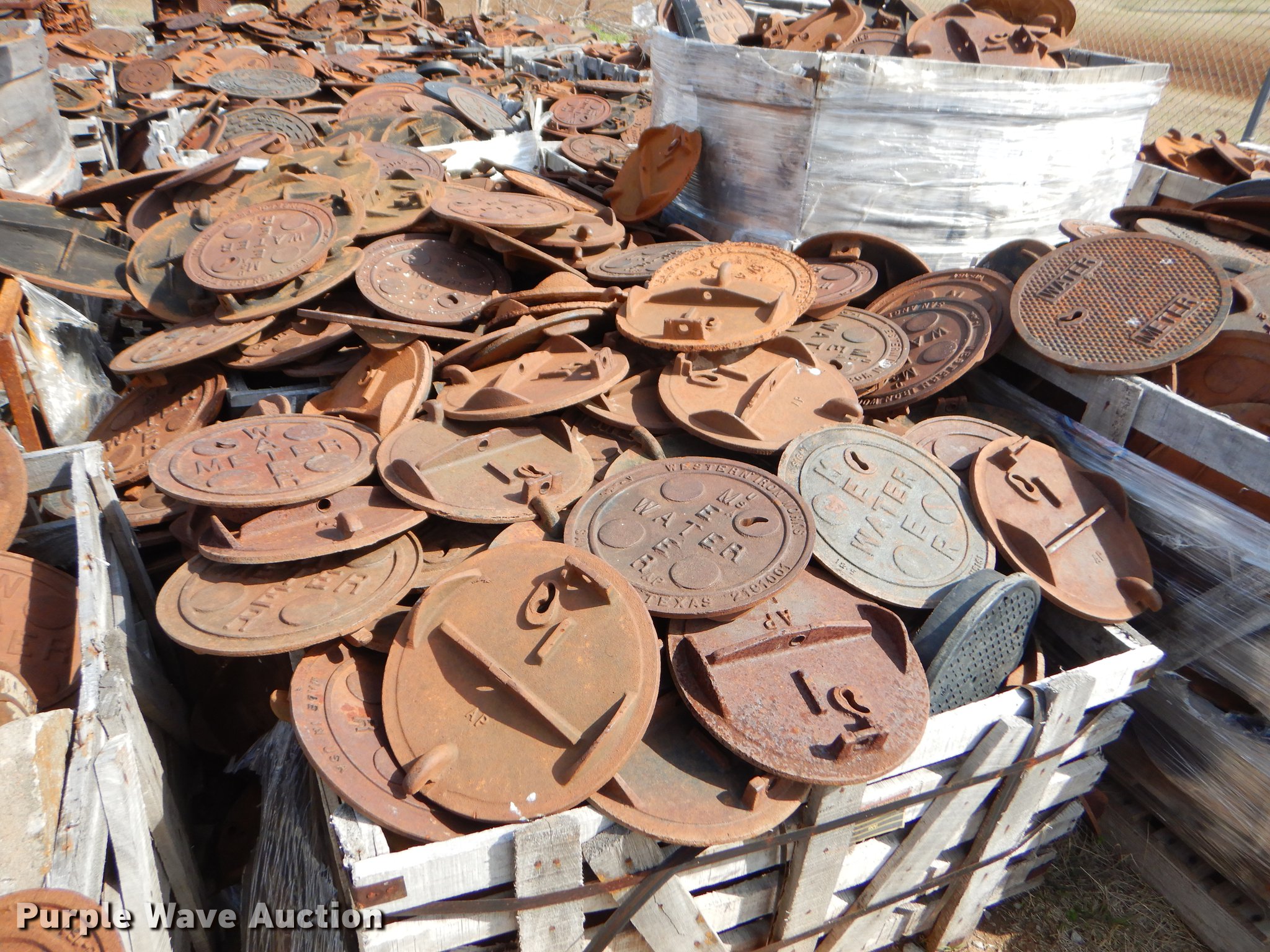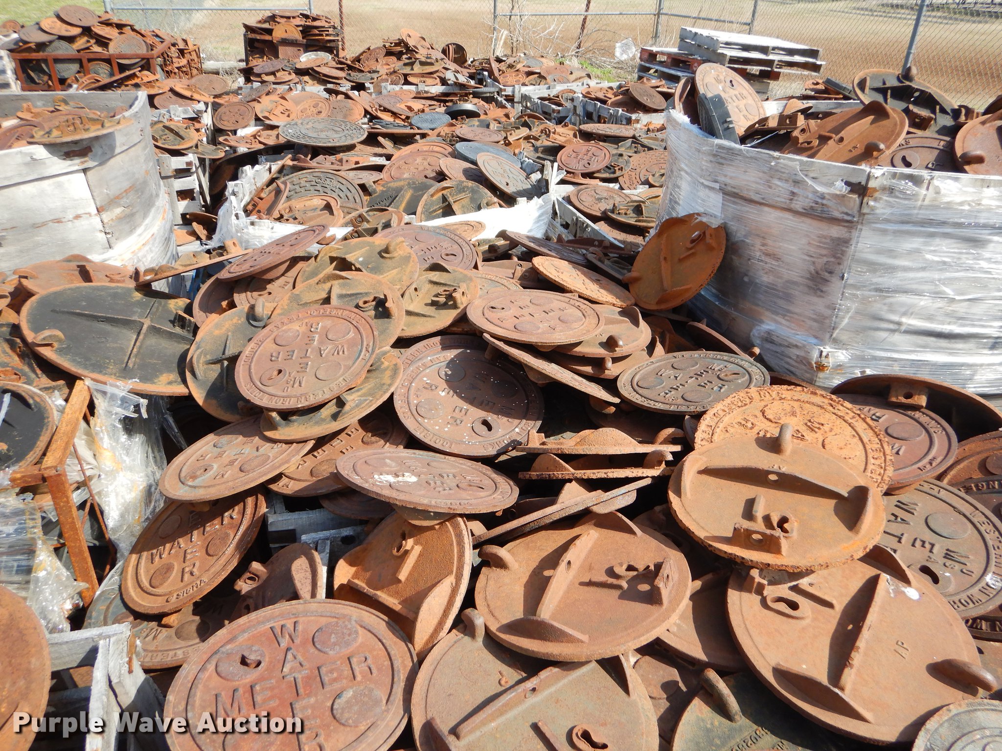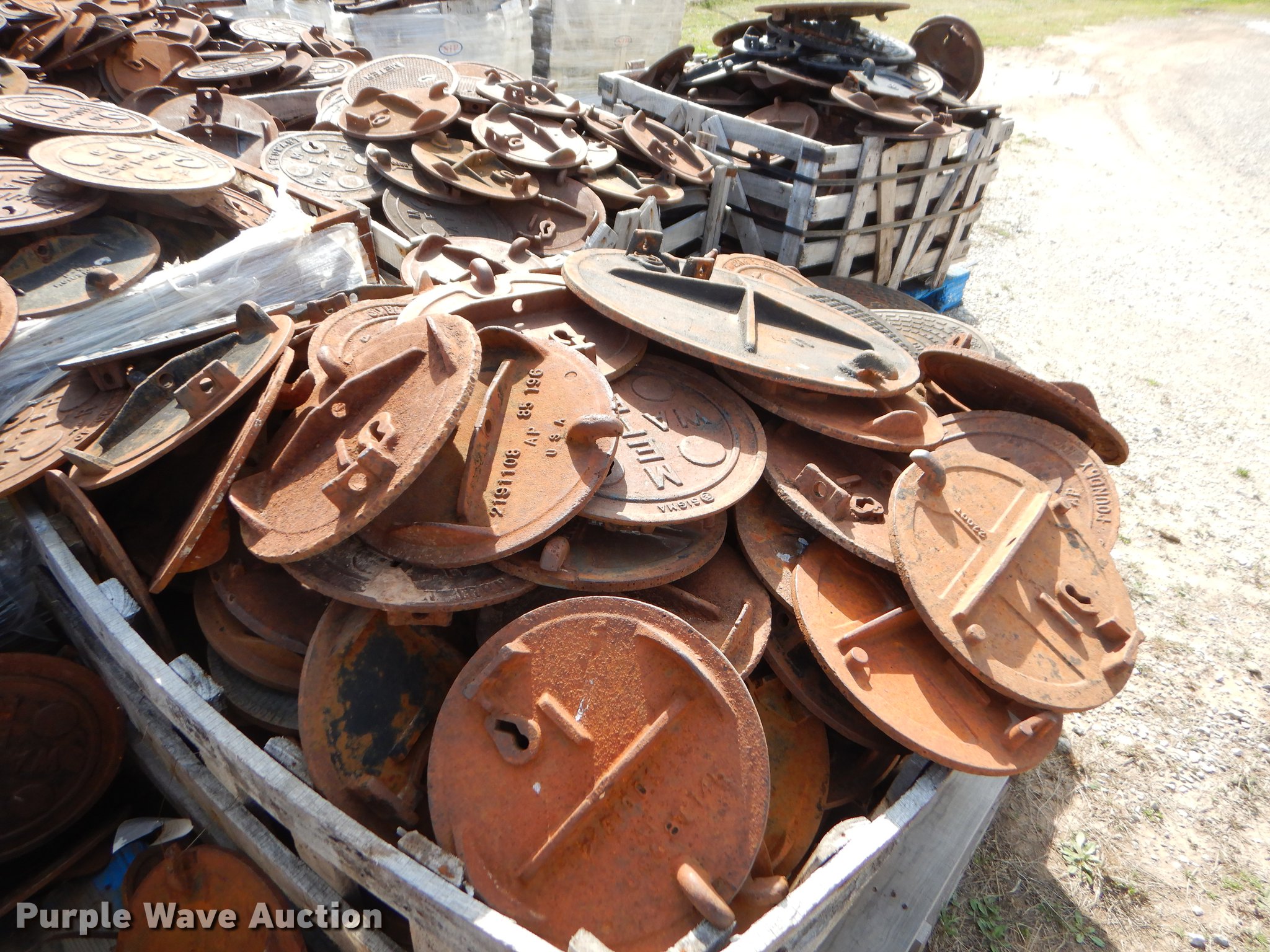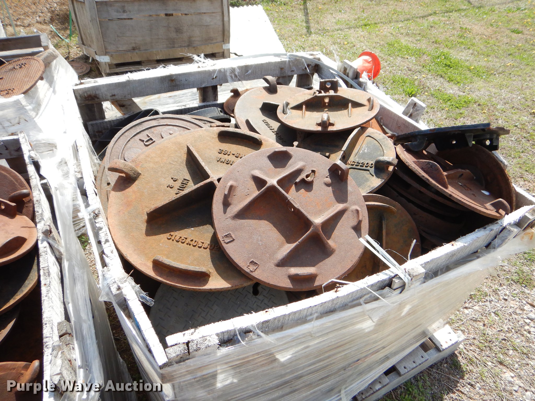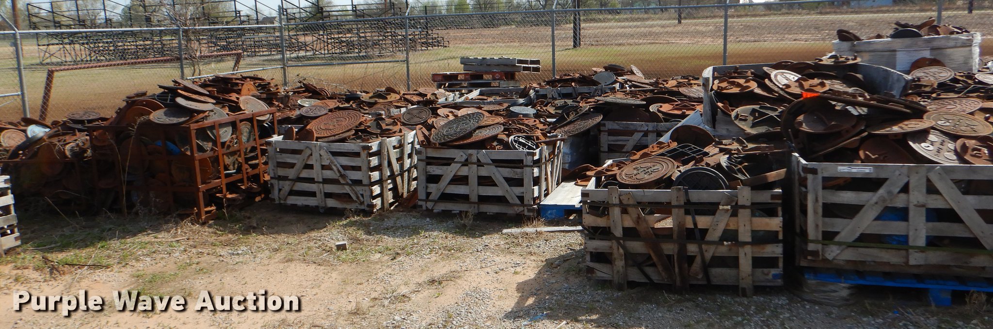 Purple Wave is selling a used Tools in Oklahoma. This item is a Water meter lids with the following: 12" to 21", Approx. 48 40" x 40" x 24" containers