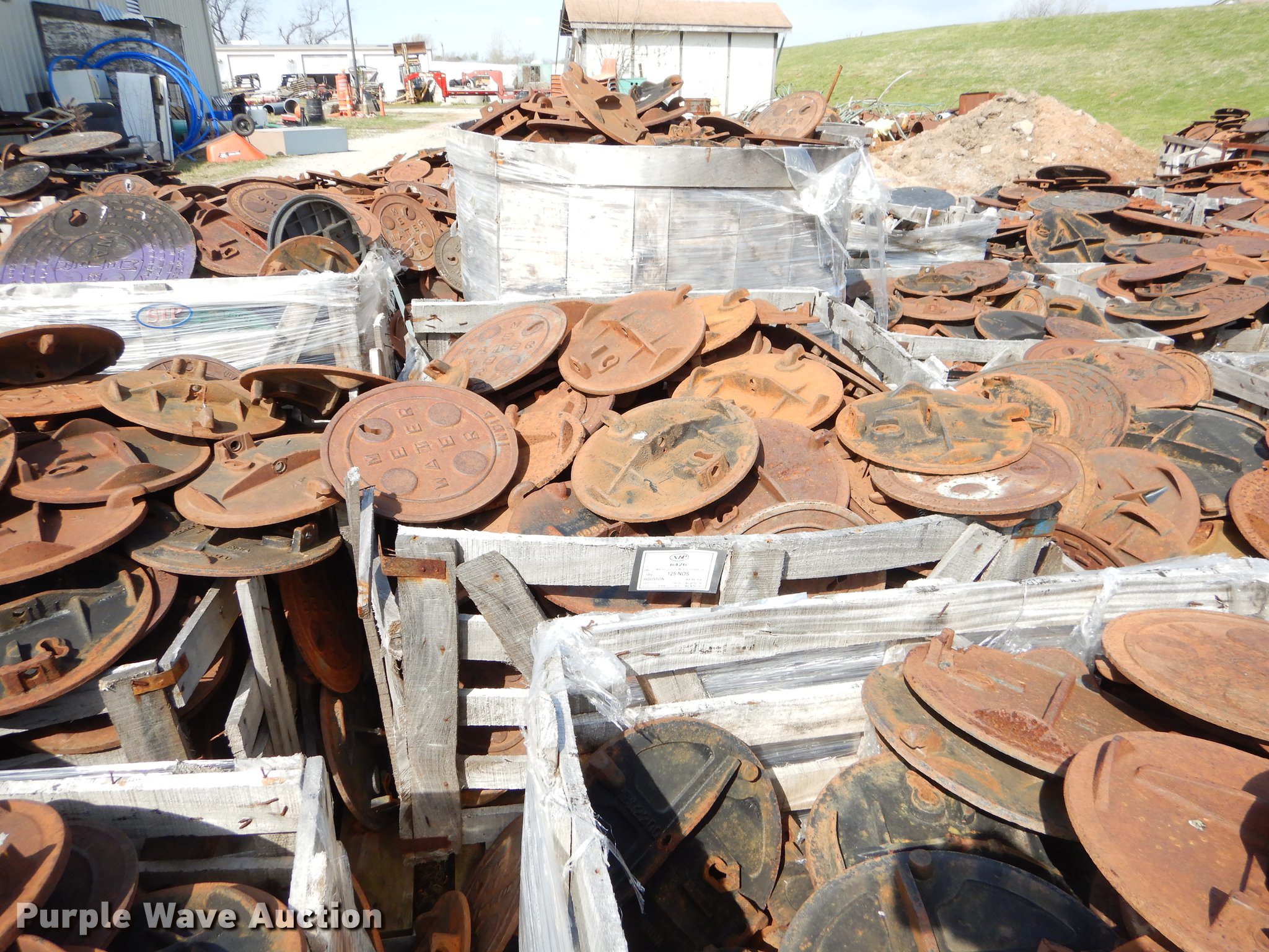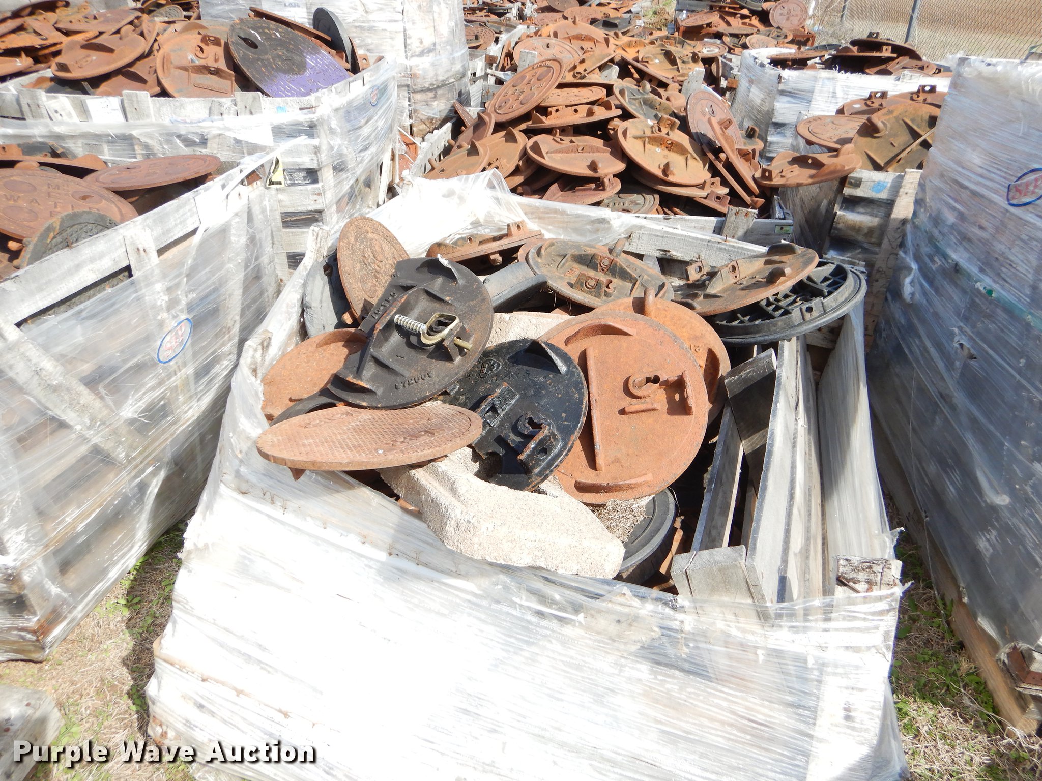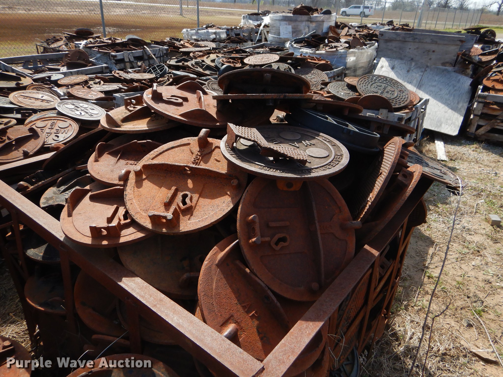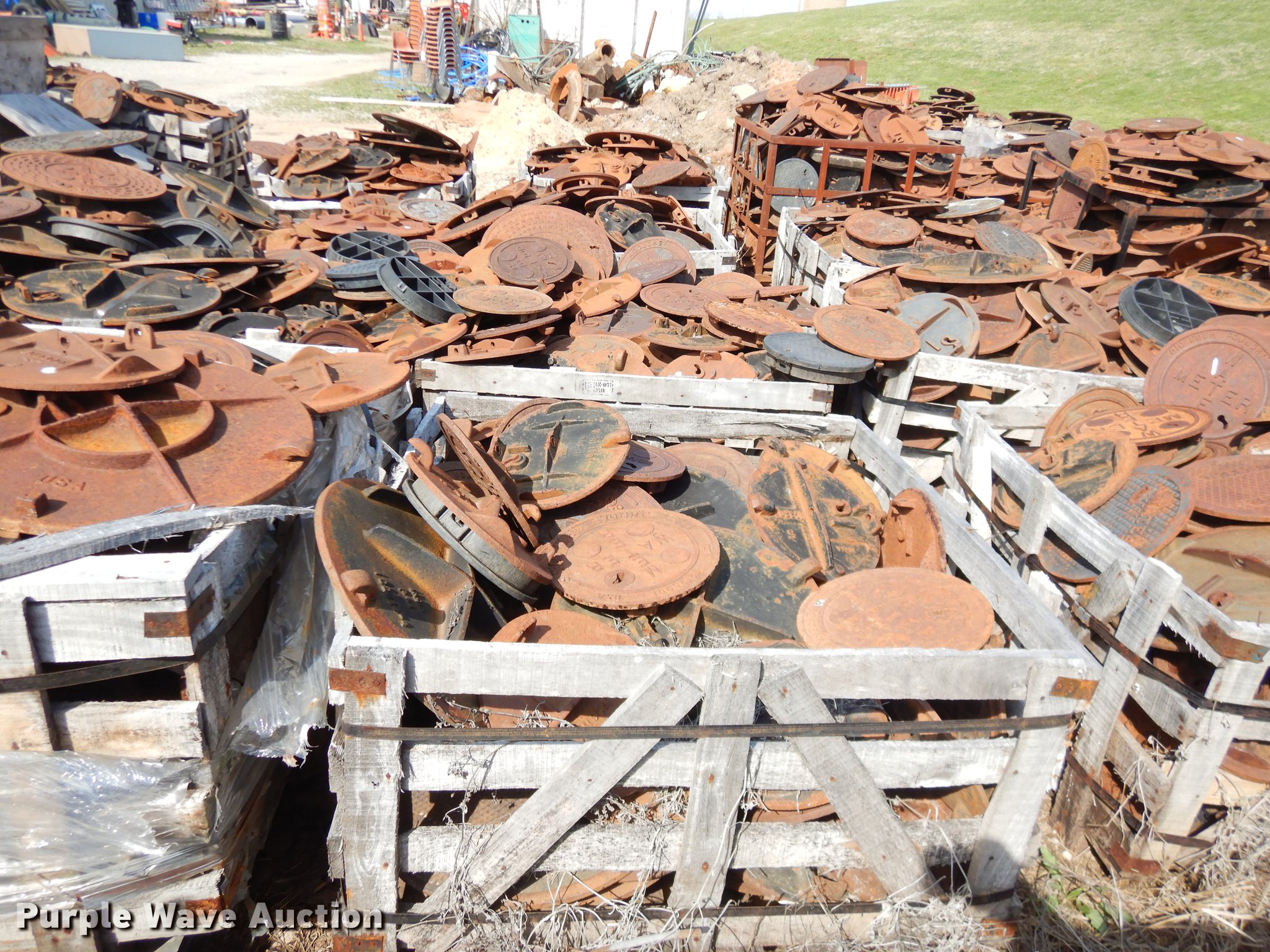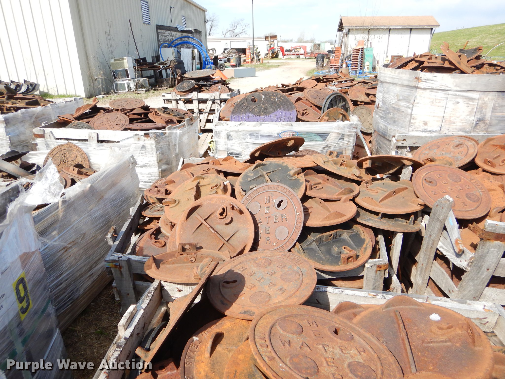 Purple Wave is selling a used Tools in Oklahoma. This item is a Water meter lids with the following: 12" to 21", Approx. 48 40" x 40" x 24" containers