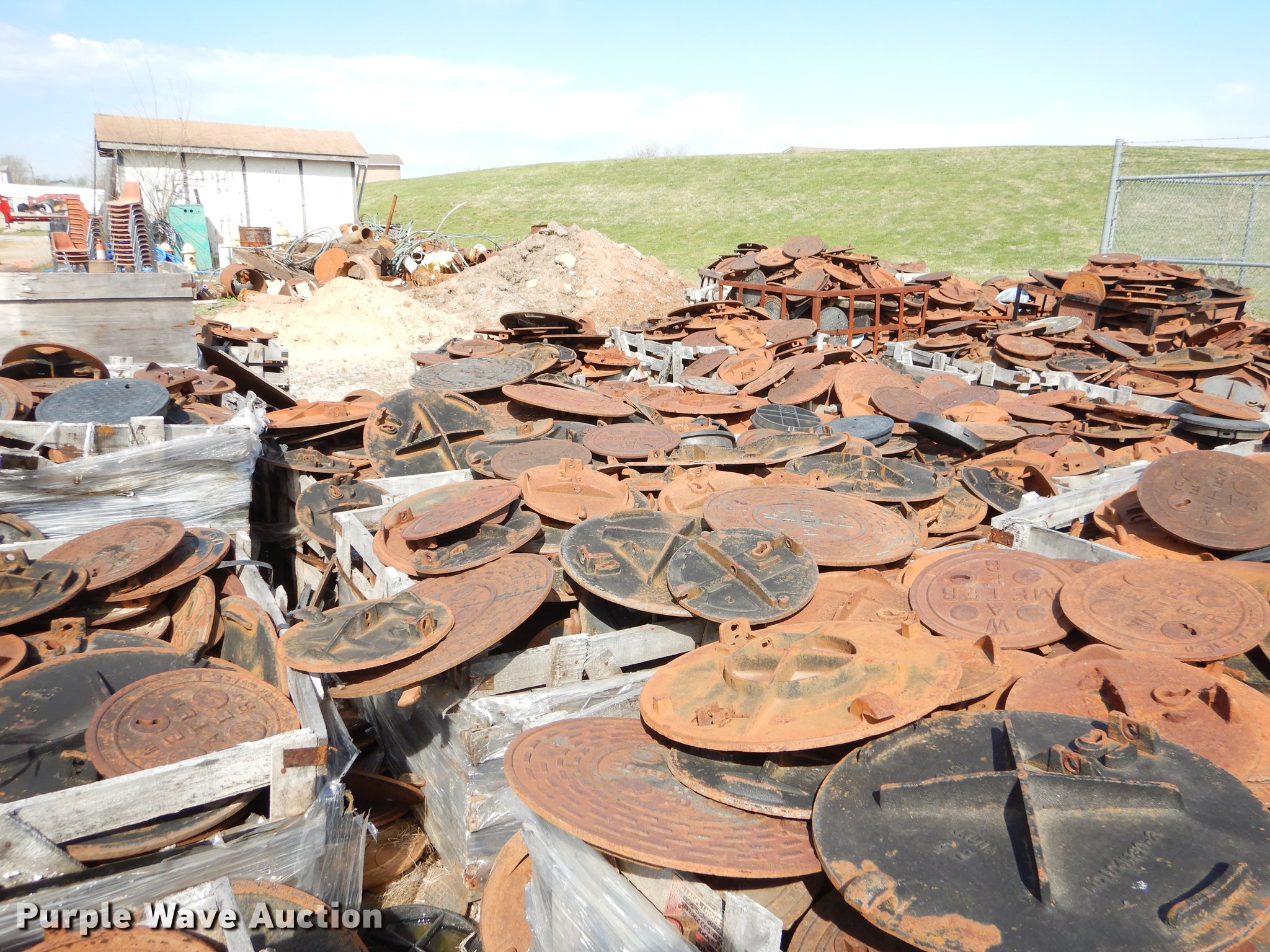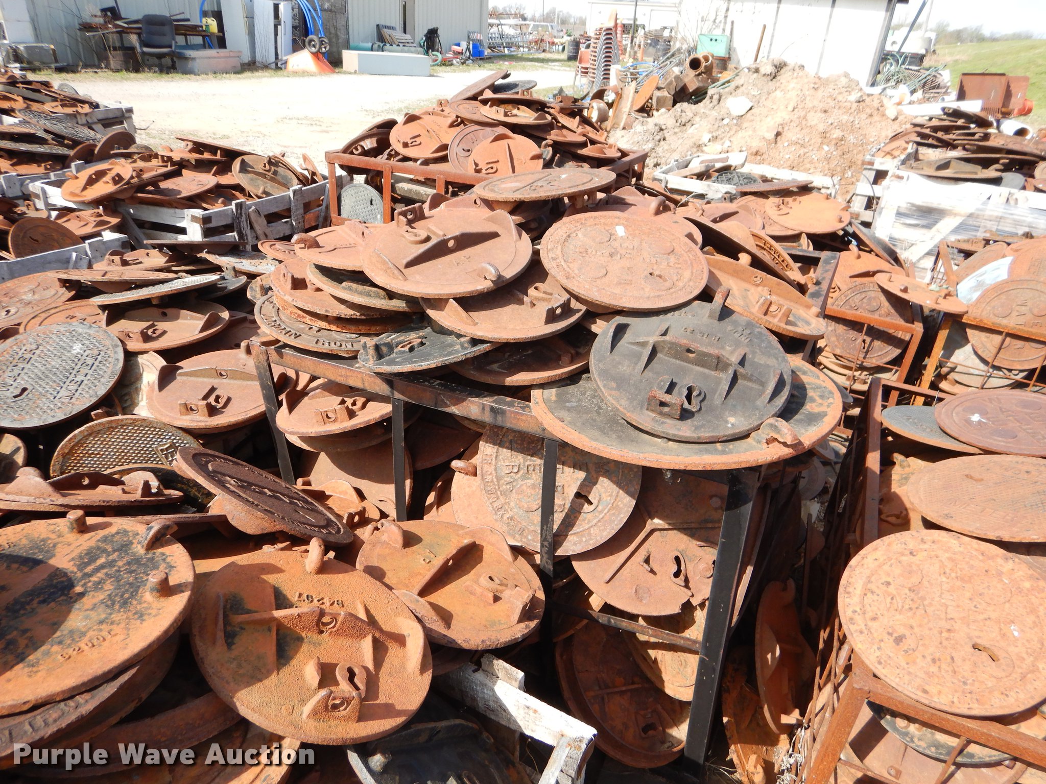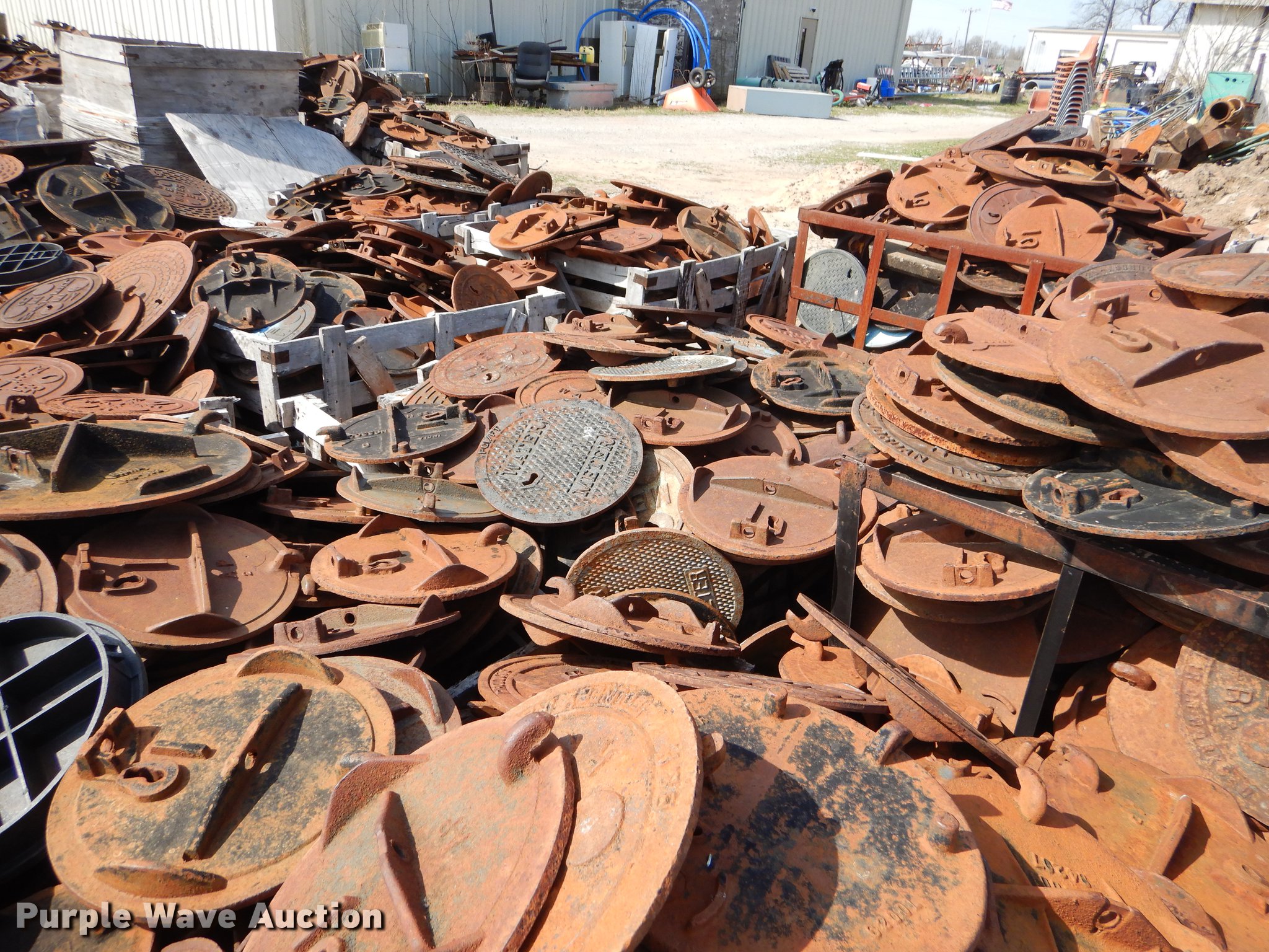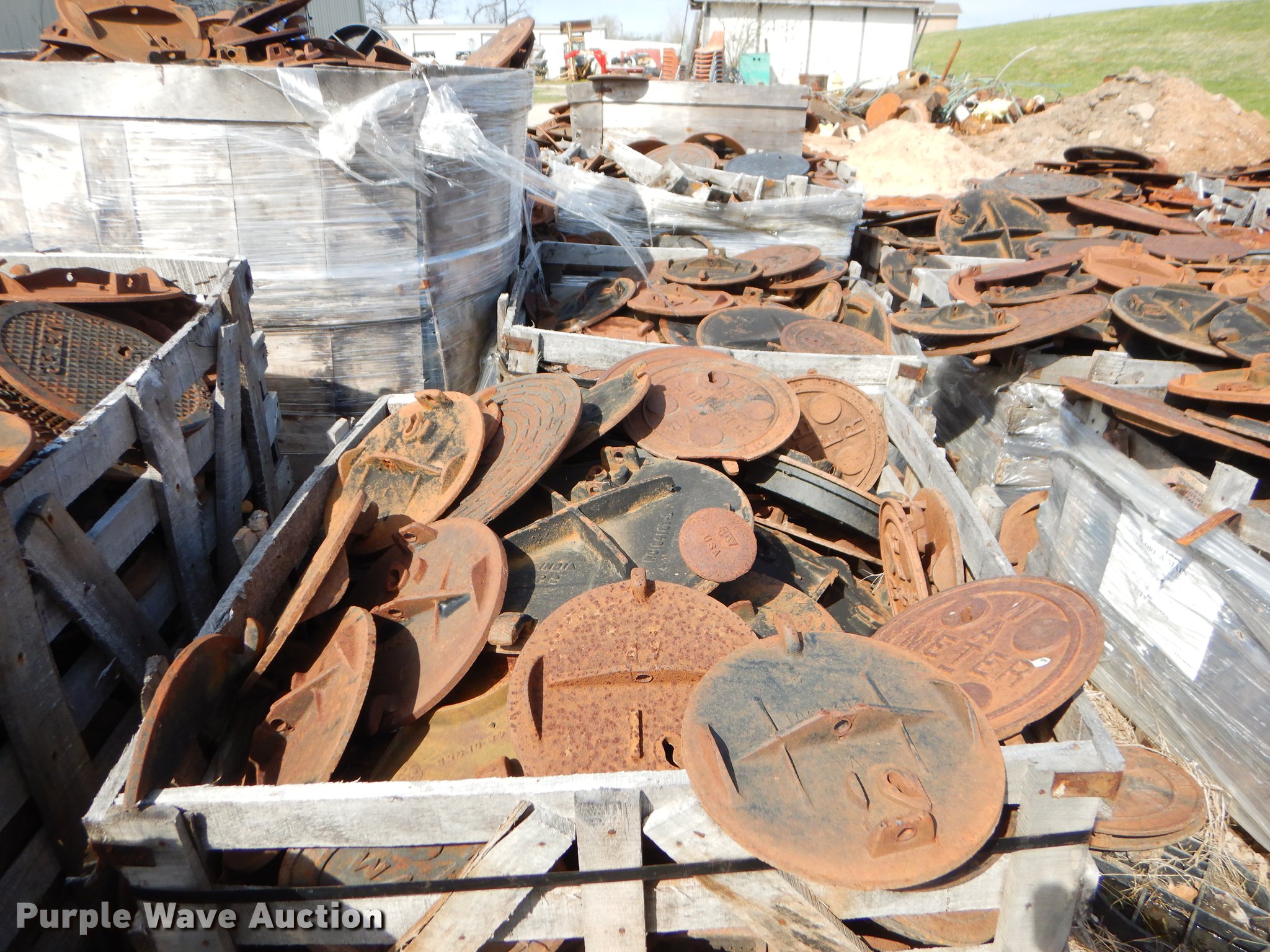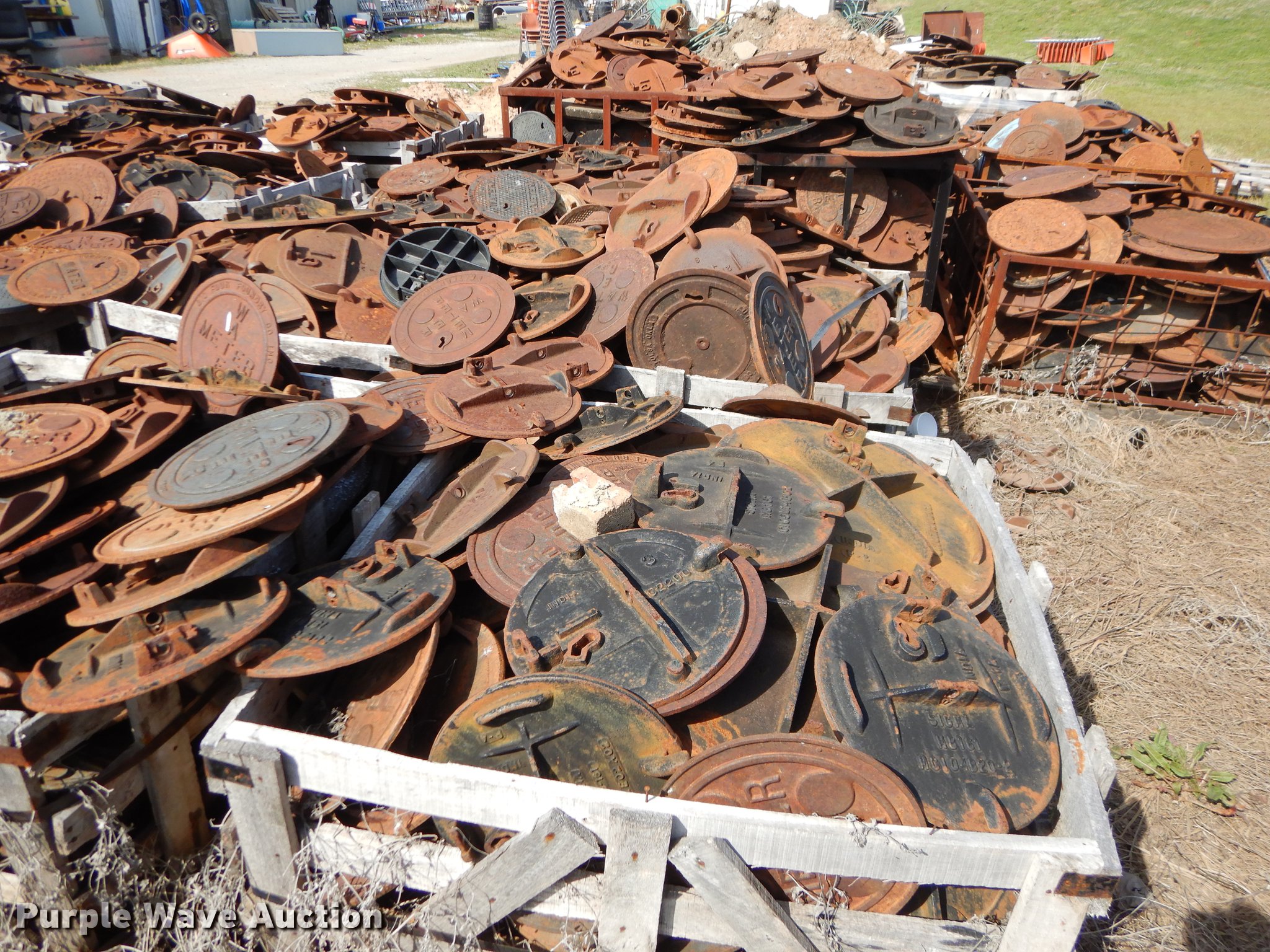 Purple Wave is selling a used Tools in Oklahoma. This item is a Water meter lids with the following: 12" to 21", Approx. 48 40" x 40" x 24" containers