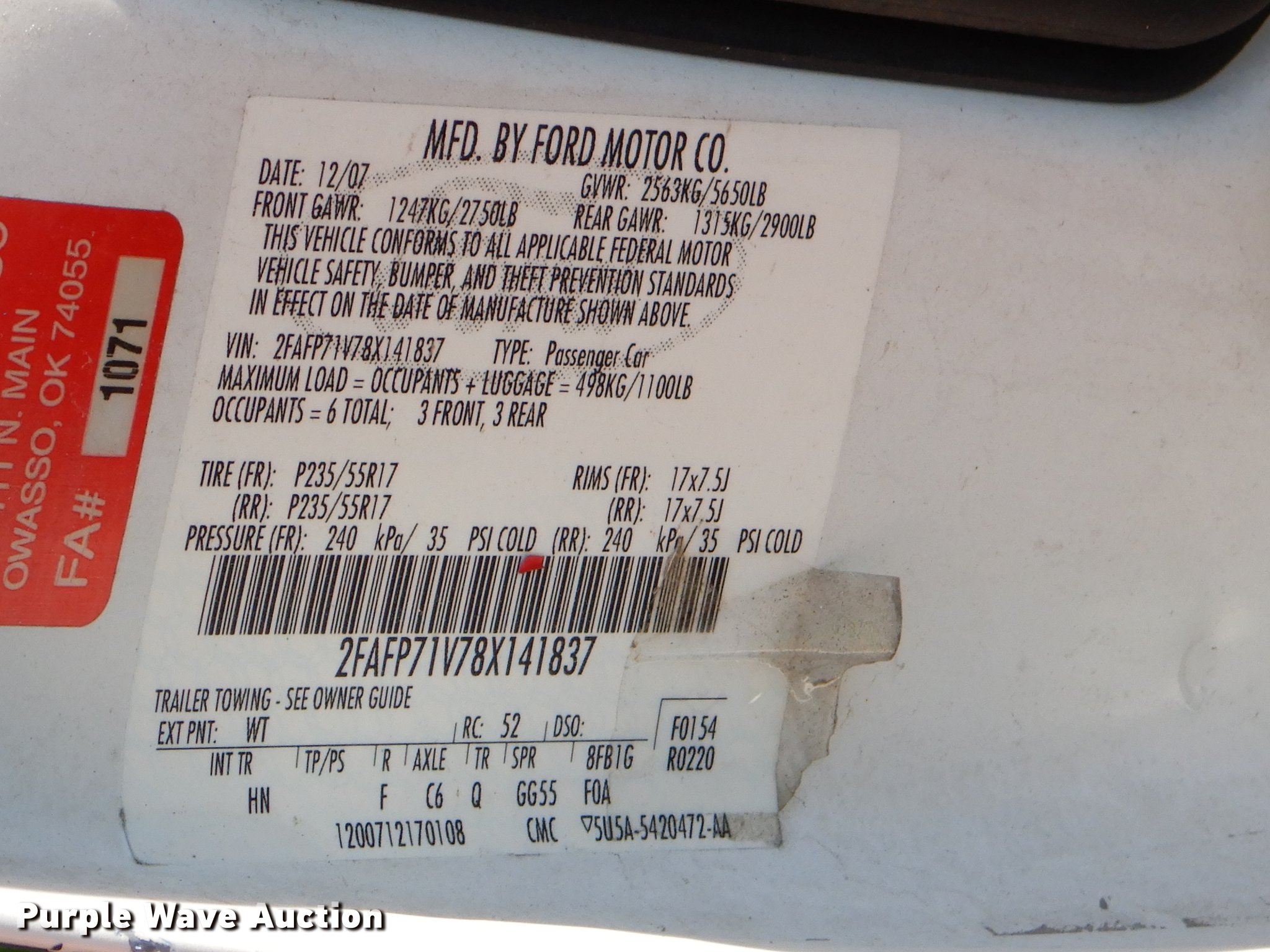 Purple Wave is selling a used Passenger Vehicle in Oklahoma. This item is a 2008 Ford Crown Victoria Police Interceptor with the following: Unknown miles on odometer, 4.6L V8 SOHC 16V FFV gas engine, Automatic transmission, AC and heat, Cruise, Power windows, locks, and seat, 235/55R17 tires, Non-operational unit