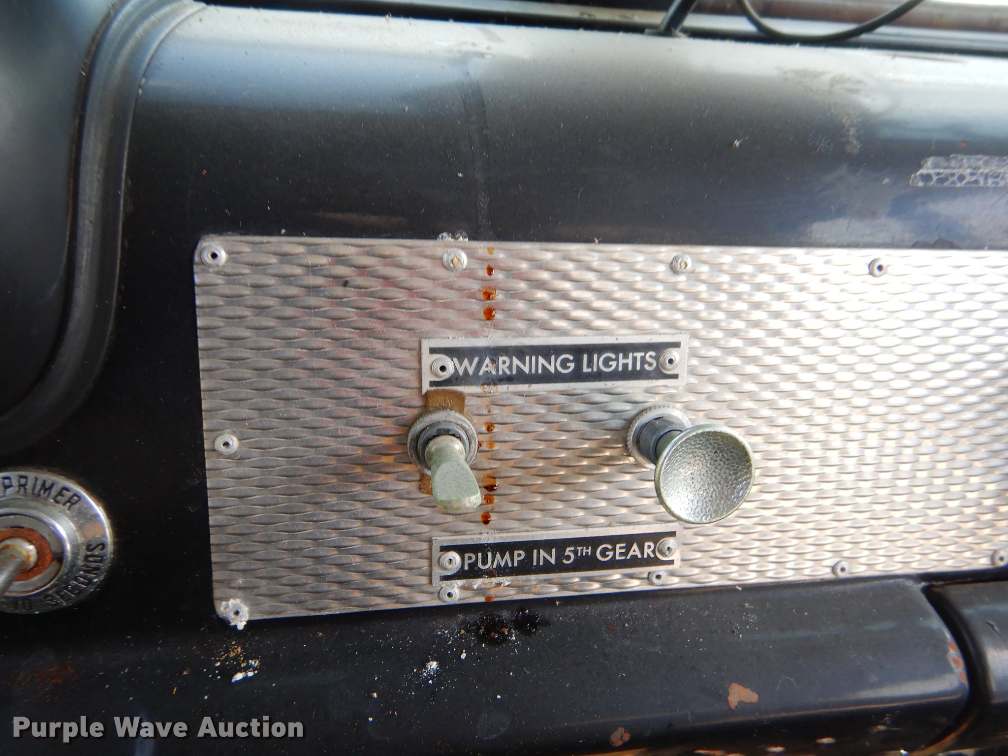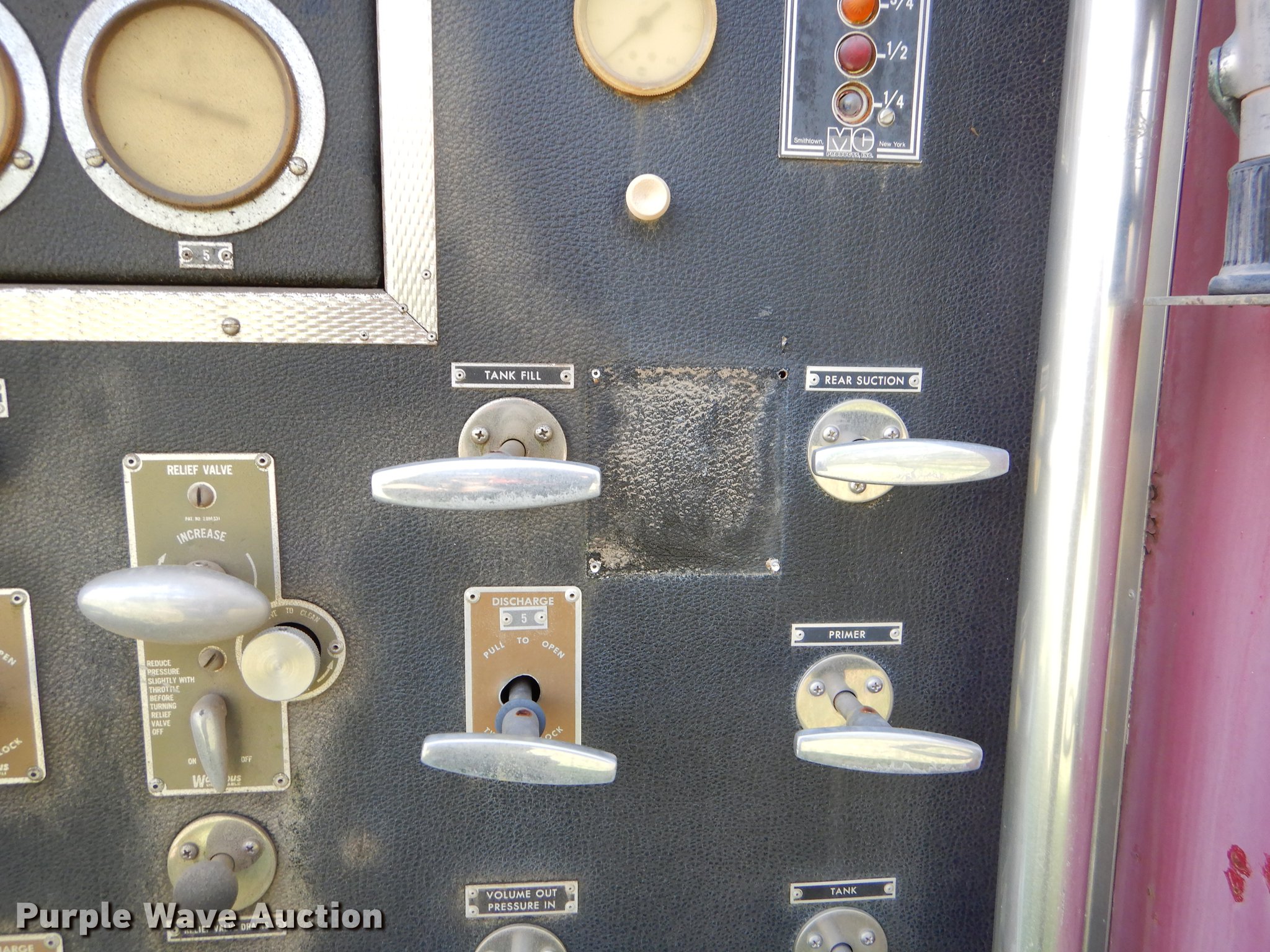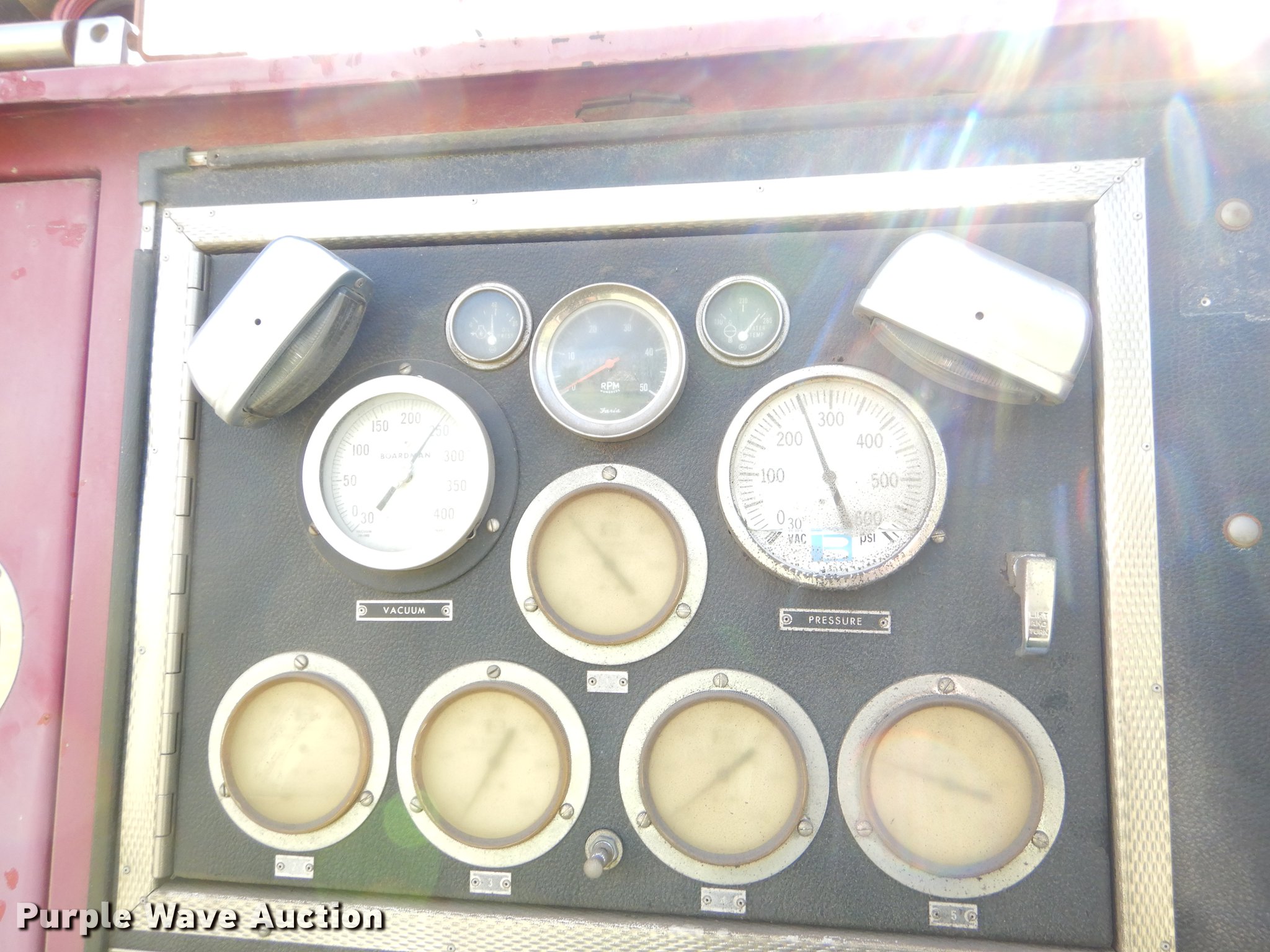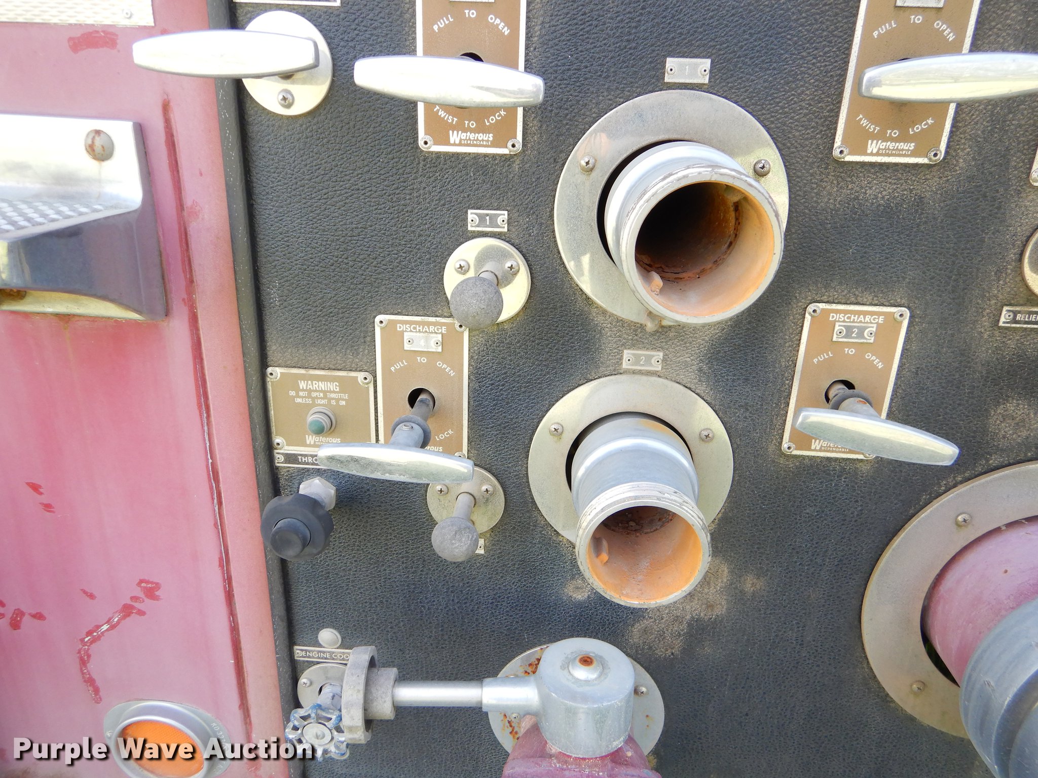 Purple Wave is selling a used Fire Truck or Emergency Vehicle in Oklahoma. This item is a 1983 Ford 800 fire truck with the following: 36,534 miles on odometer, 7.0L V8 gas engine, Five speed manual transmission, Single axle, Heat, Suspension seat, Emergency lights and sirens, Whelen PA/siren controls, PTO, Pump, Waterous WB fire apparatus, Water gun, Hose, Three section extension ladder, 9.00-20 tires, Decals have been removed, Unknown operating condition