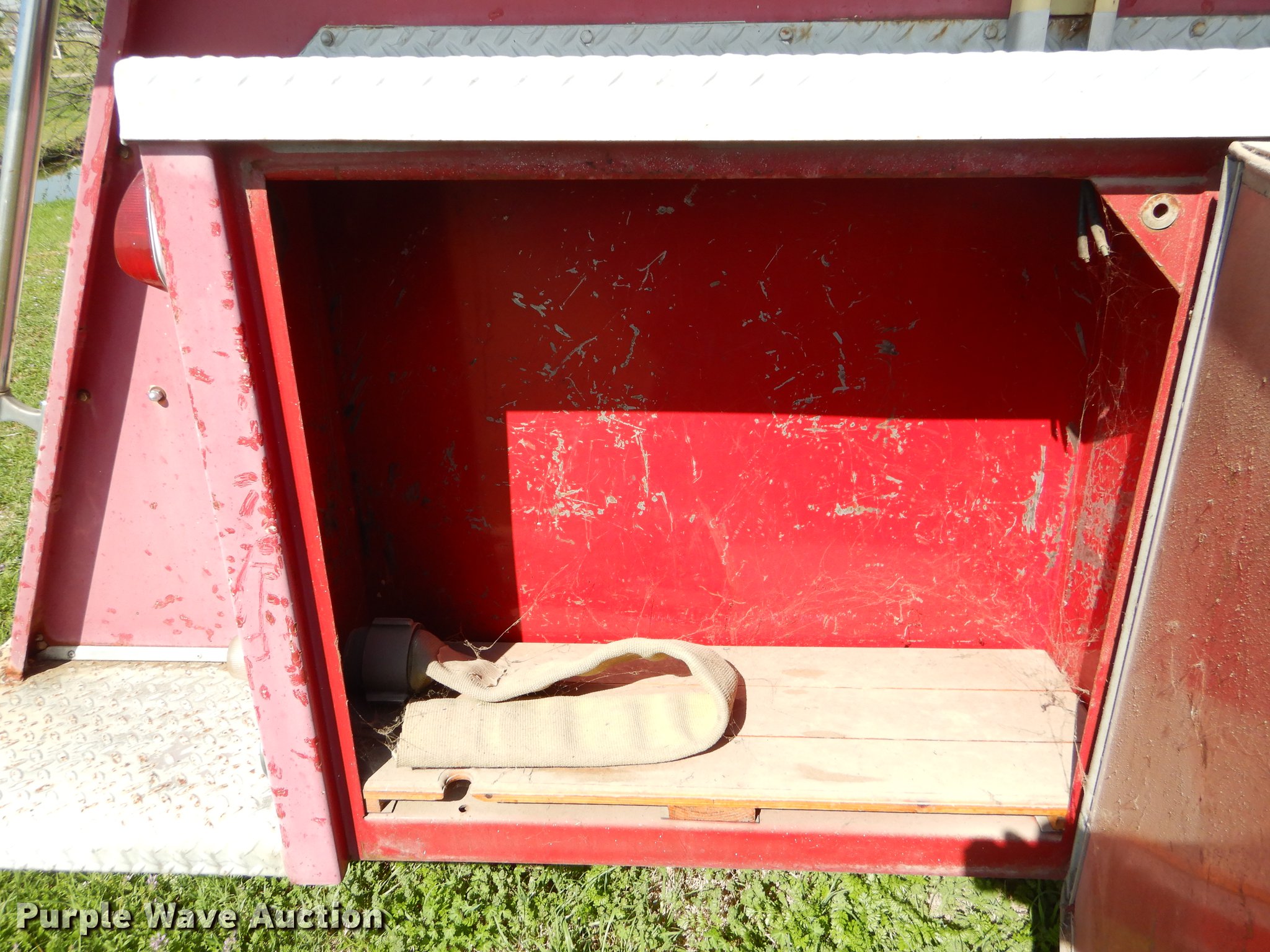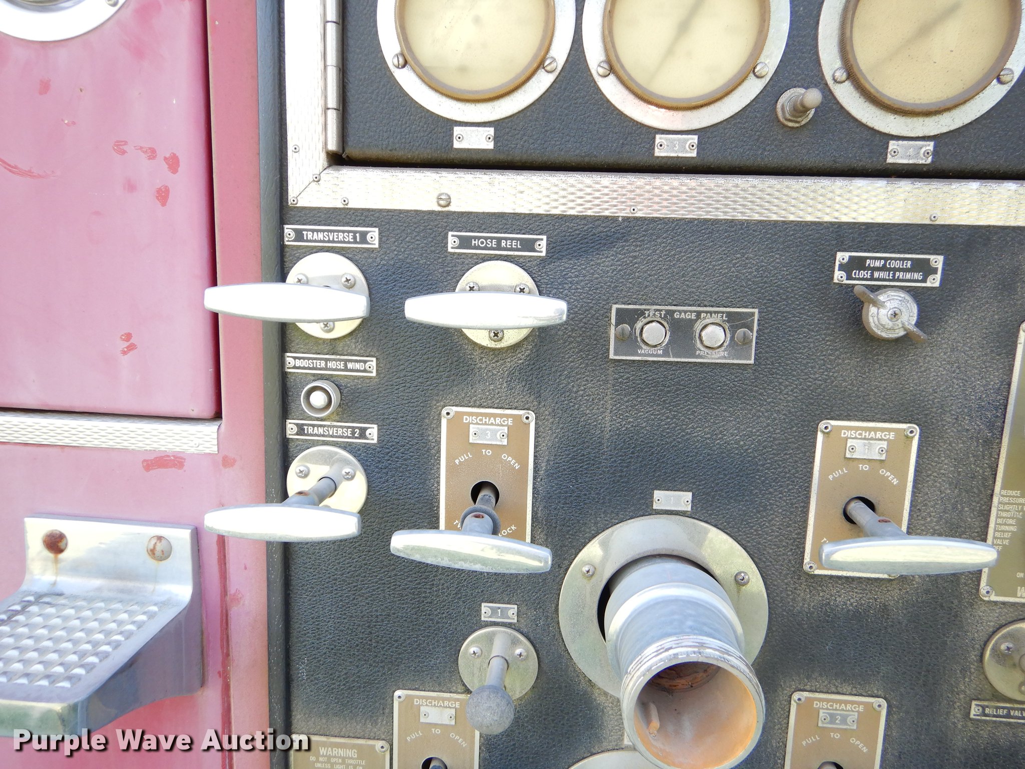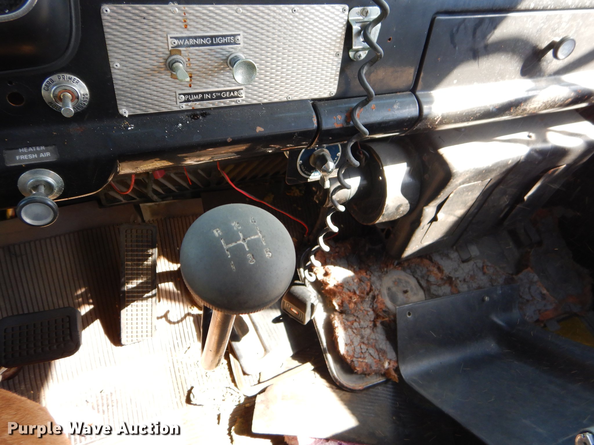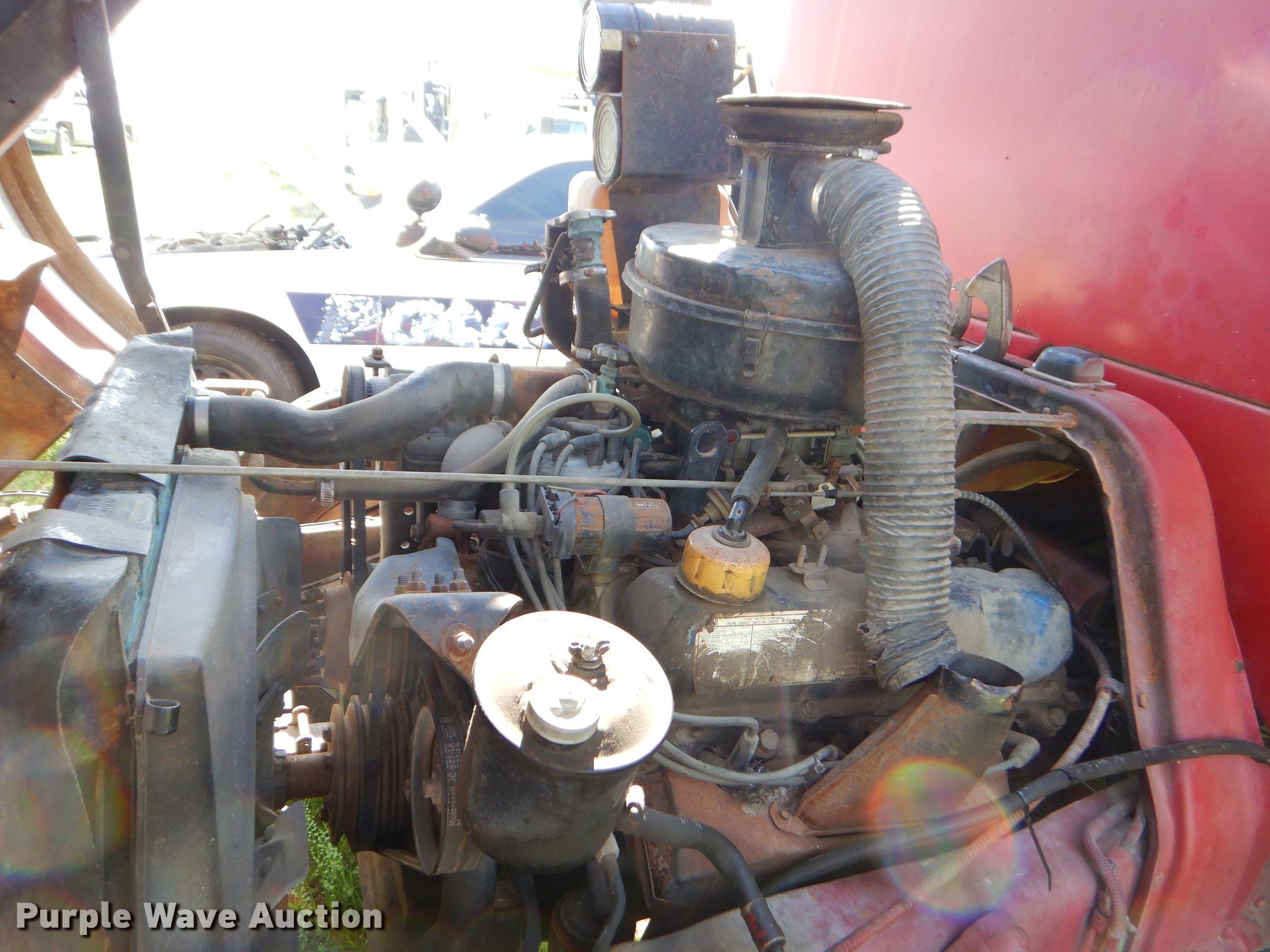 Purple Wave is selling a used Fire Truck or Emergency Vehicle in Oklahoma. This item is a 1983 Ford 800 fire truck with the following: 36,534 miles on odometer, 7.0L V8 gas engine, Five speed manual transmission, Single axle, Heat, Suspension seat, Emergency lights and sirens, Whelen PA/siren controls, PTO, Pump, Waterous WB fire apparatus, Water gun, Hose, Three section extension ladder, 9.00-20 tires, Decals have been removed, Unknown operating condition