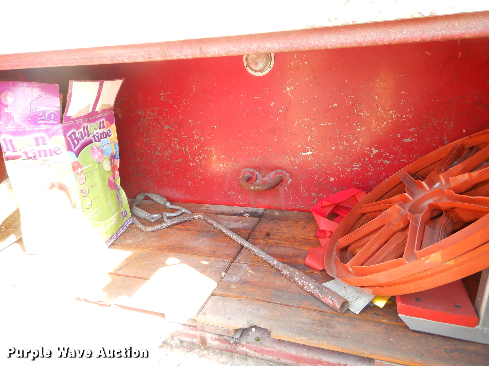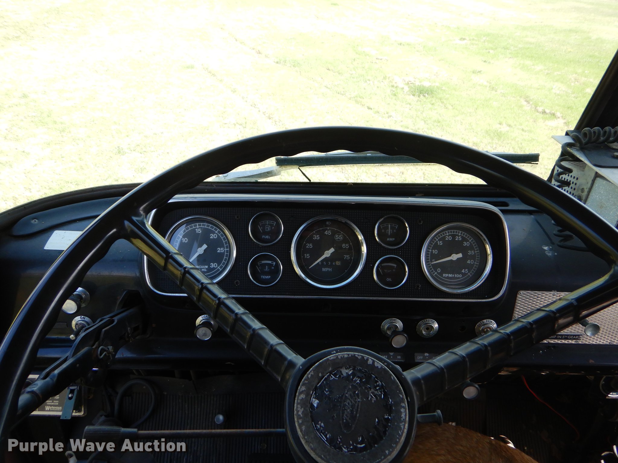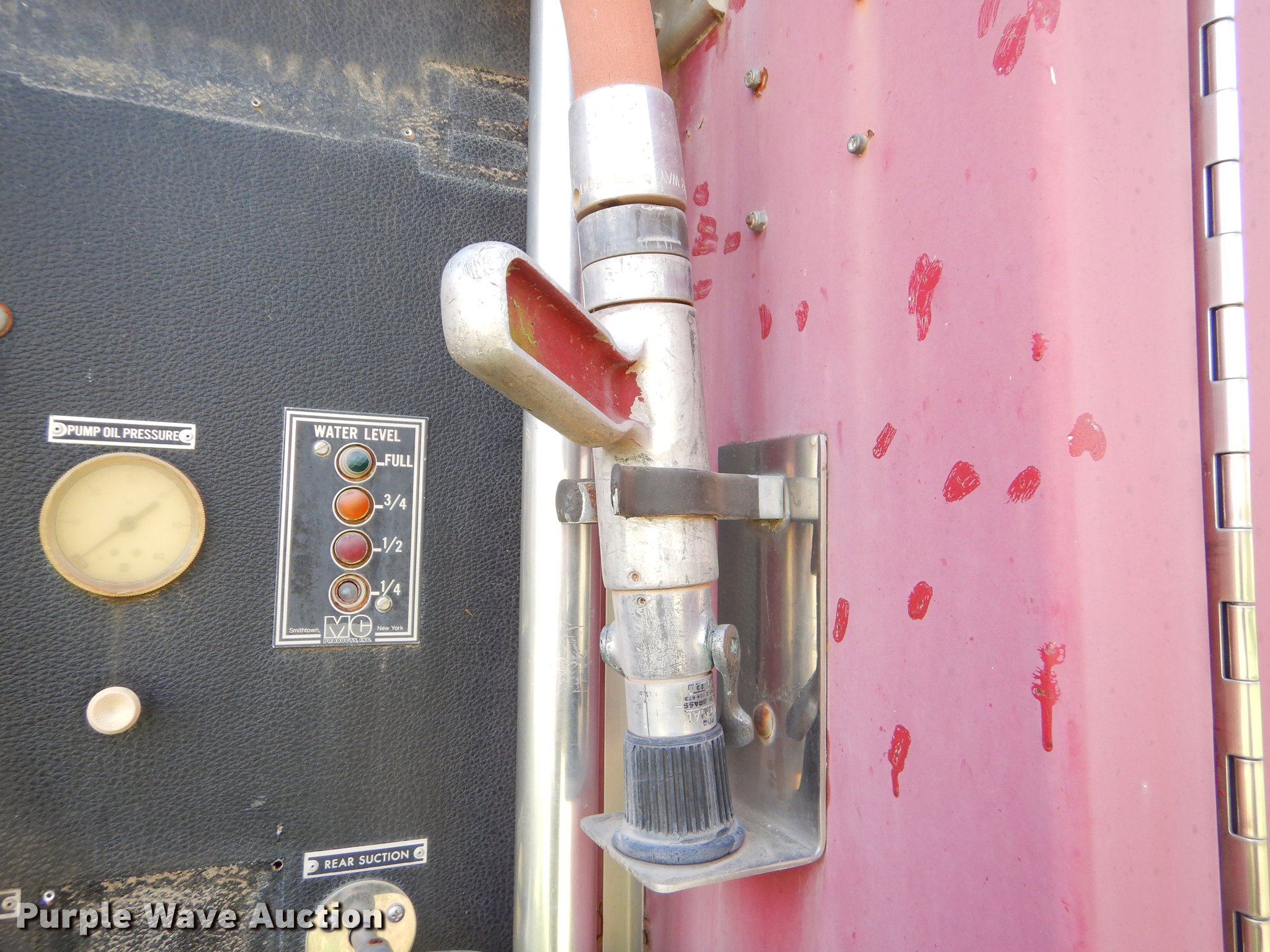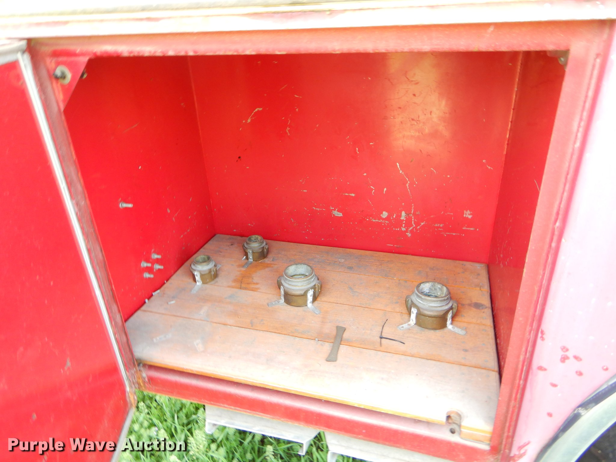 Purple Wave is selling a used Fire Truck or Emergency Vehicle in Oklahoma. This item is a 1983 Ford 800 fire truck with the following: 36,534 miles on odometer, 7.0L V8 gas engine, Five speed manual transmission, Single axle, Heat, Suspension seat, Emergency lights and sirens, Whelen PA/siren controls, PTO, Pump, Waterous WB fire apparatus, Water gun, Hose, Three section extension ladder, 9.00-20 tires, Decals have been removed, Unknown operating condition