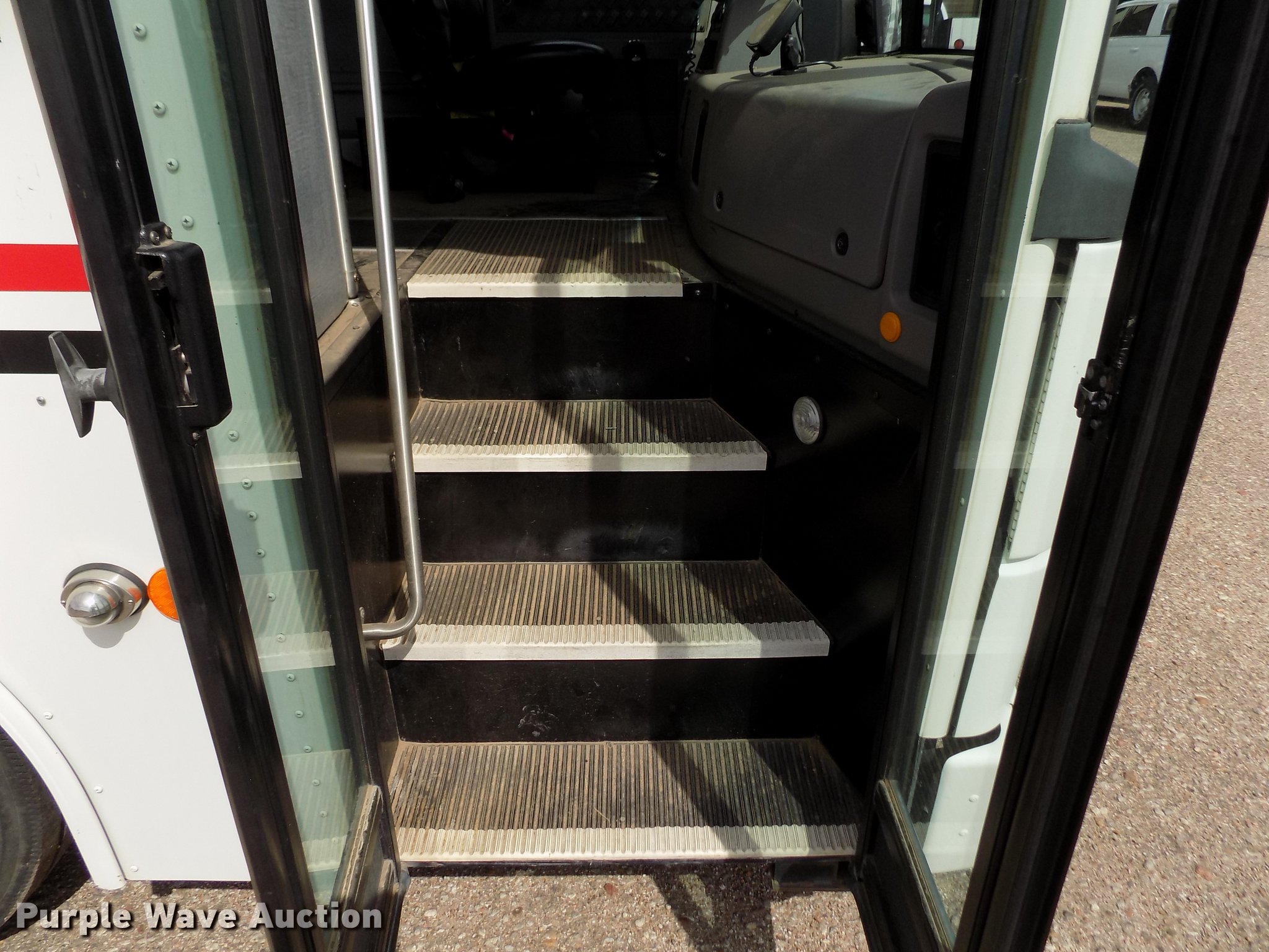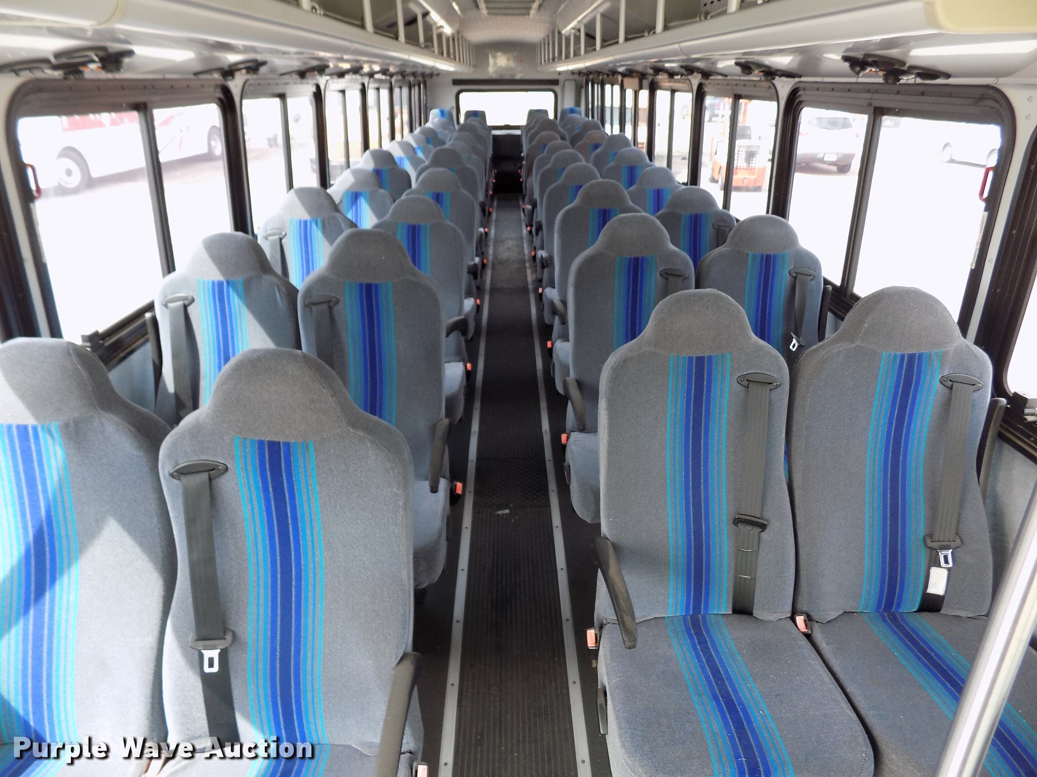 Purple Wave is selling a used Bus in Kansas. This item is a 2010 Thomas Built Saf-T-Liner school bus with the following: 158,890 miles on odometer, 6,595 hours on meter, Cummins ISC 8.3L six cylinder turbo diesel engine, Allison automatic transmission, Single axle, AC and heat, AM/FM/CD, Heated mirrors, Air suspension seat, Auxiliary controls, Ceiling handrail, Overhead storage, 45 passenger capacity, Seat belts, Rear and side emergency exits, Emergency door alarms, Lighted stop sign, Carrier AC roof unit, Block heater, Underside luggage storage, Front and rear tow hooks, Air suspension, Air brakes, 11R22.5 tires, GVWR 36,200 lbs