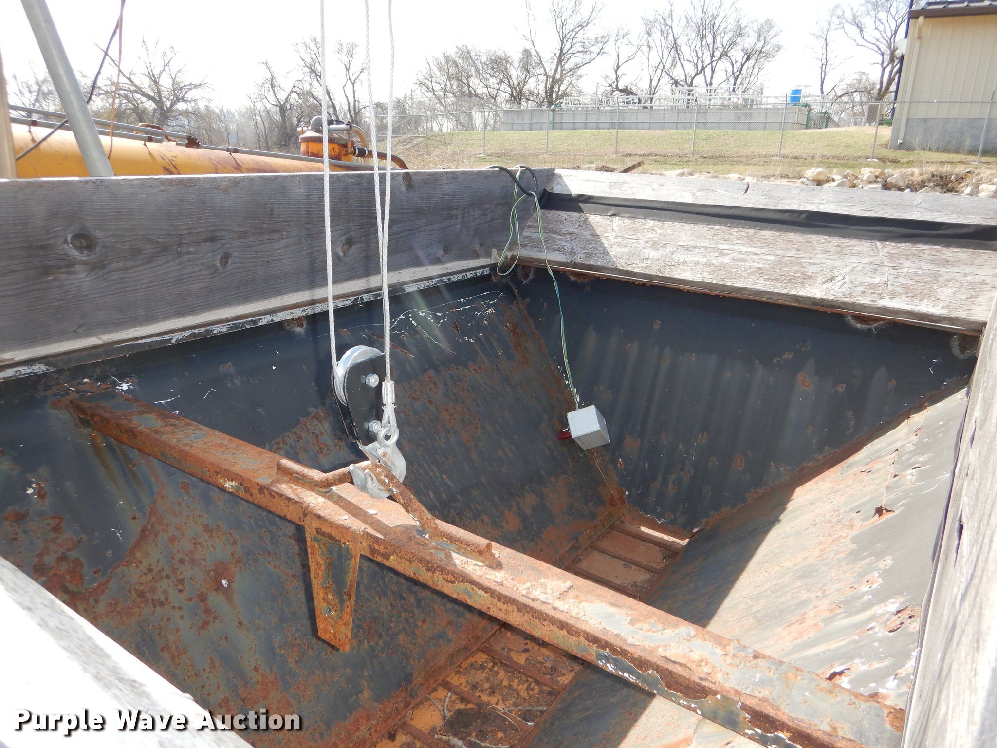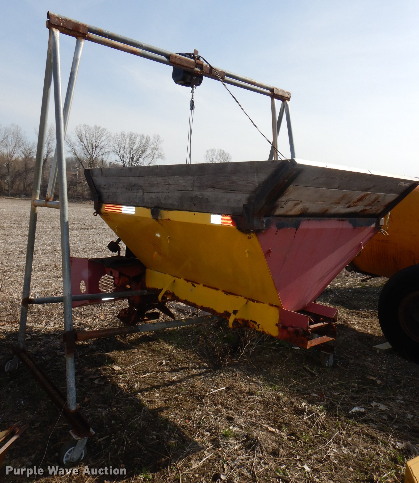 Highway Equipment P6 spreader. Steel V-box, Gas engine Unknown operating condition, Shop built A stand Electric winch, Serial 92454. City Of St George. Saint George, KS 66535
