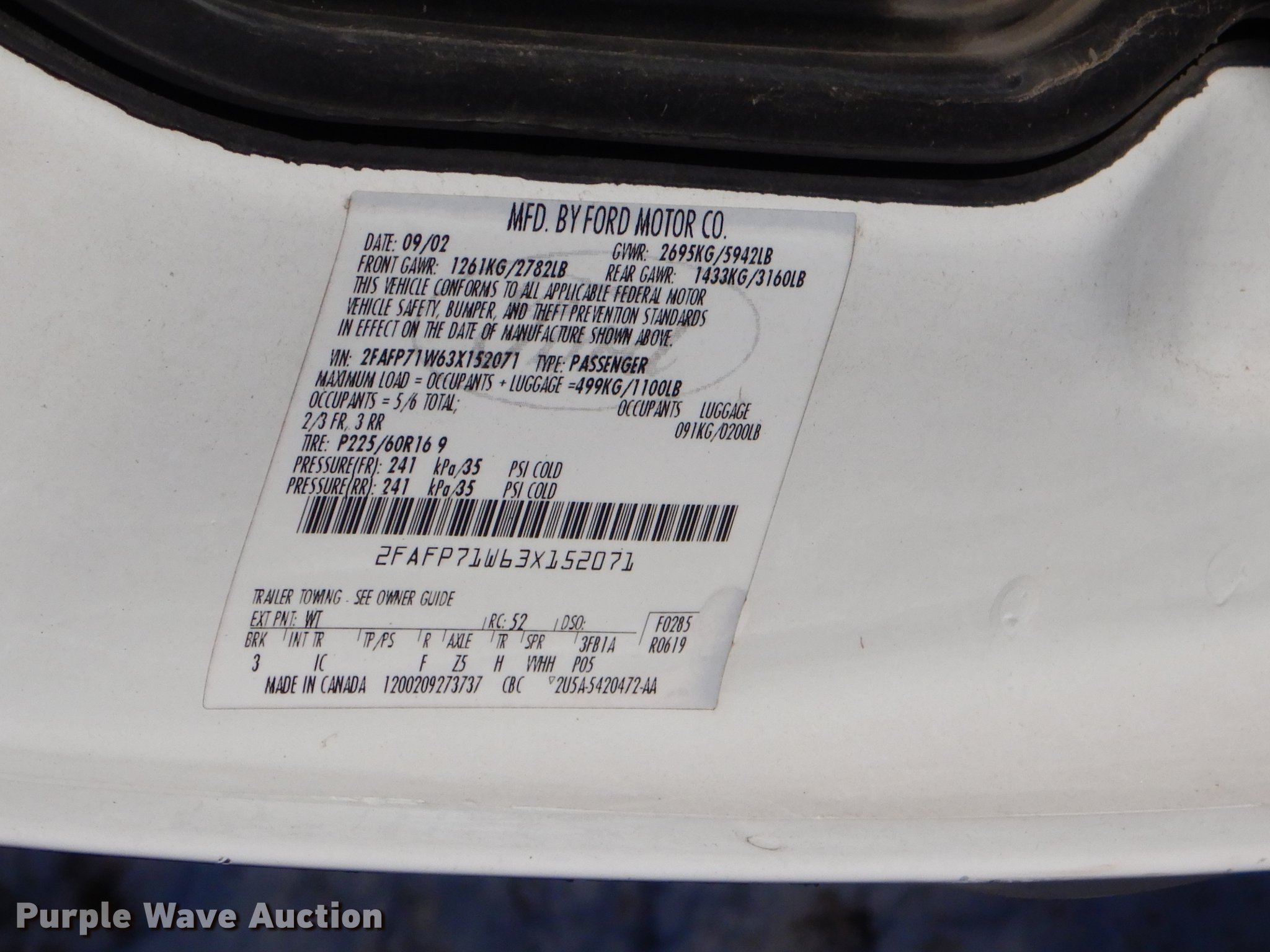Purple Wave is selling a used Passenger Vehicle in Oklahoma. This item is a 2003 Ford Crown Victoria Police Interceptor with the following: 138,056 miles on odometer, 4.6L V8 SOHC 16V gas engine, Automatic transmission, AC and heat, Power windows and locks, 225/60R16 tires, Unknown operating condition