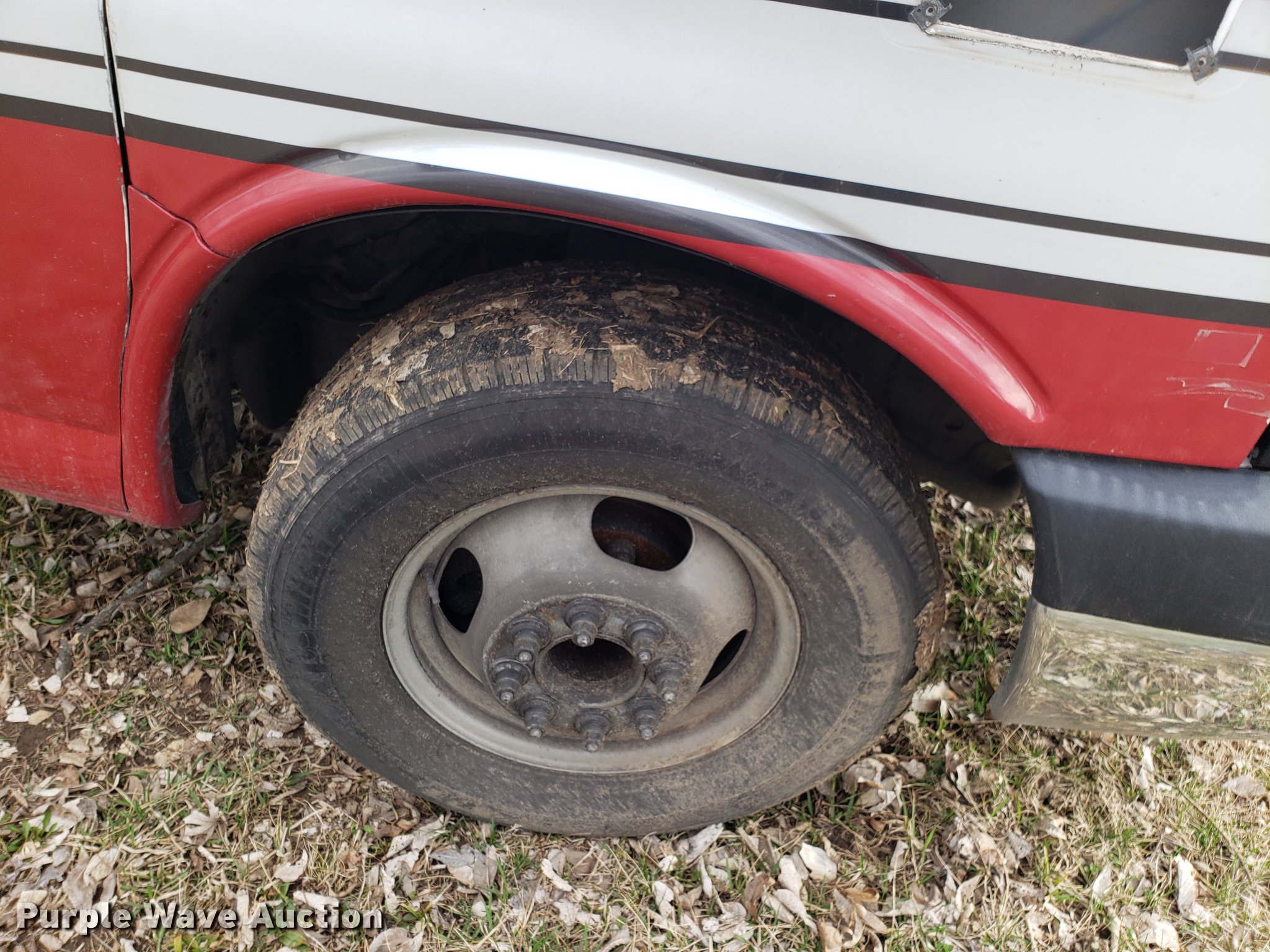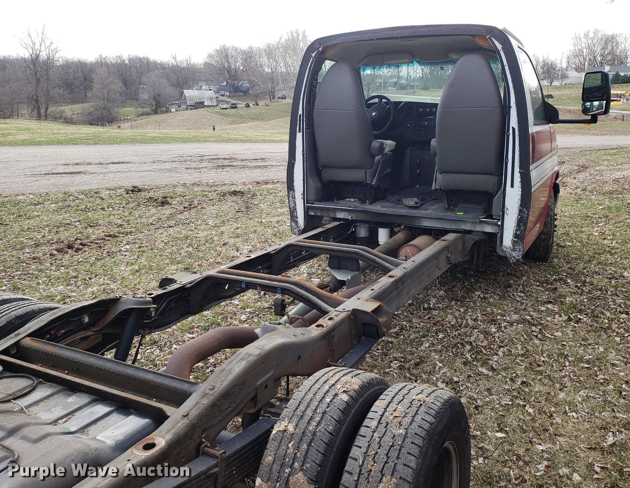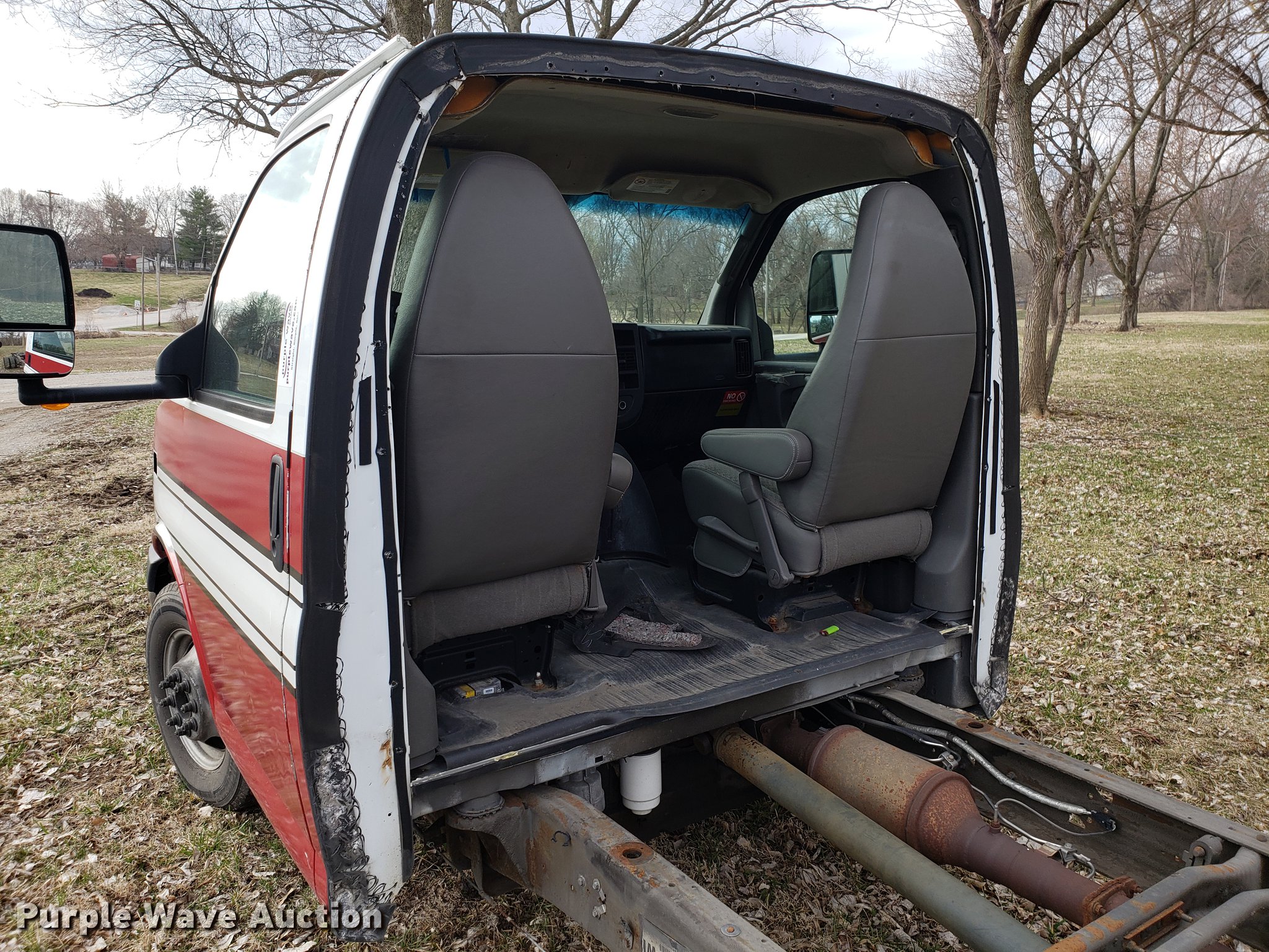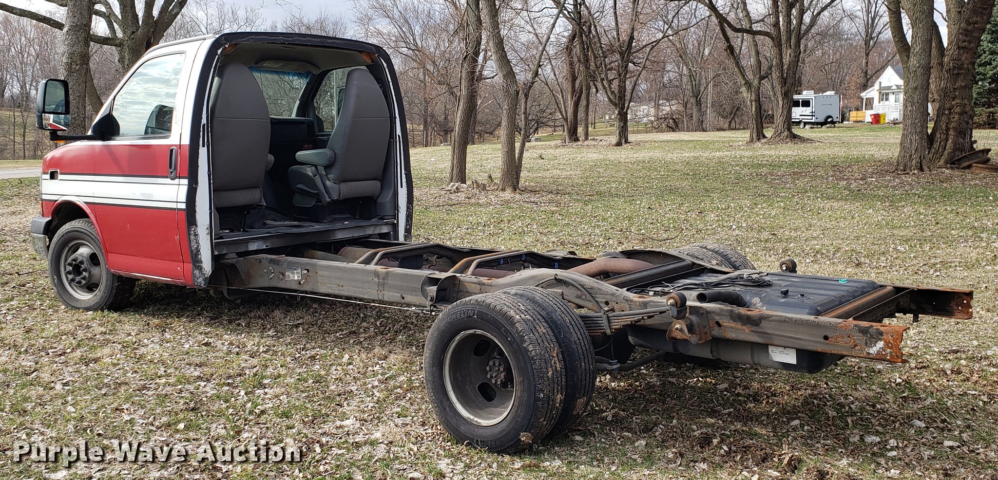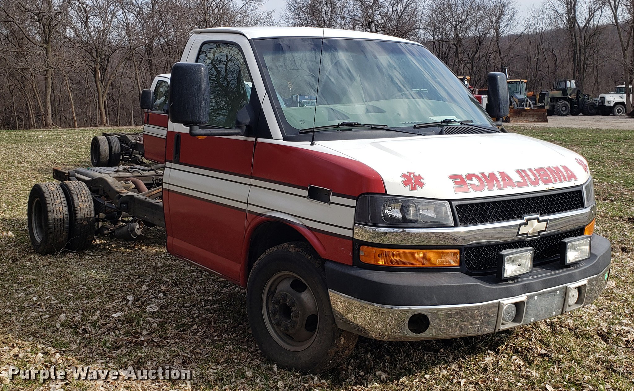 Purple Wave is selling a used Truck Chassis in Missouri. This item is a 2010 Chevrolet Express G4500 cab and chassis with the following: 248,471 miles on odometer, 6.6L V8 OHV 32V diesel engine, Automatic transmission, AC and heat, Tilt, Cruise, Power locks, Cloth interior, 98" from rear of cab to center of rear axle, 14' from rear of cab to end of frame, Tire chains, 225/75R16 tires, Unknown operating condition of AC, No battery