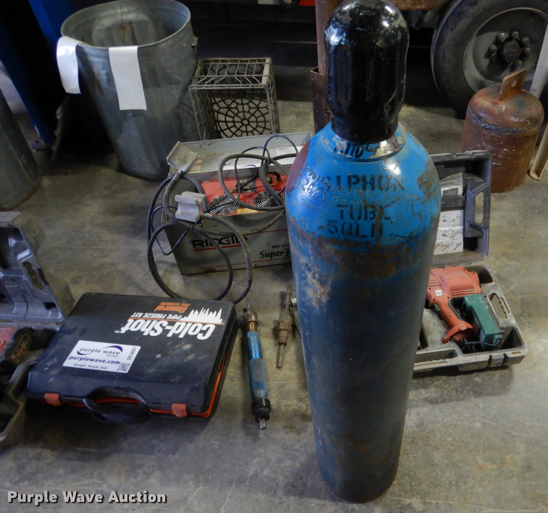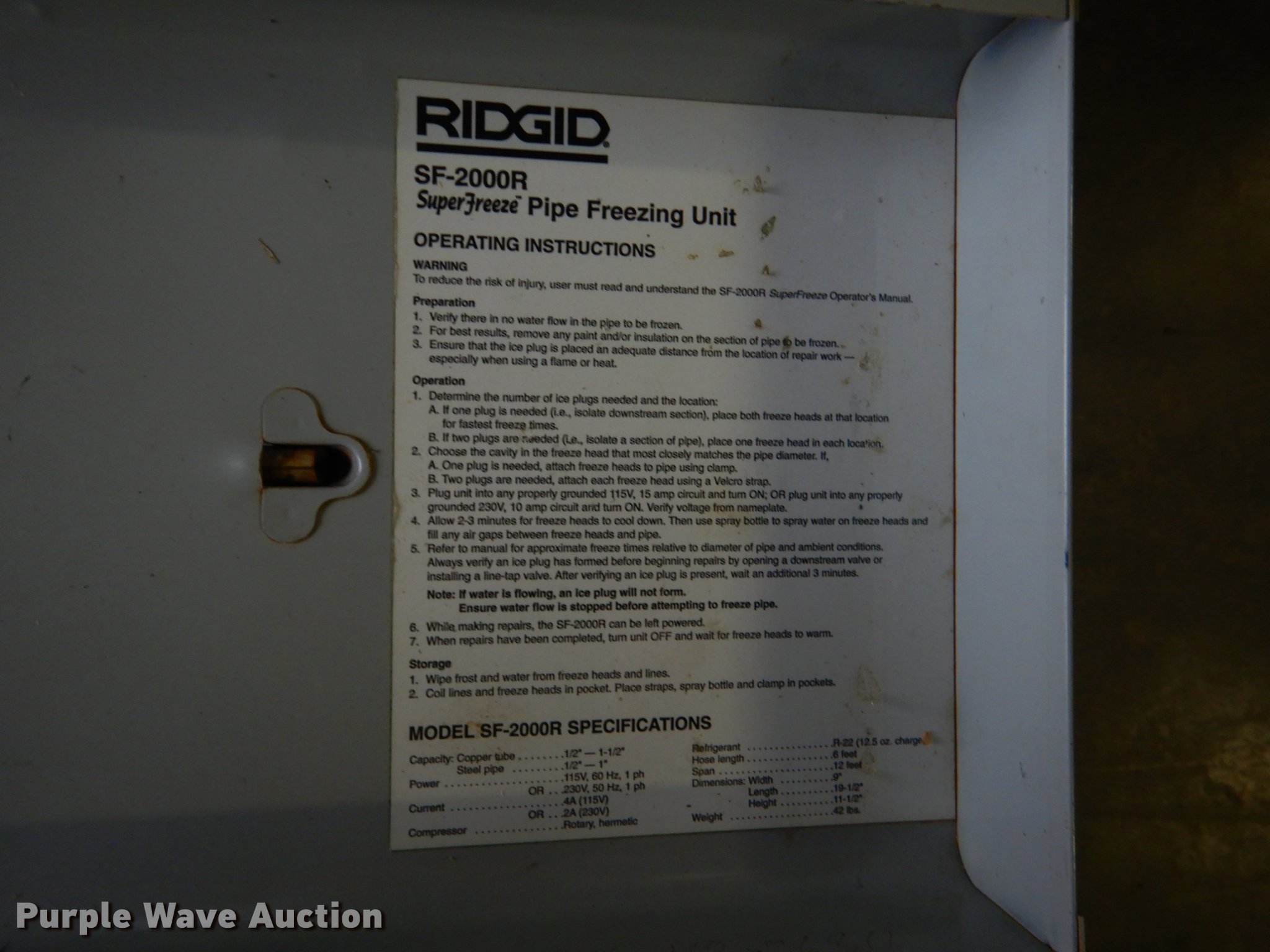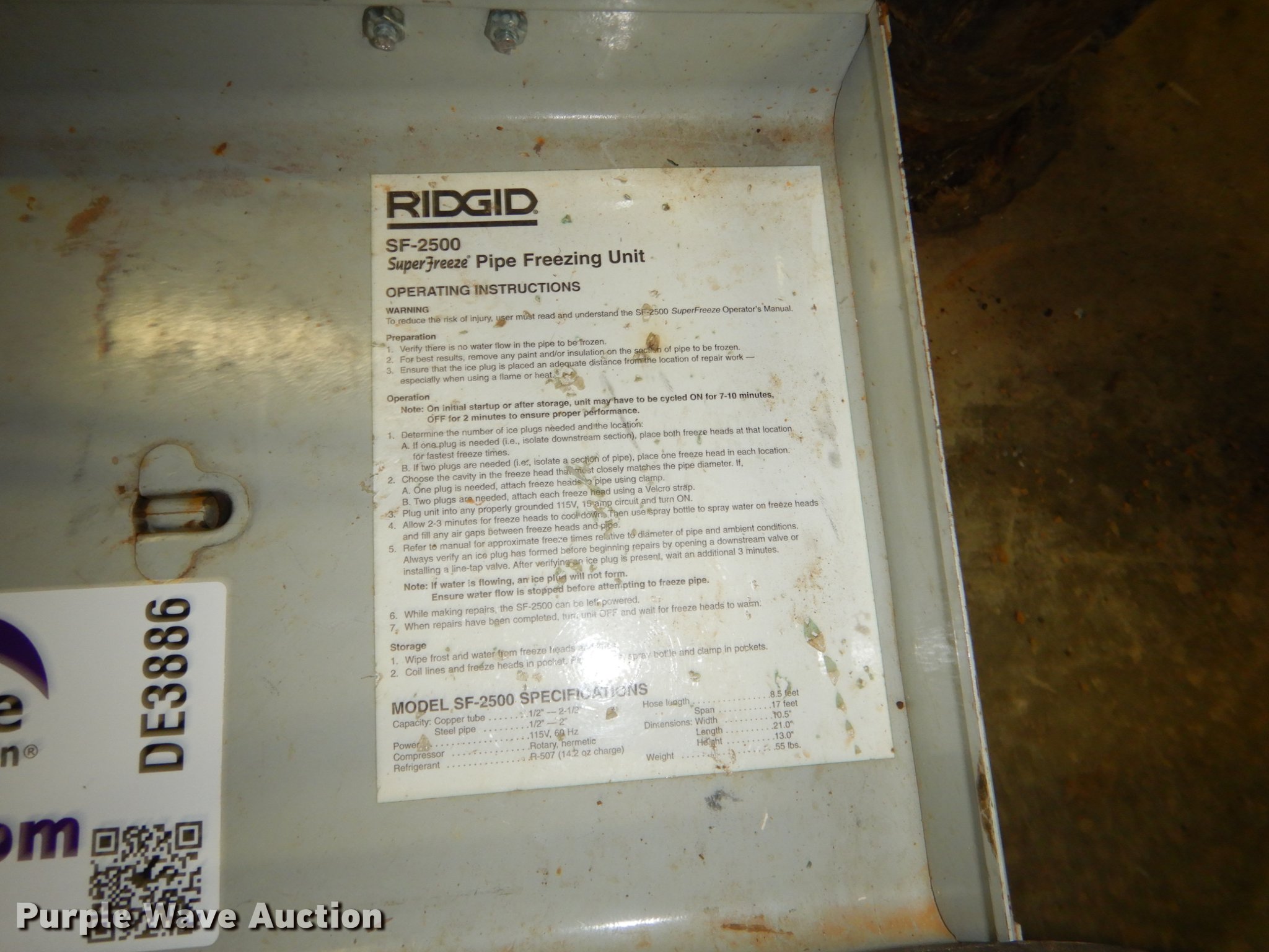 Purple Wave is selling a used Tools in Oklahoma. This item is a Tools with the following: (2) Ridgid SF2000 freeze machines, (2) Ridgid Pro press, Tapping tools, Cold shot pipe freeze kit with bottle
