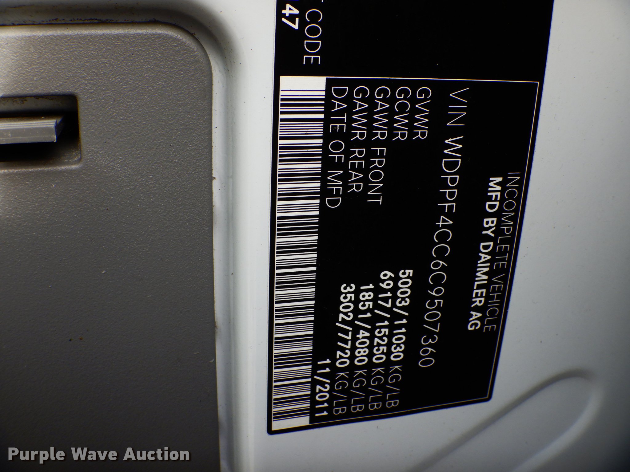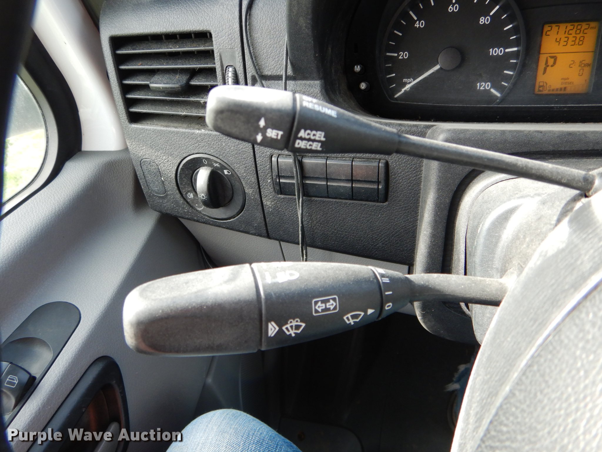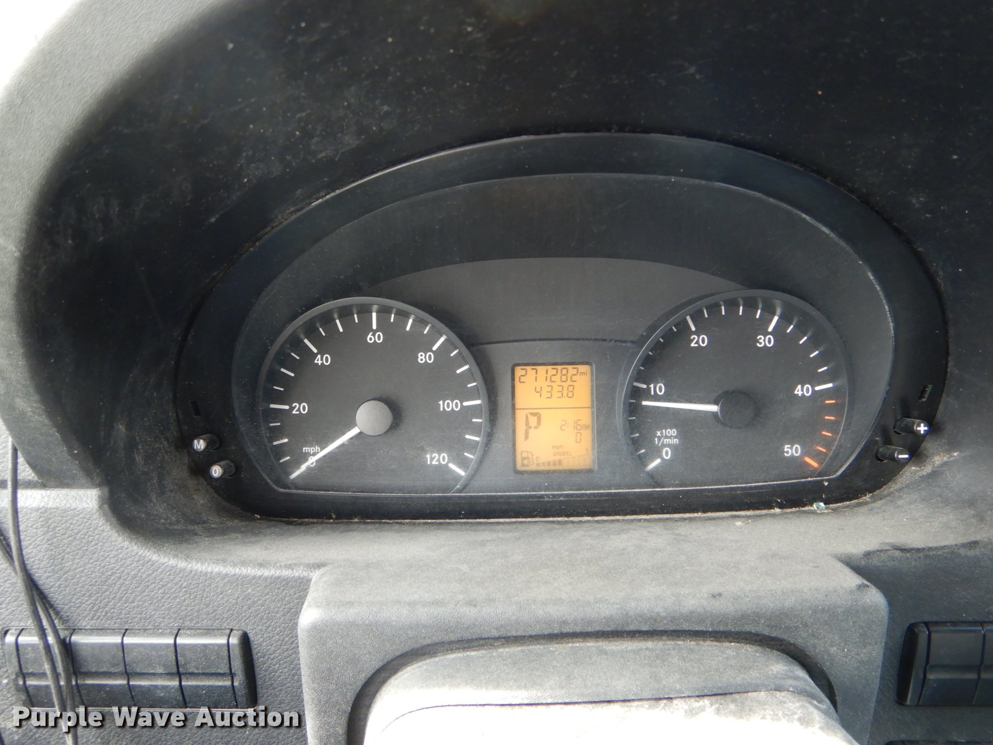 Purple Wave is selling a used Box Truck in Missouri. This item is a 2012 Freightliner Sprinter 3500 box truck with the following: 271,282 miles on odometer, 3.0L V6 diesel engine, Automatic transmission, Single axle, AC and heat, AM/FM/CD, Power windows, Suspension seat, 16'L x 8'W box bed, Wood floor, Roll up rear door, Single fuel tank, Spring suspension, Hydraulic brakes, 162" wheelbase, LT215/85R16 tires, GVWR 11,030 lbs, Hood prop rod missing