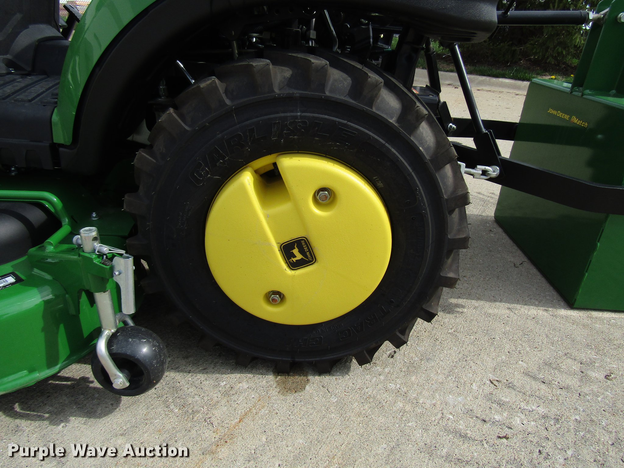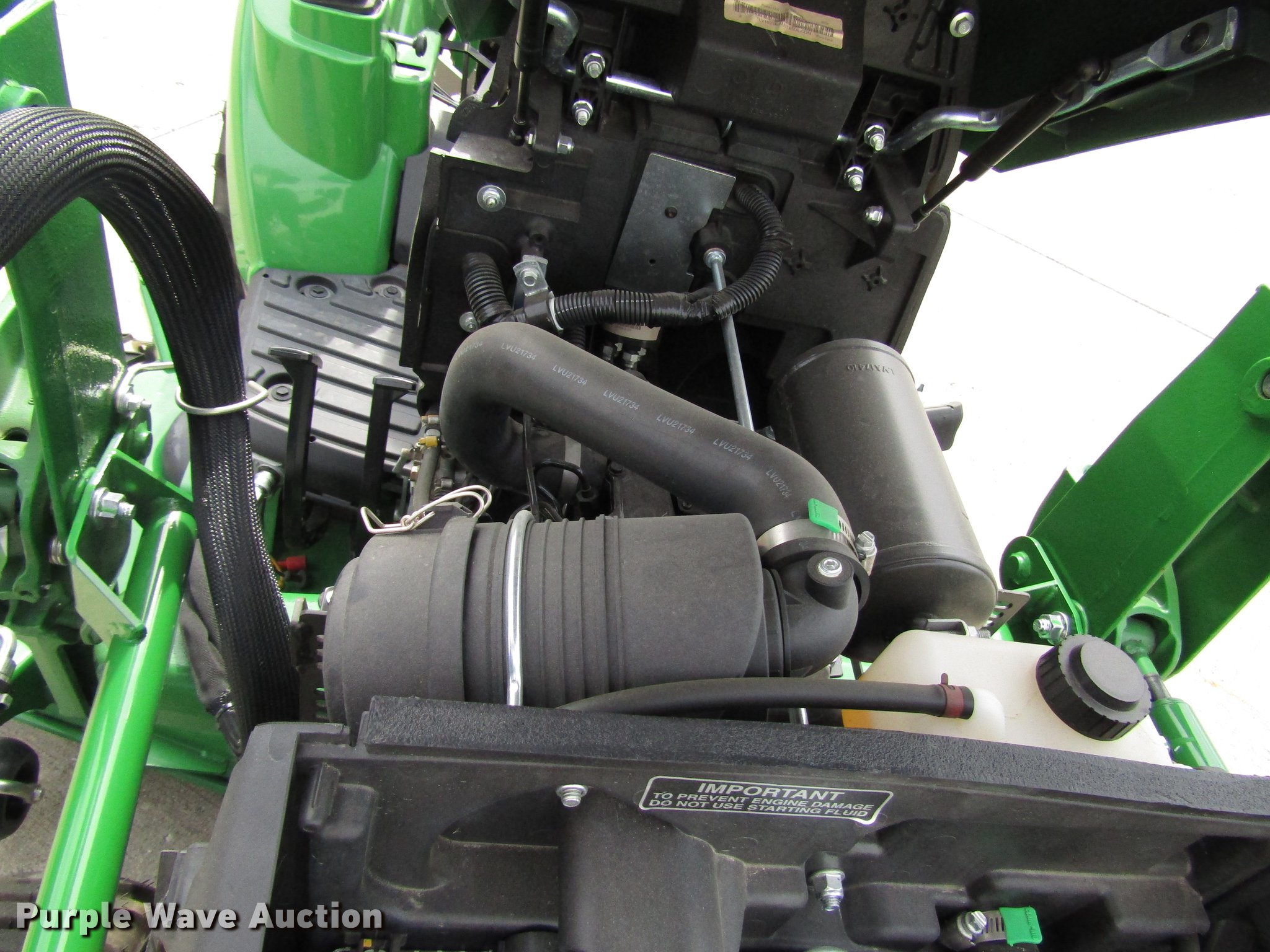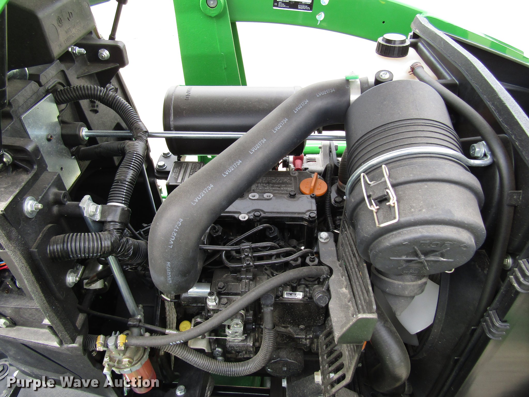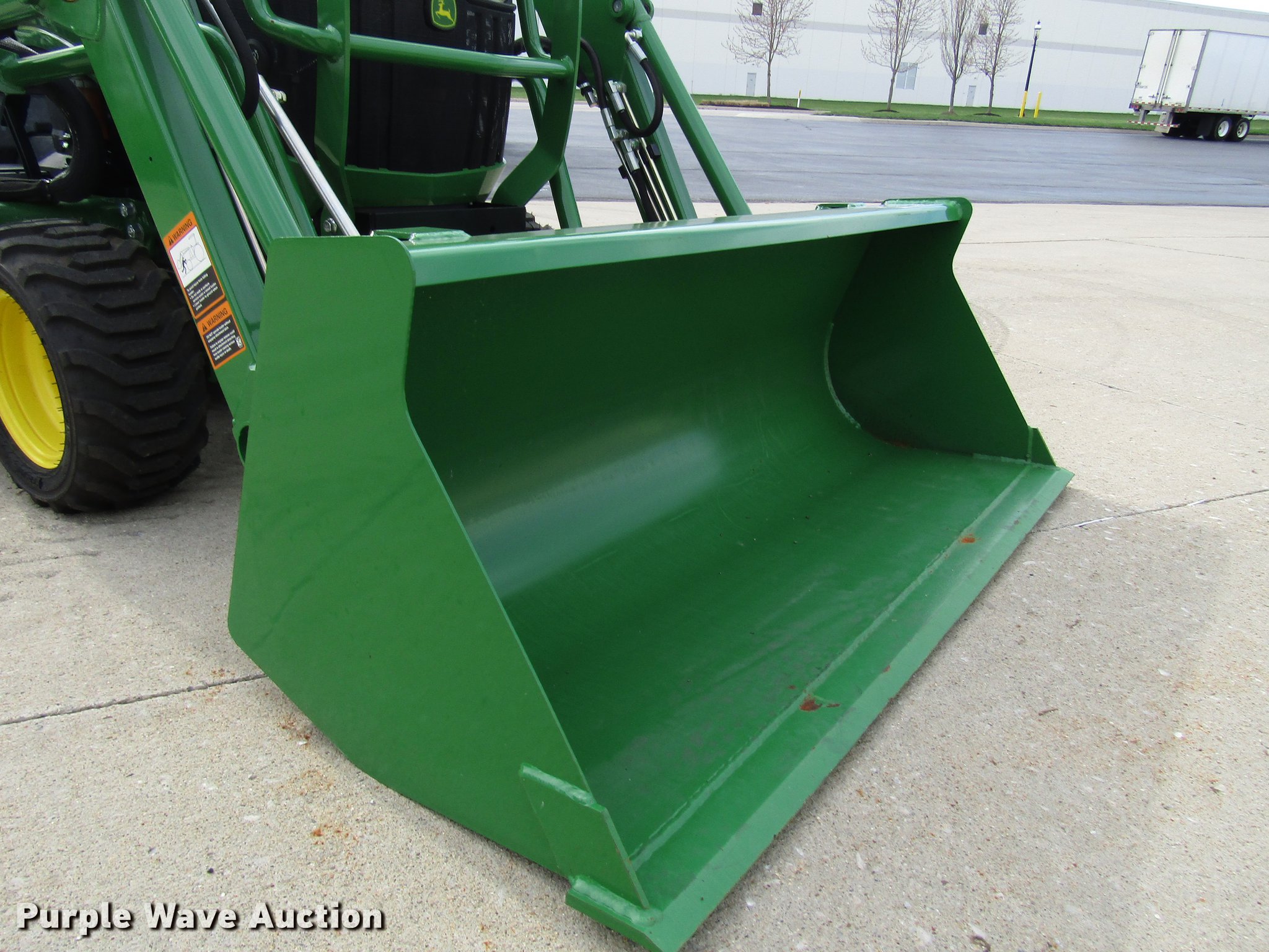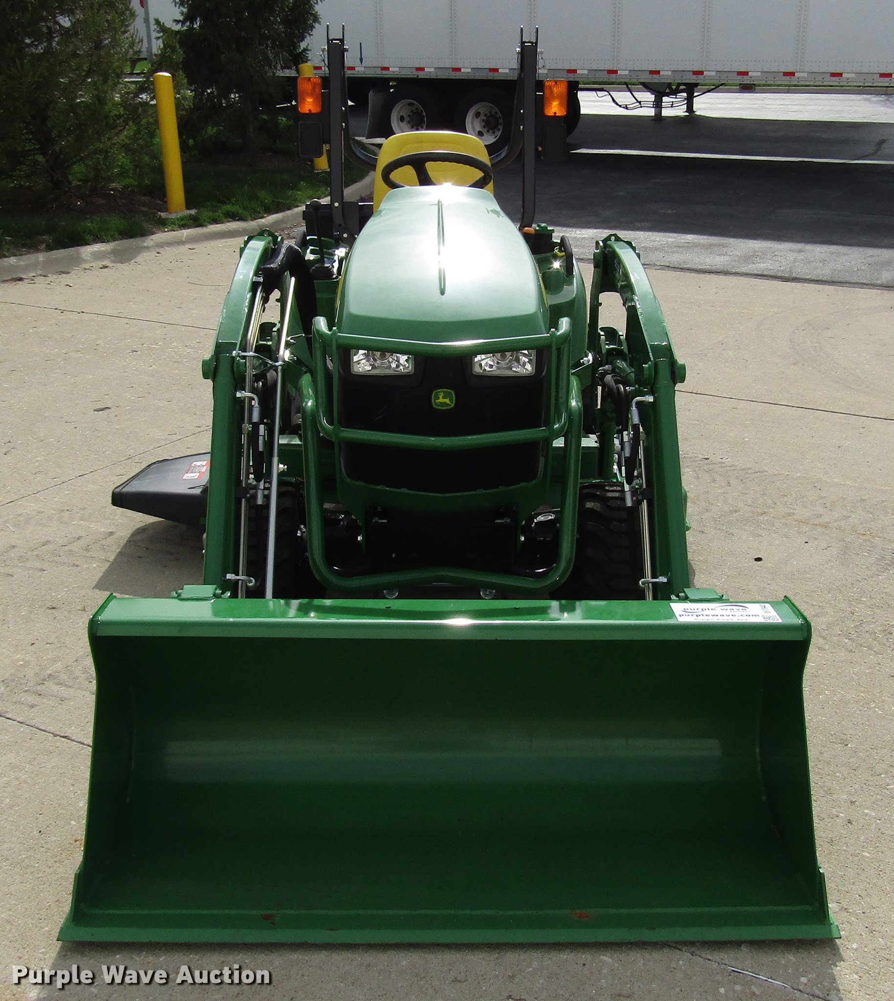 Purple Wave is selling a used Tractor in Ohio. This item is a 2018 John Deere 1023E MFWD tractor with the following: 6 hours on meter, Yanmar 3TNM74F-NCJT three cylinder diesel engine, Serial CH3U09D038359, Hydrostatic transmission, 2F-2R gears, Differential lock, John Deere 120R loader, 53"W bucket, Quick attach, Joystick controls, Serial 1P0120RXCHC017337, Three point, Top link, 540 PTO, (2) front hydraulic remote sets, John Deere weight ballast box, Mower deck, Model 60D, 60"W, Serial 1M01060DKHM089729, (2) wheel weights, 58" wheelbase, 215/50-10 front tires, 305/60-12 rear tires, Manufacture basic warranty until 2020, Manufacture power-train warranty until 2024, Serial 1LV1023EJJJ116506