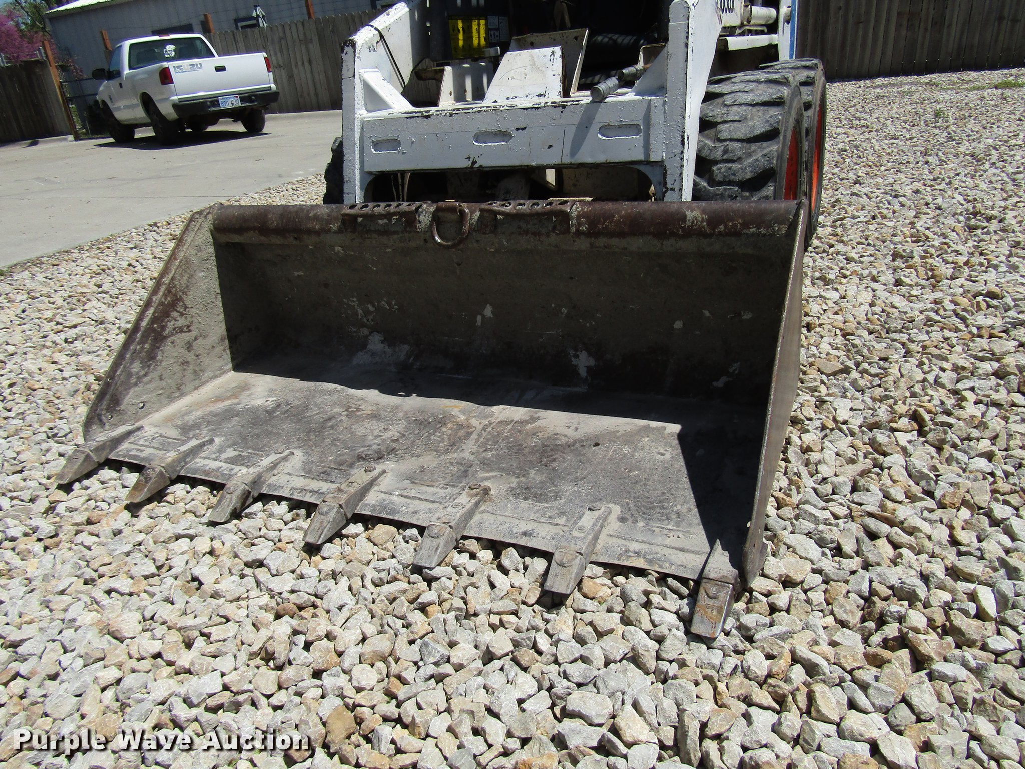 Purple Wave is selling a used Skid Steer Loader in Kansas. This item is a Bobcat 743 skid steer with the following: 3,378 hours on meter, Kubota four cylinder diesel engine, Hydrostatic transmission, Open station/canopy, Foot bucket controls, Front and rear work lights, 66"W bucket, Bolt-on teeth, Manual quick coupler, Auxiliary hydraulics, 10-16.5 tires, Serial 501962804