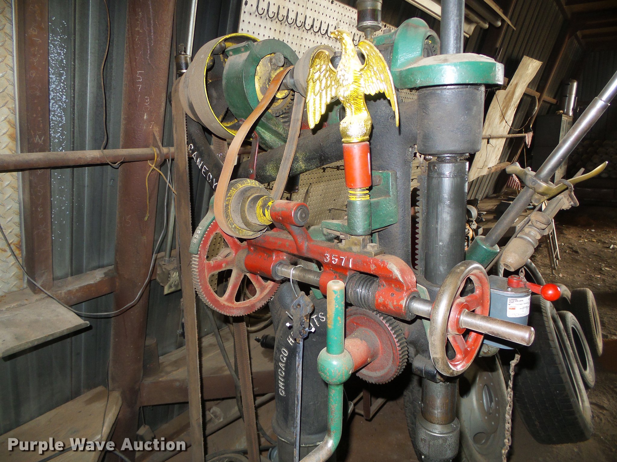Purple Wave is selling a used Tools in Oklahoma. This item is a Chicago Heights-Canedy Otto Mfg. drill press with the following: Chicago Heights-Canedy Otto Mfg. drill press. 4600 Hunter Rd. Woodward, OK 73801