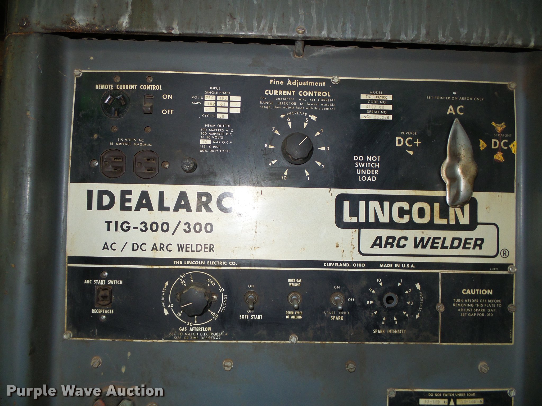 Idealarc TIG-300/300 AC/DC arc welder has sold in Woodward, Oklahoma for $231. Item EQ9077 sold on May 8th, 2019.
