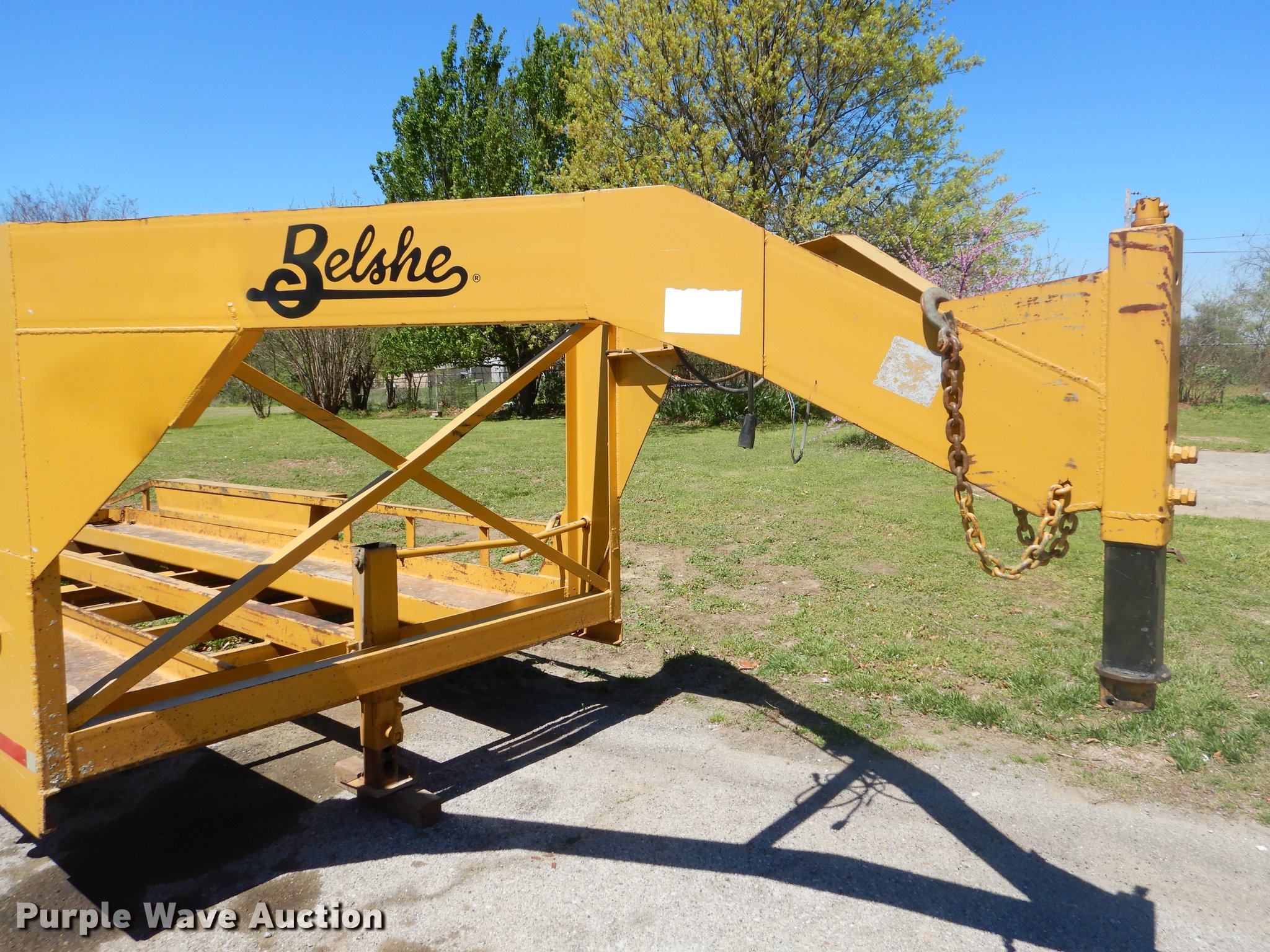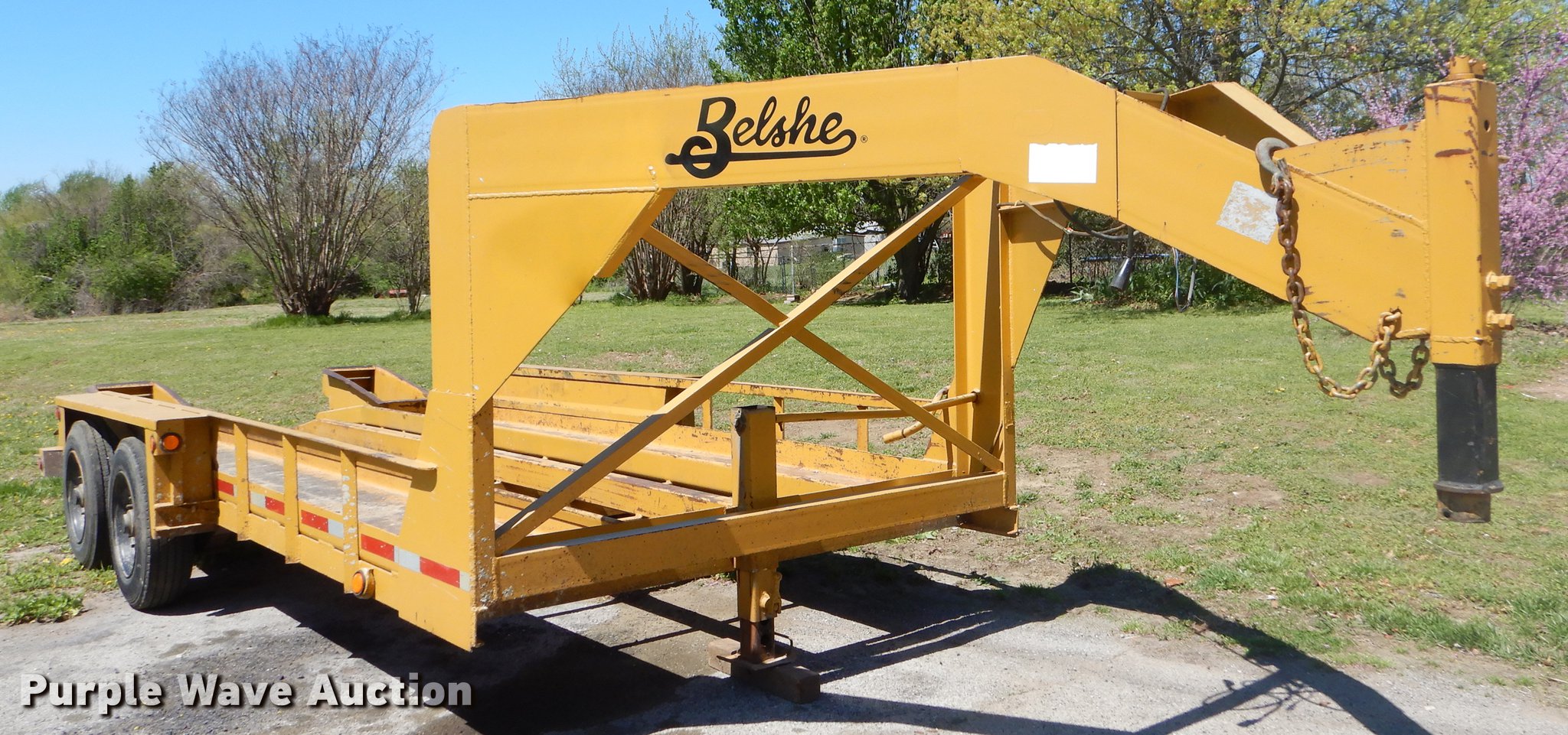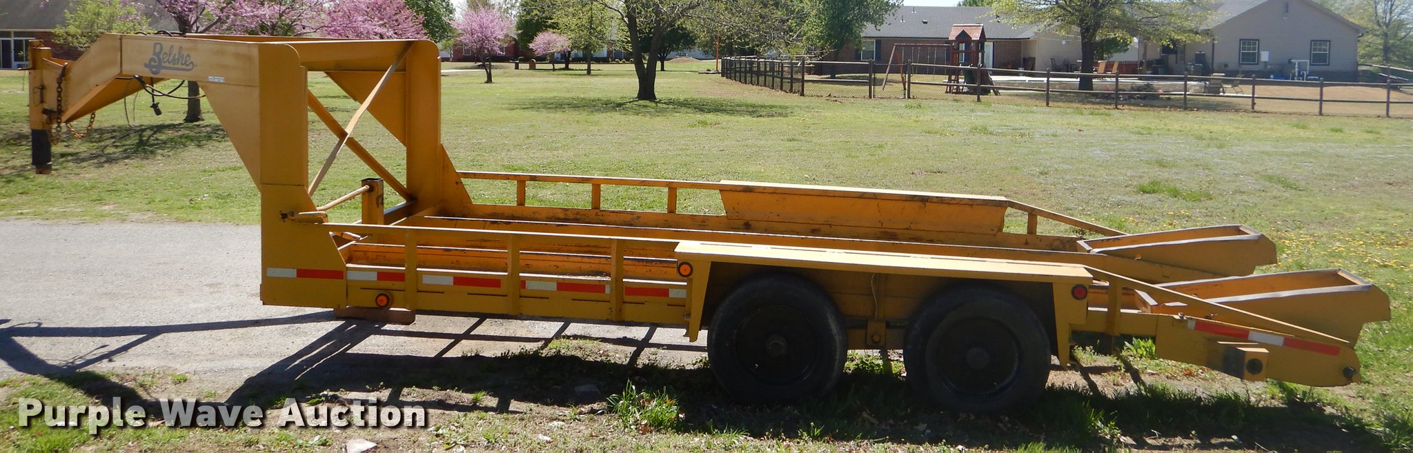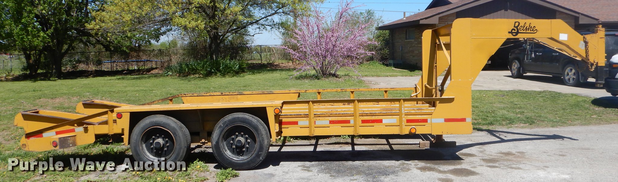 Purple Wave is selling a used Equip. Trailer in Oklahoma. This item is a 2005 Belshe equipment trailer with the following: 27' overall length, 20'L x 96"W steel deck, 36" tail length, 48"L ramps, D-ring tie downs, Gooseneck hitch, Single leg landing gear, Spring suspension, Electric brakes, Tandem axle, Steel wheels, 215/75R17.5 tires, Battery box broken