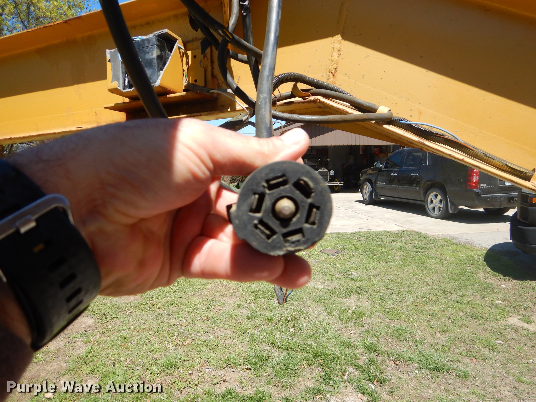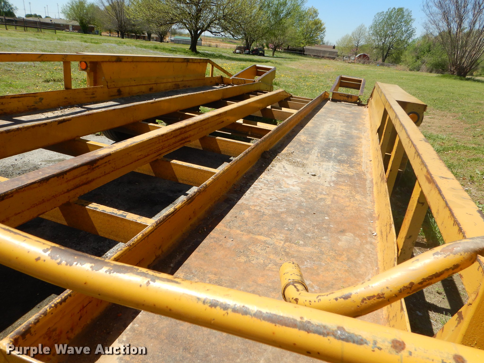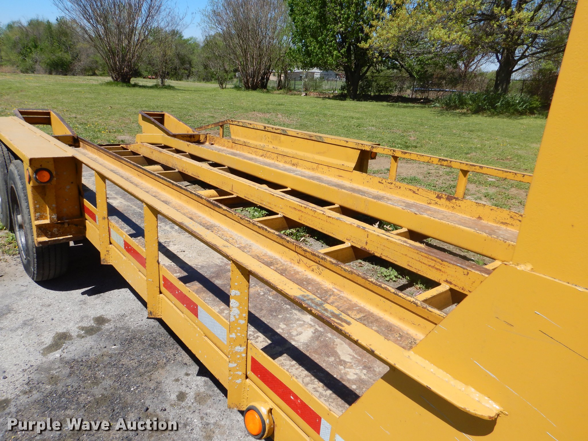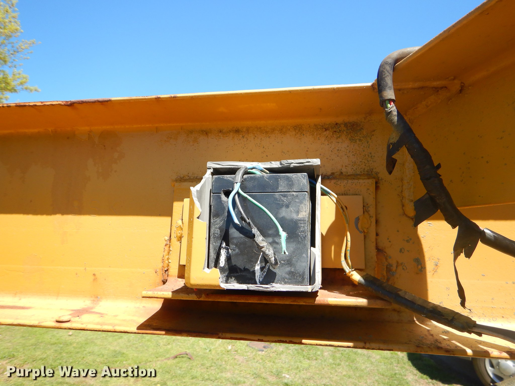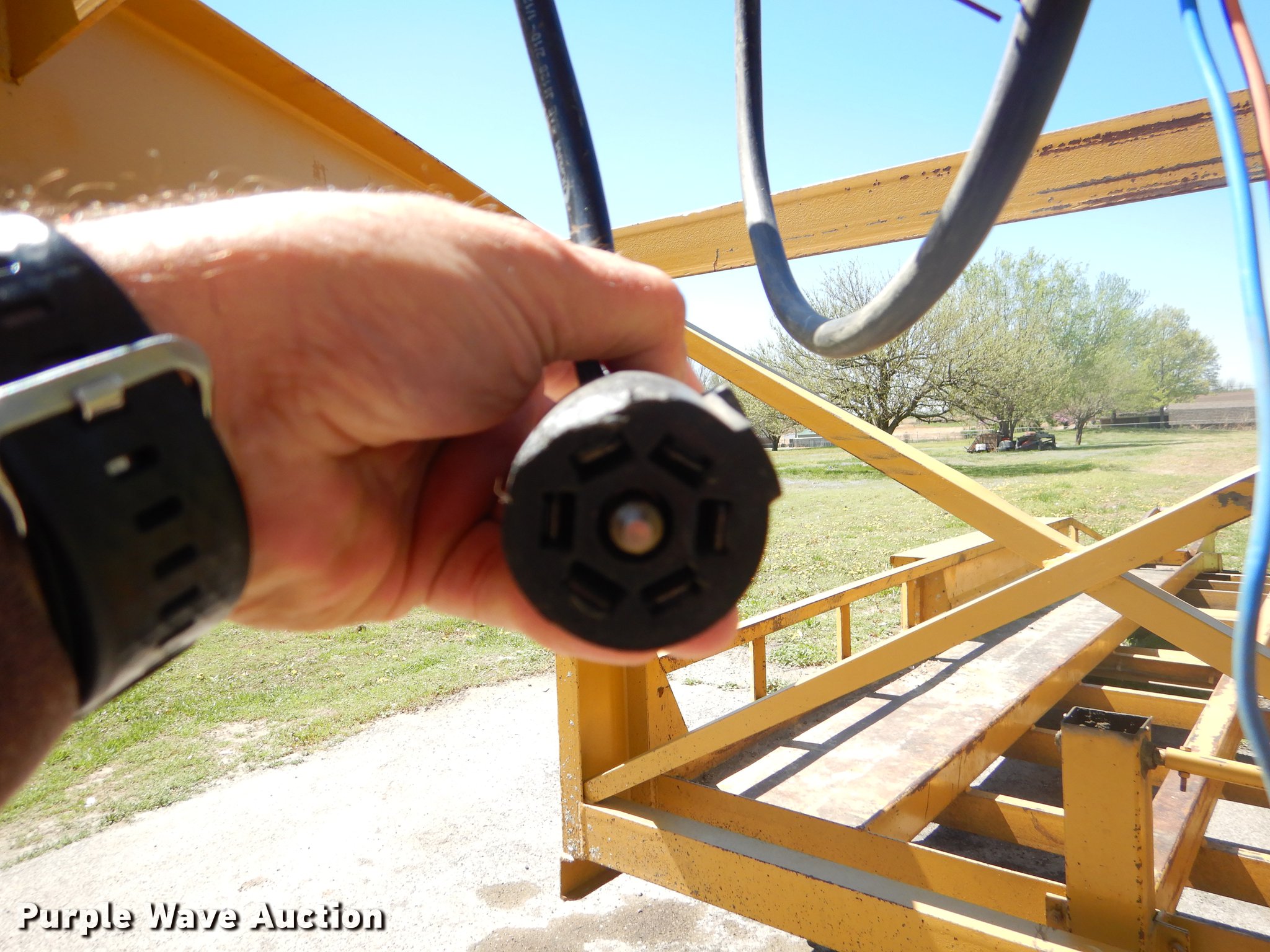 Purple Wave is selling a used Equip. Trailer in Oklahoma. This item is a 2005 Belshe equipment trailer with the following: 27' overall length, 20'L x 96"W steel deck, 36" tail length, 48"L ramps, D-ring tie downs, Gooseneck hitch, Single leg landing gear, Spring suspension, Electric brakes, Tandem axle, Steel wheels, 215/75R17.5 tires, Battery box broken