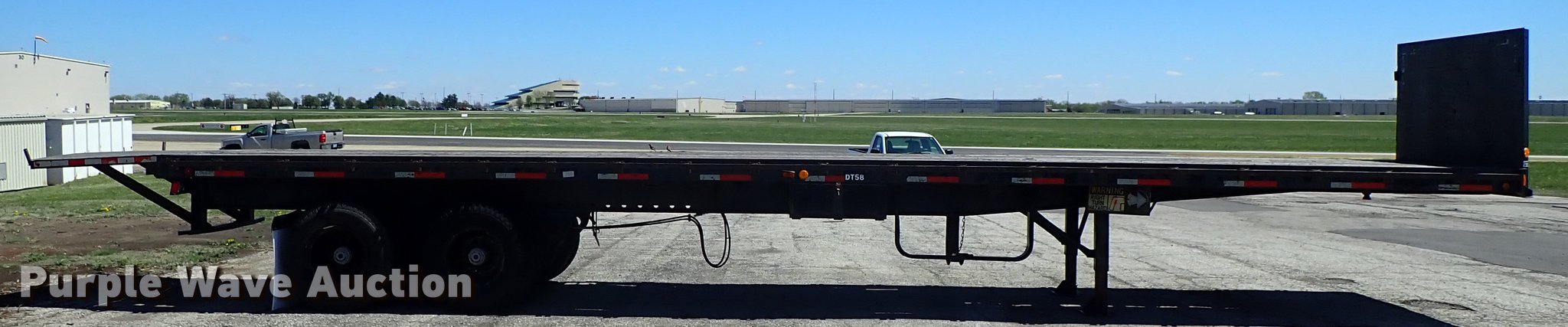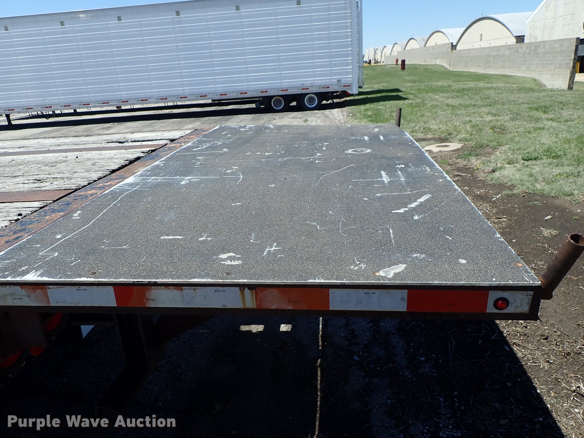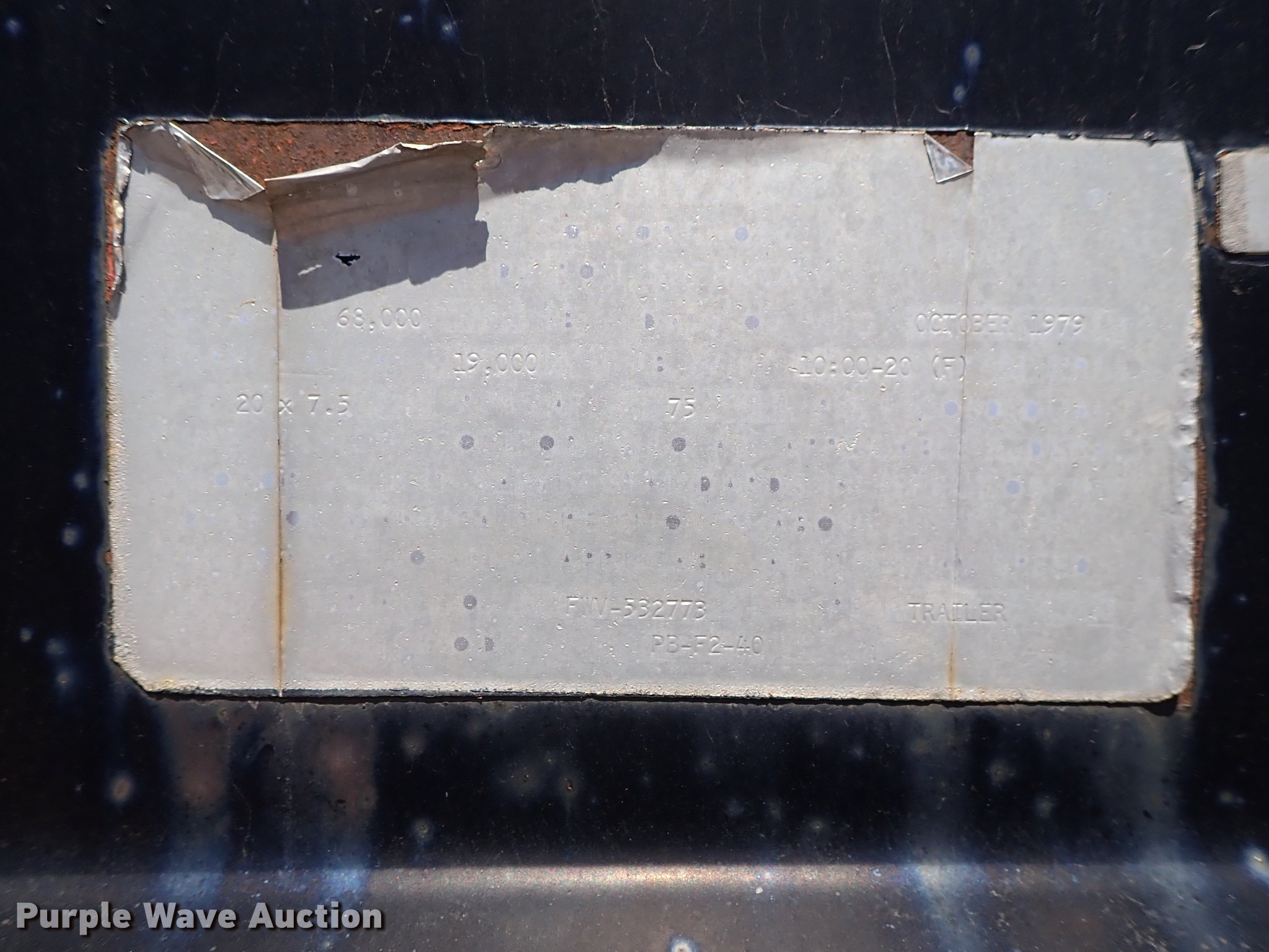 Purple Wave is selling a used Flat or Drop Deck Trailer in Kansas. This item is a 1980 Fruehauf flatbed trailer with the following: 44'L x 8'W overall, 40'L deck, 4'L rear platform, Wood deck, Fifth wheel plate, Dual leg landing gear, Spring suspension, Air brakes, Tandem axle, 10.00-20 tires, GVWR 68,000 lbs