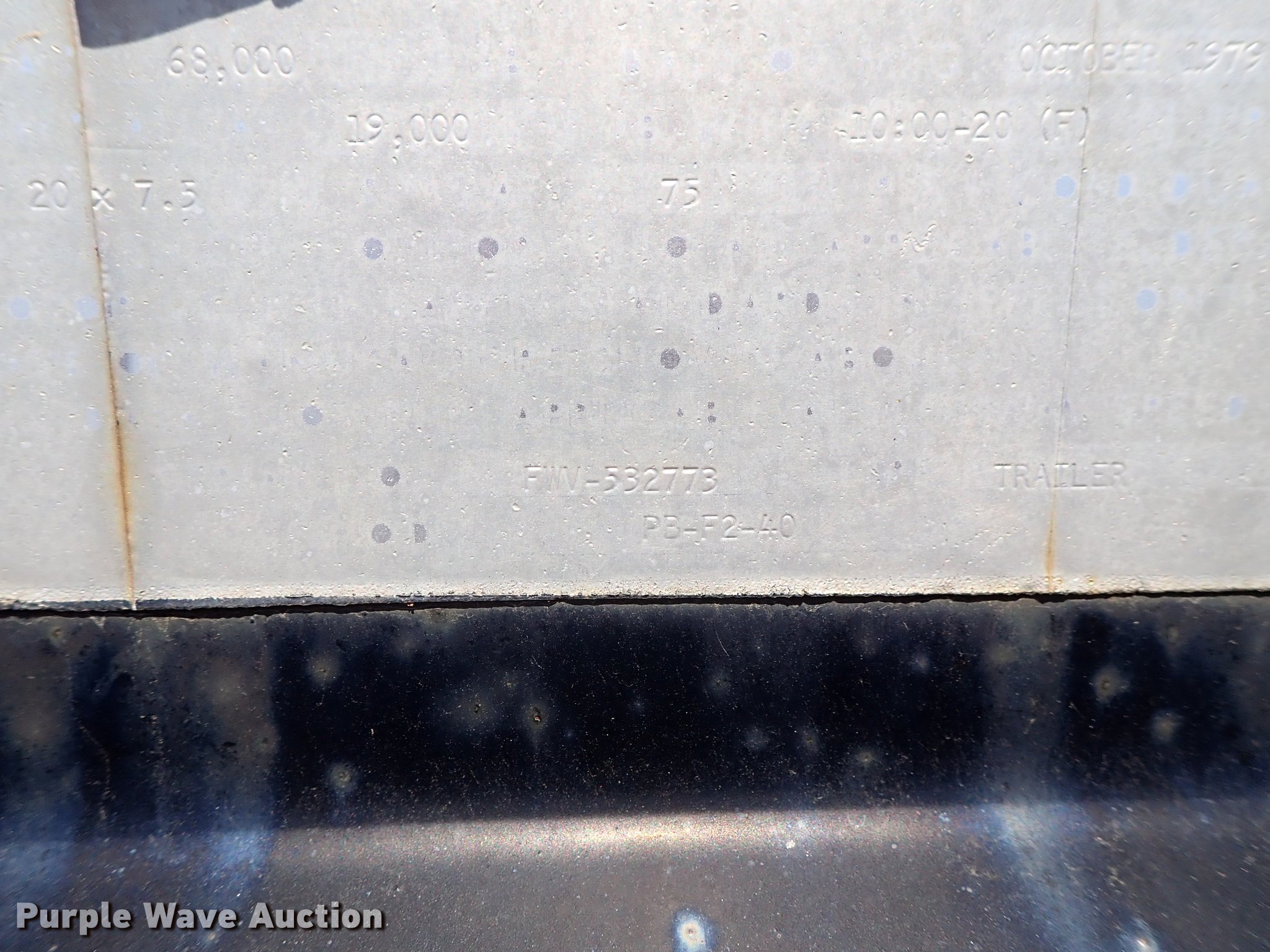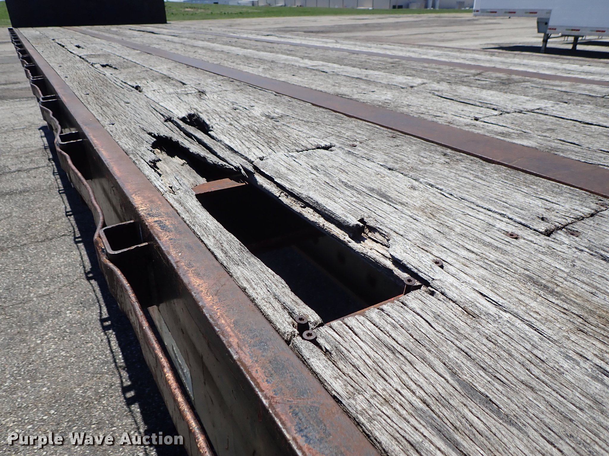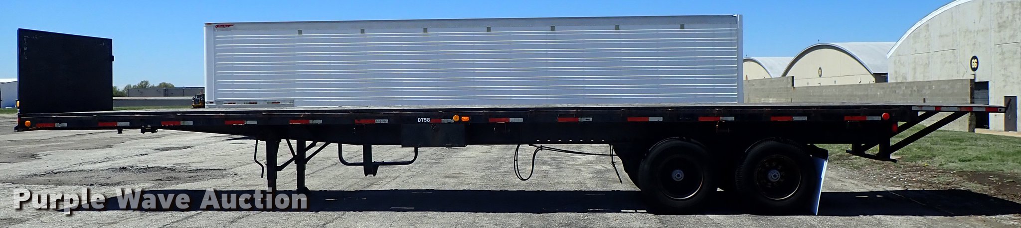 Purple Wave is selling a used Flat or Drop Deck Trailer in Kansas. This item is a 1980 Fruehauf flatbed trailer with the following: 44'L x 8'W overall, 40'L deck, 4'L rear platform, Wood deck, Fifth wheel plate, Dual leg landing gear, Spring suspension, Air brakes, Tandem axle, 10.00-20 tires, GVWR 68,000 lbs