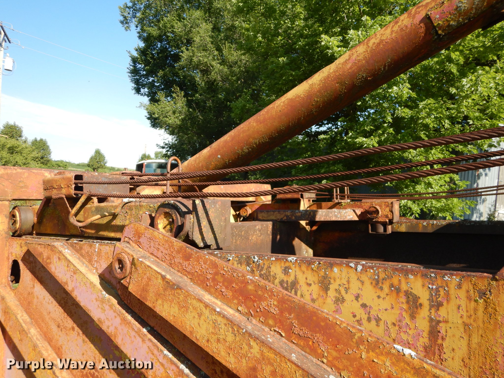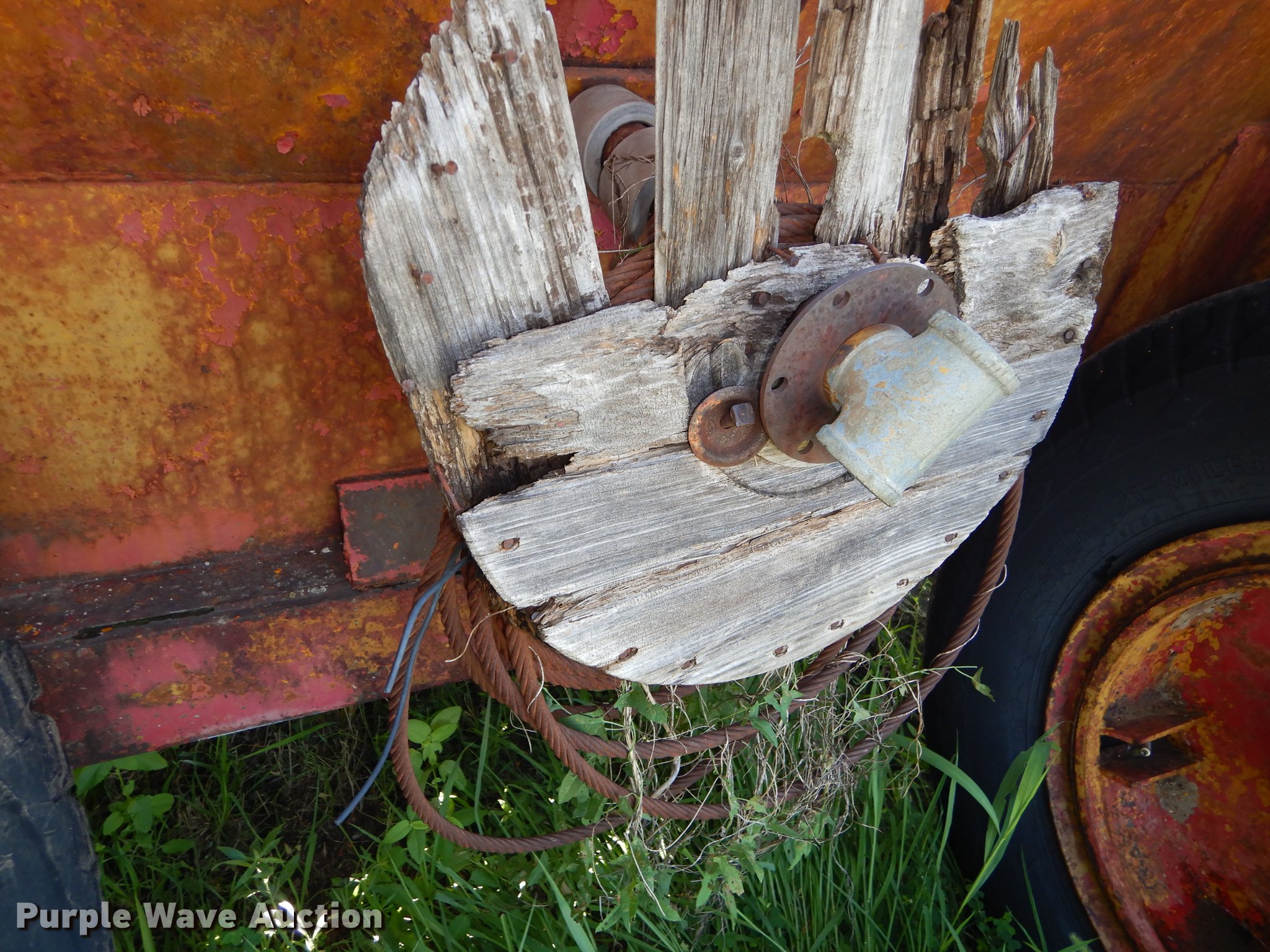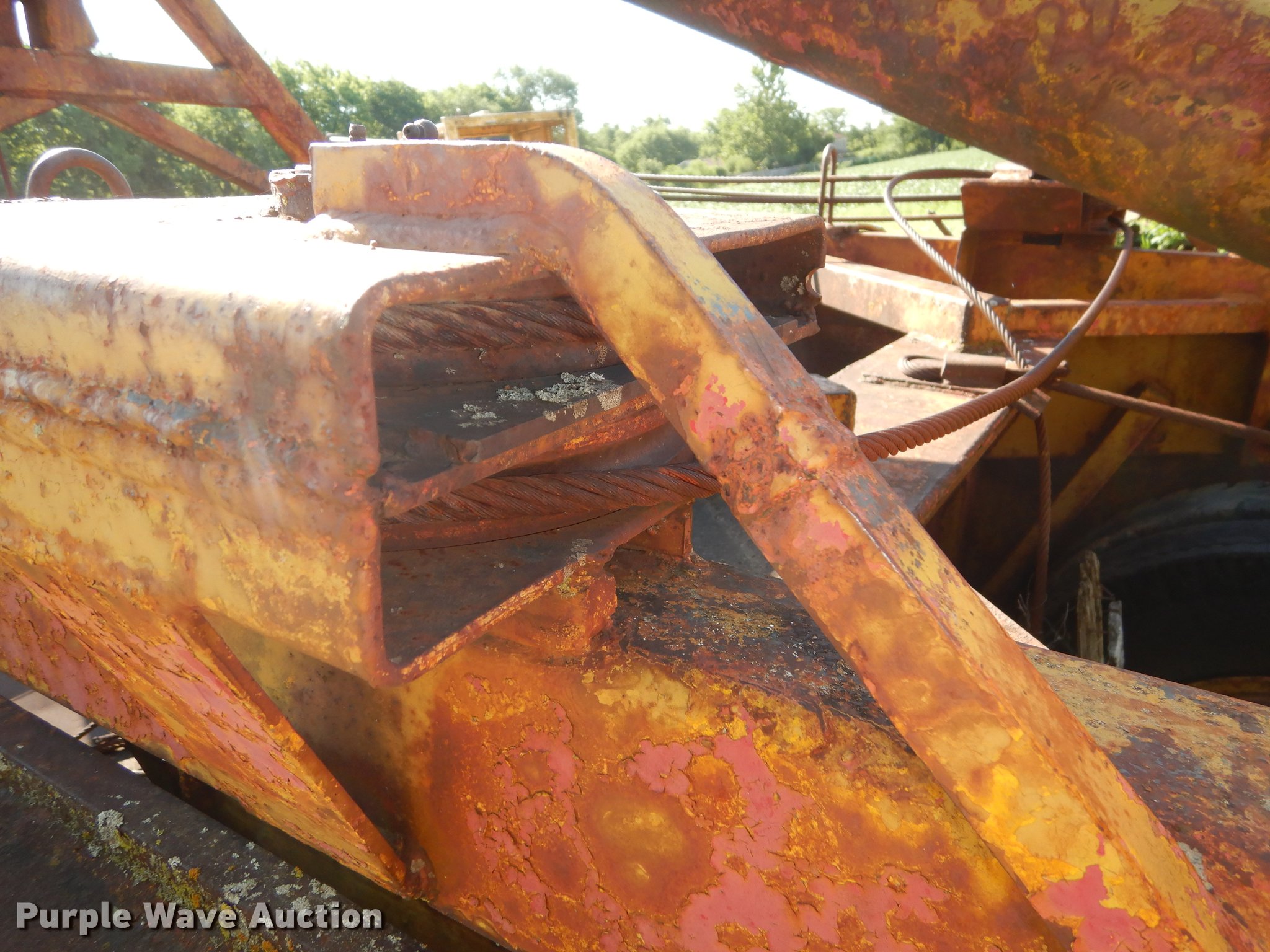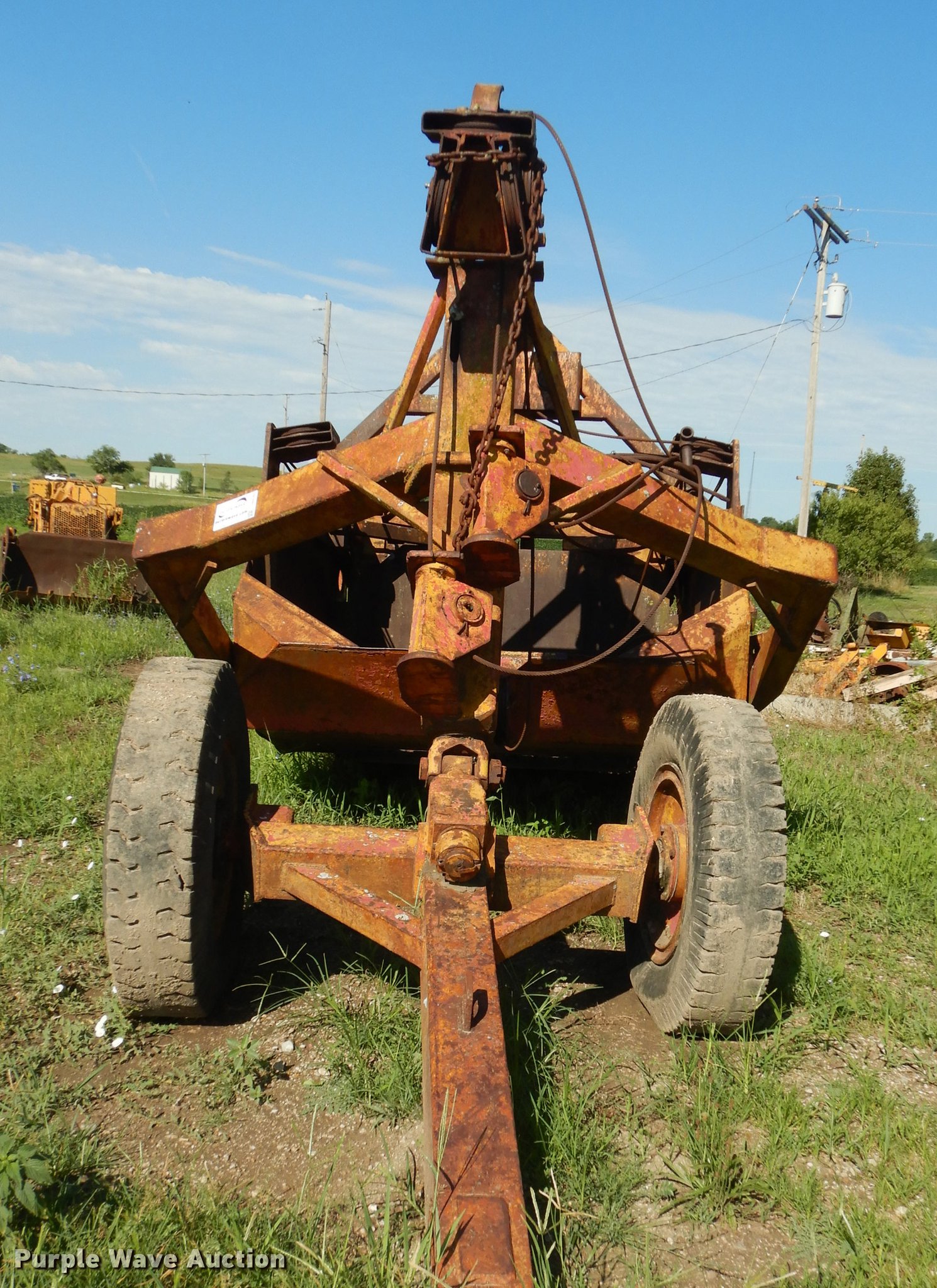 Purple Wave is selling a used Pull Type Scraper in Kansas. This item is a R.G. LeTourneau M cable scraper with the following: Eight cubic yard capacity, Adjustable cutting edge, Convertible to ripper, Pin hitch, Goodyear 10.00-20 tires, Lip base cracked, Serial JR6G