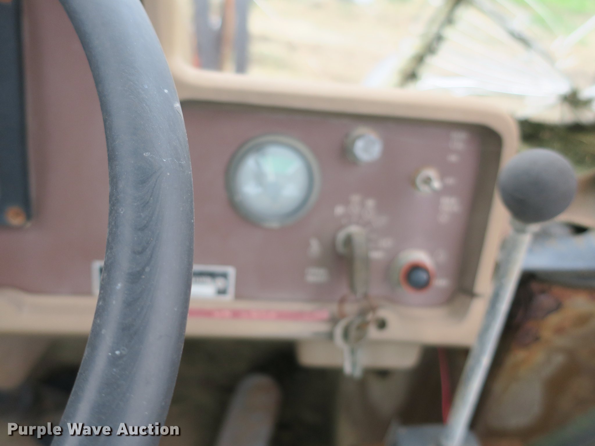 Purple Wave is selling a used Wheel Loader in Missouri. This item is a Dresser 510B wheel loader with the following: 2,626 hours on meter, Dresser four cylinder diesel engine, Powershift transmission, 3F-3R gears, Enclosed cab, Suspension seat, Two-lever bucket controls, 91"W general purpose bucket, Hydraulic quick coupler, 15.5-25 tires, Unknown operating condition, No battery, Glass missing, Glass cracked, Holes in bucket