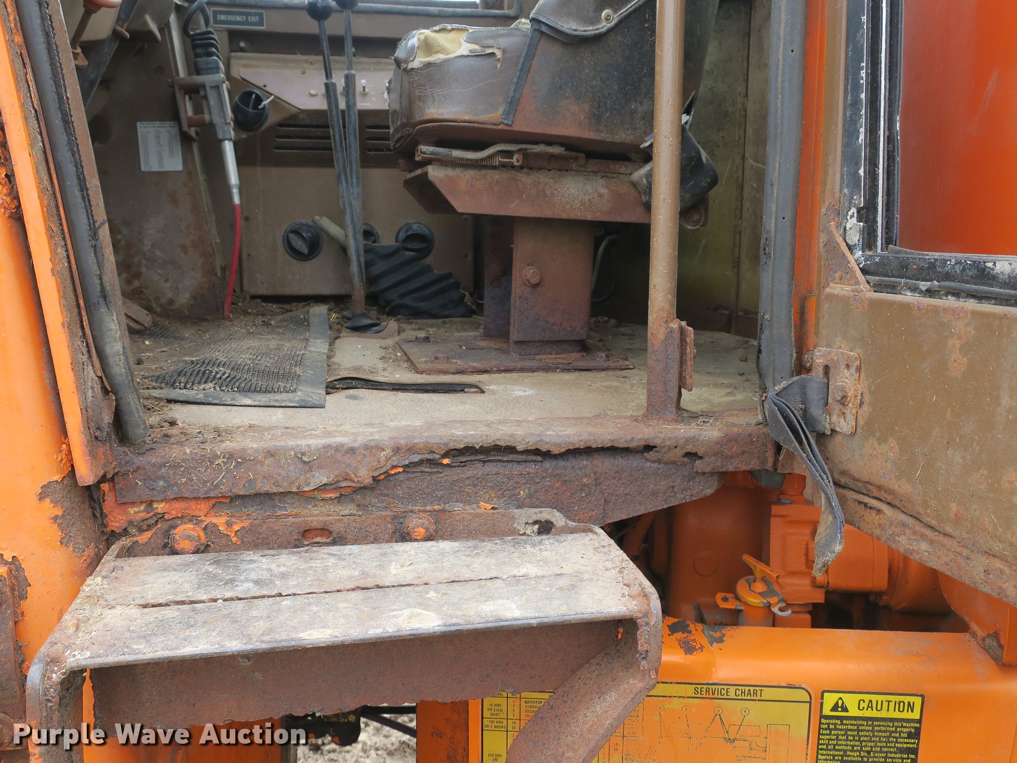 Purple Wave is selling a used Wheel Loader in Missouri. This item is a 1990 Dresser 510B wheel loader with the following: 2,374 hours on meter, Cummins 4BT-100 four cylinder diesel engine, 100 HP, Powershift transmission, 3F-3R gears, Enclosed cab, Suspension seat, Two-lever bucket controls, Block heater, 92"W general purpose bucket, Bolt-on cutting edge, Hydraulic quick coupler, 15.5-25 tires, Glass missing, Glass cracked, Hydraulic quick coupler lines cut, Serial 3380141C002374