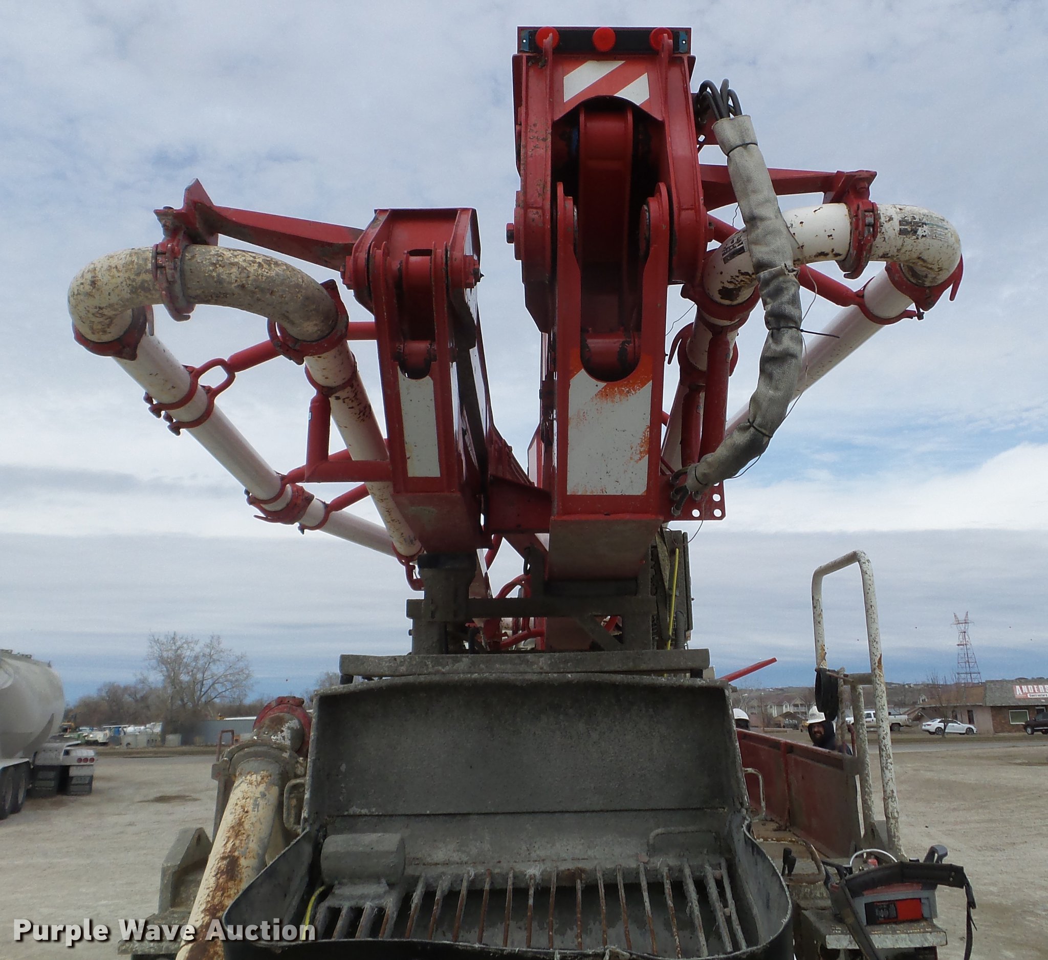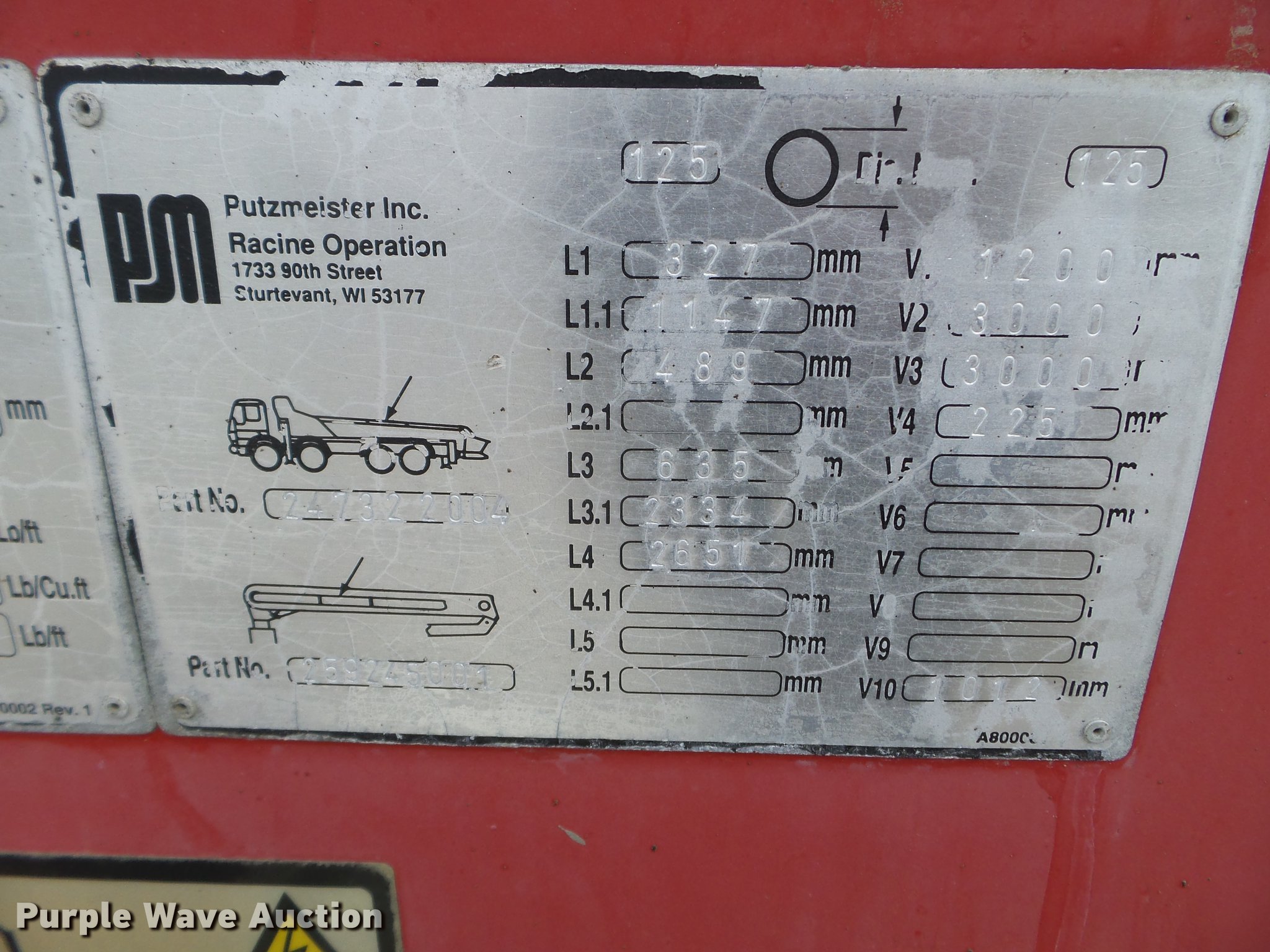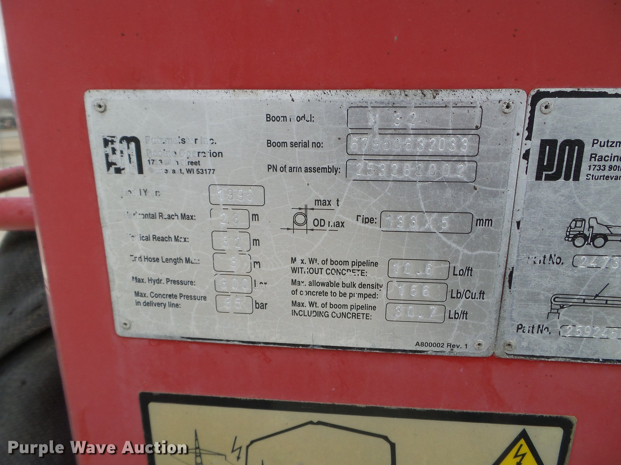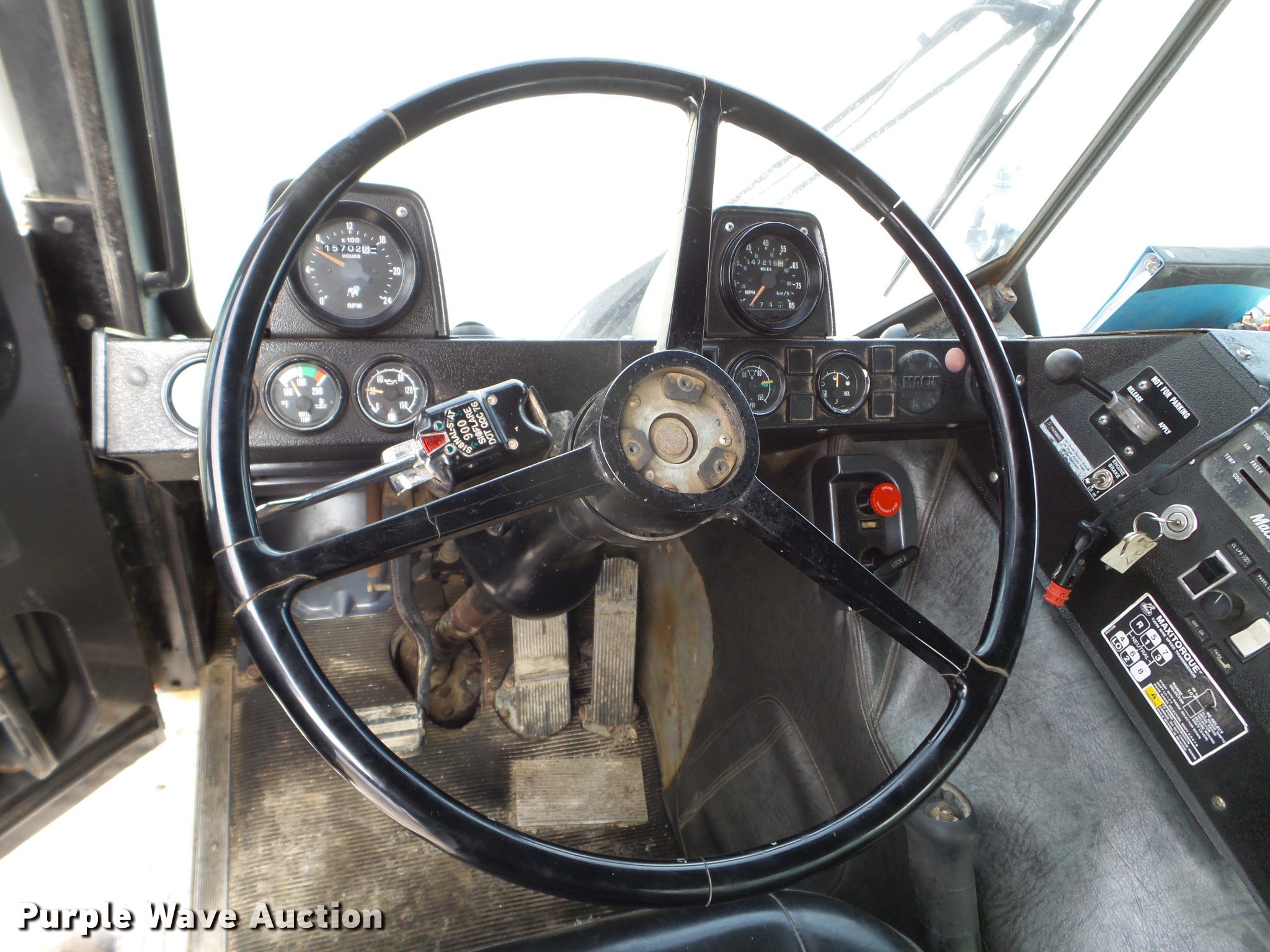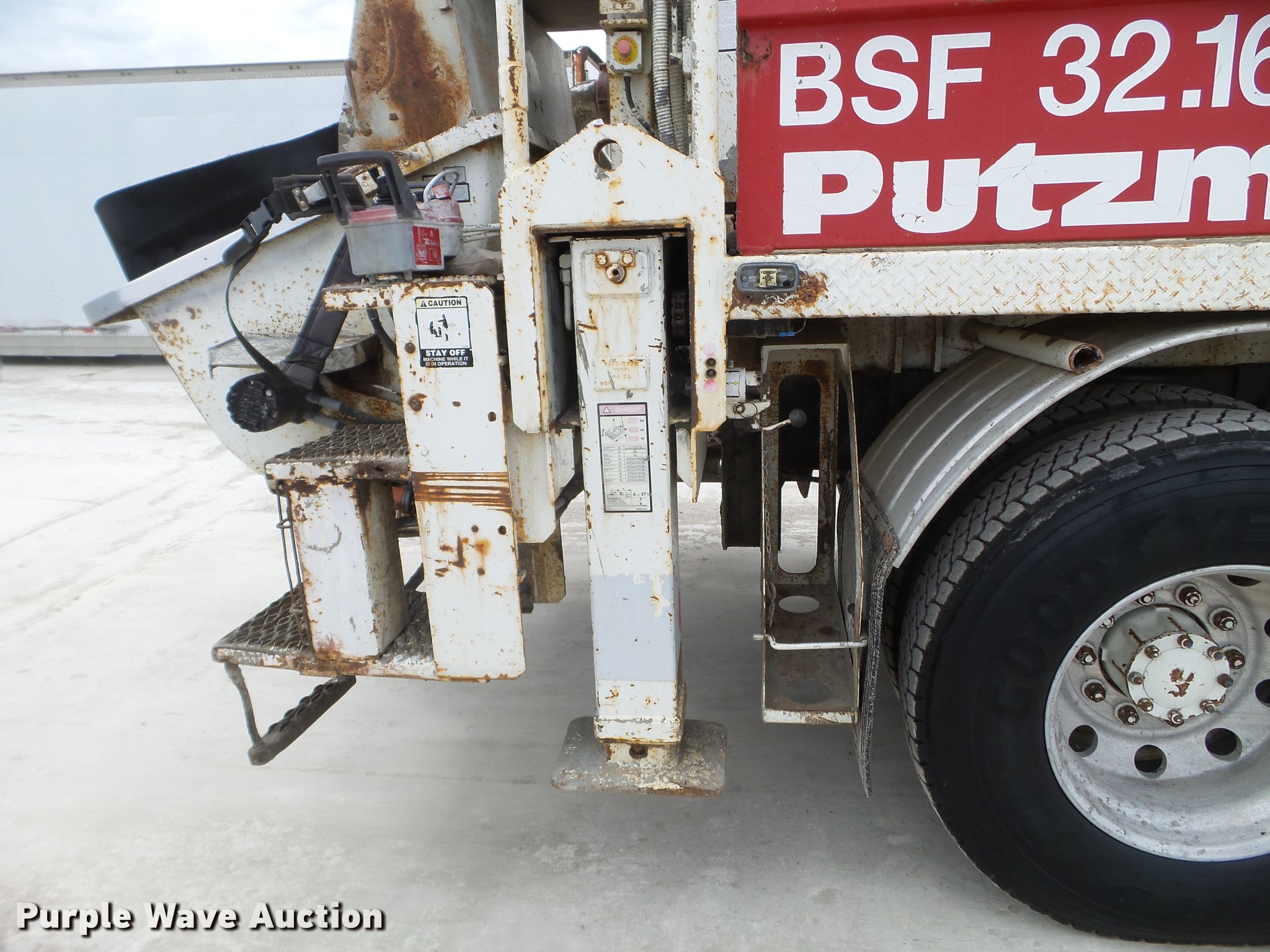 Purple Wave is selling a used Ready Mix or Pump Truck in South Dakota. This item is a 1996 Mack MR688S pump truck with the following: 447,216 miles on odometer, 15,702 hours on meter, Mack 12.0L L6 diesel engine, Nine speed manual transmission, Tandem axle, Air lift tag axle, Inter-axle differential lock, AC and heat, PTO, Putzmeister BSF32.16H concrete pump bed, Model M32 boom, 6" diameter discharge pipe, Roller fold boom, 150 yph output, Remote, Serial 67960632033, (4) stabilizers, Single fuel tank, Walking beam suspension, Air brakes, 425/85R22.5 front tires, 255/70R22.5 tag axle tires, 11R22.5 rear tires, Pump needs resealed