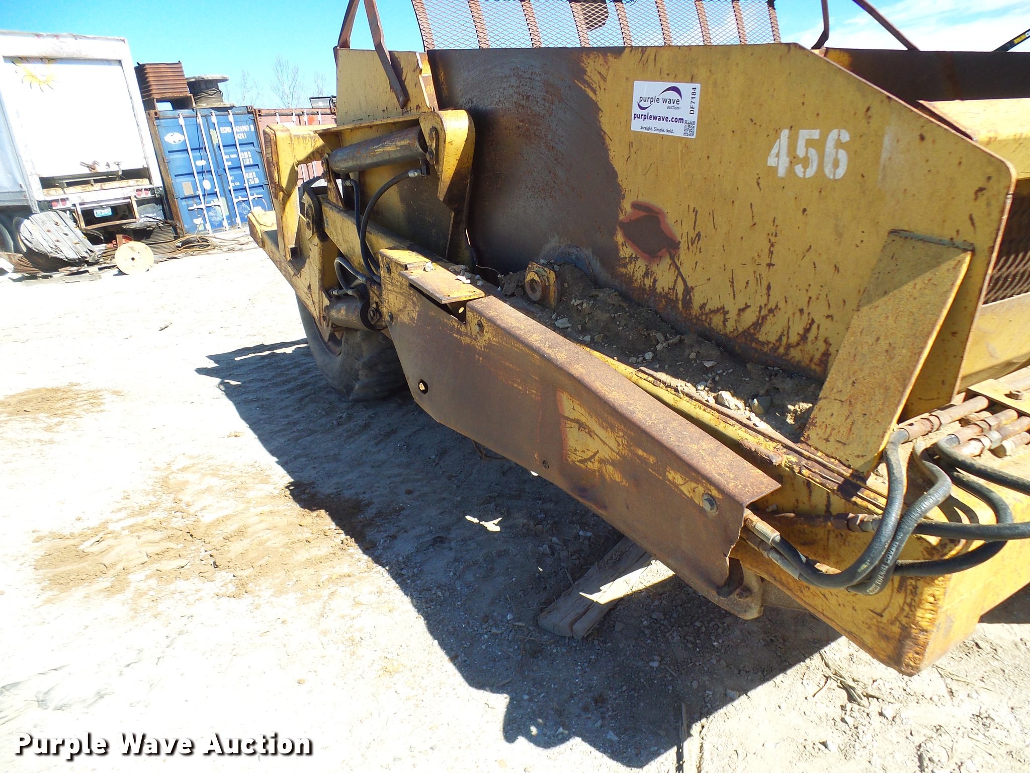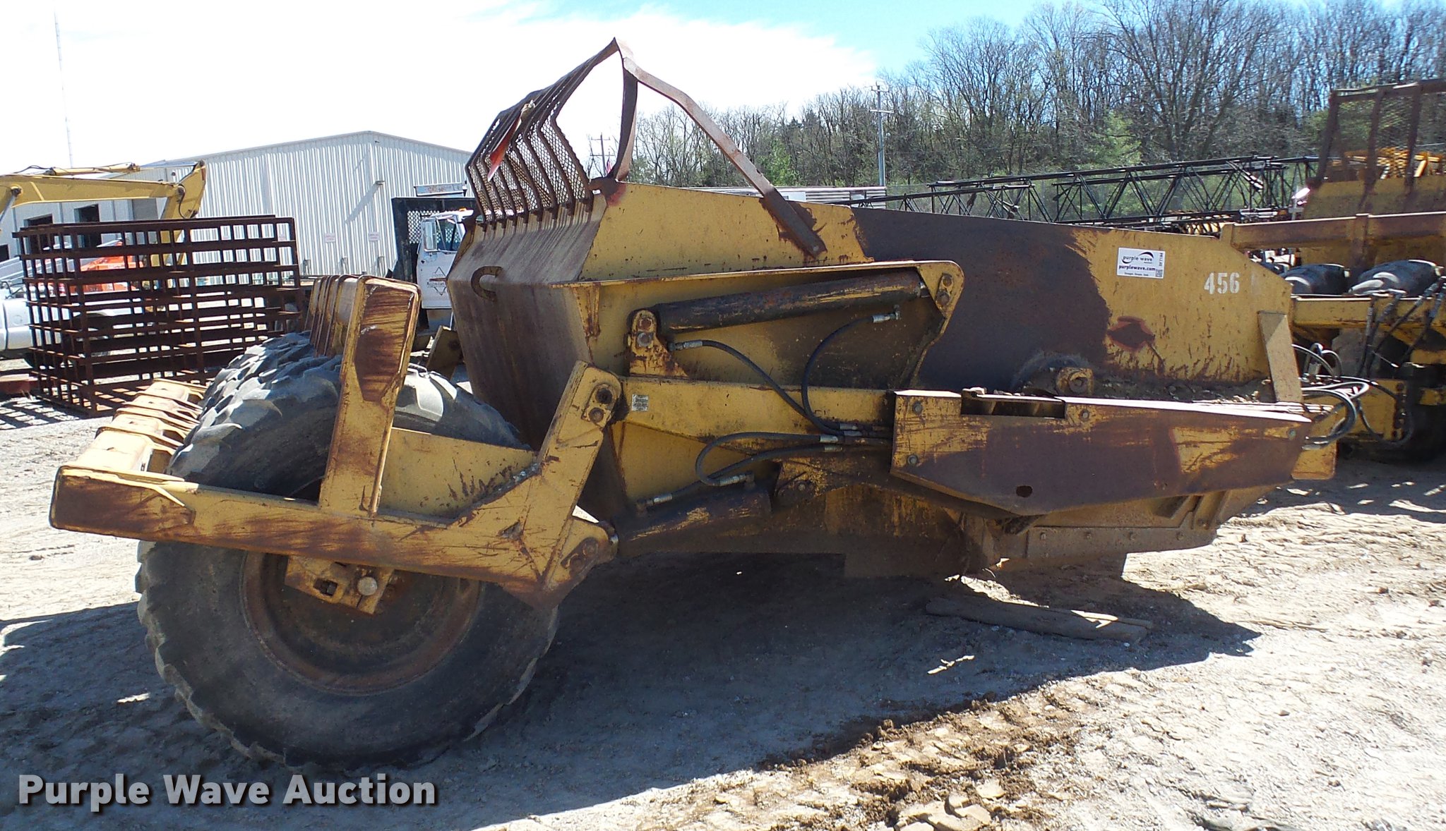 Purple Wave is selling a used Pull Type Scraper in Missouri. This item is a Reynolds 14C scraper with the following: 10'W, Hydraulic height adjustment, 13.00-24, Serial 039740, Unit# 456