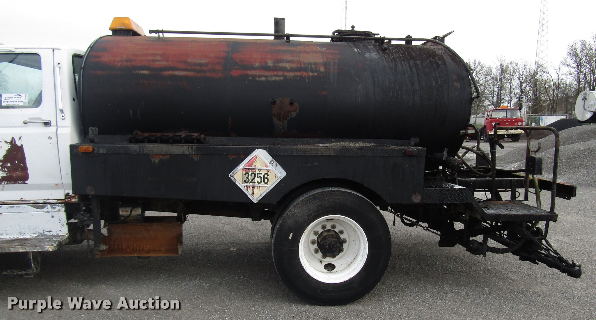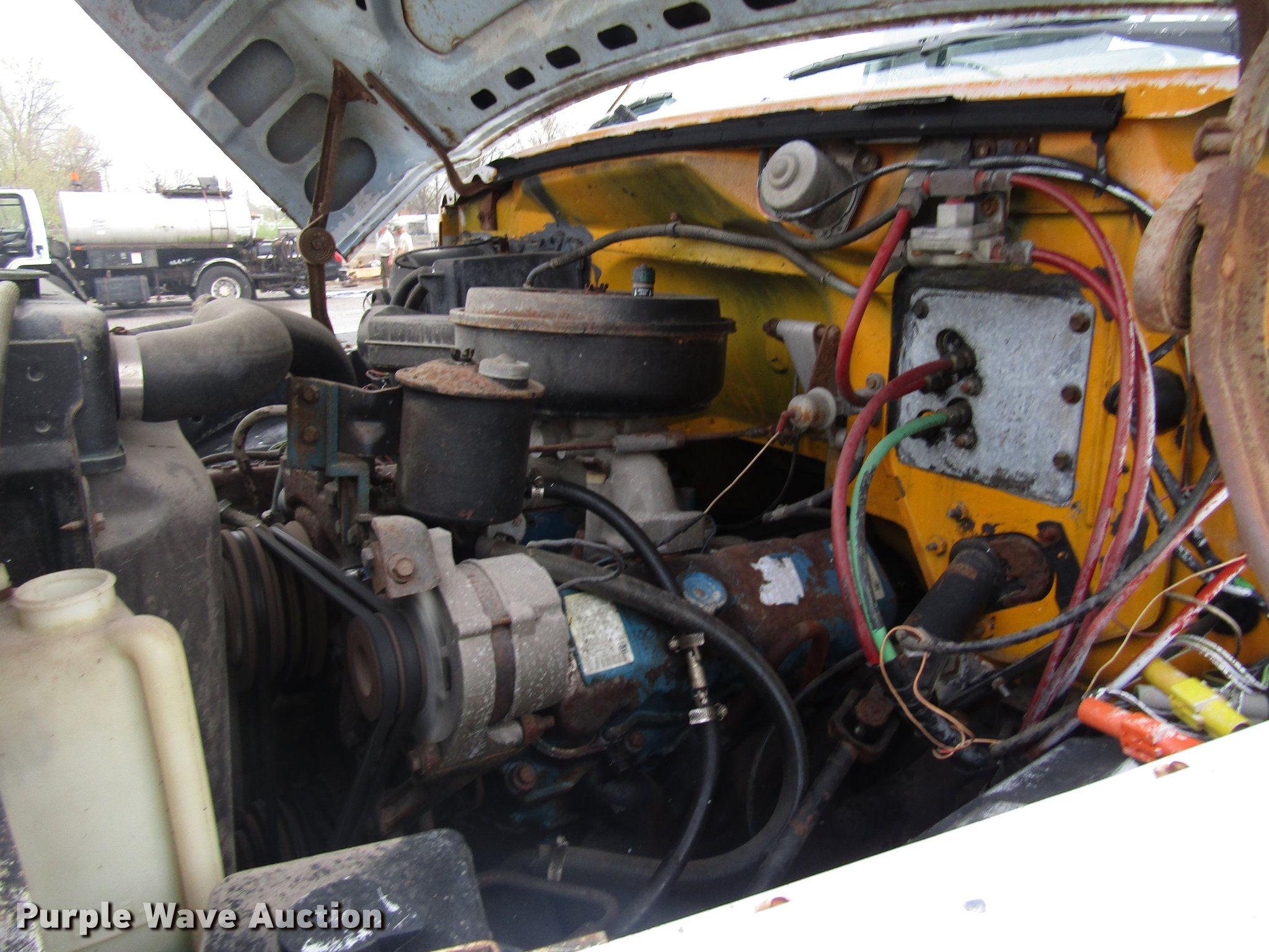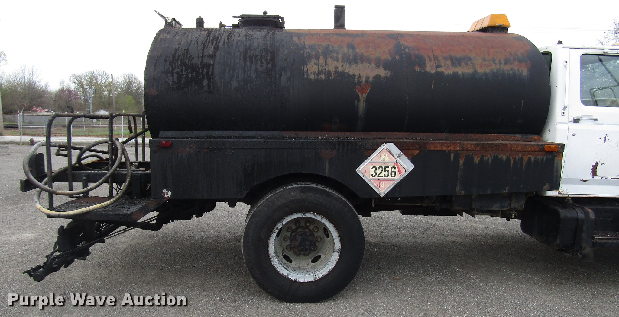 Purple Wave is selling a used Oil Distributor Truck in Illinois. This item is a 1984 Ford B700 oil distribution truck with the following: 32,099 miles on odometer, Detroit Diesel 8.2L V8 diesel engine, Five speed manual transmission, Single axle, Heat, PTO, Beacon light, Etnyre oil distributor bed, 13.5'L, 1,800 gallon capacity, 10' spray boom width, (30) nozzles, Spray wand, Single fuel tank, 154" wheelbase, Spring suspension, Air brakes, 10.00R20 tires, Battery dead, Burners missing