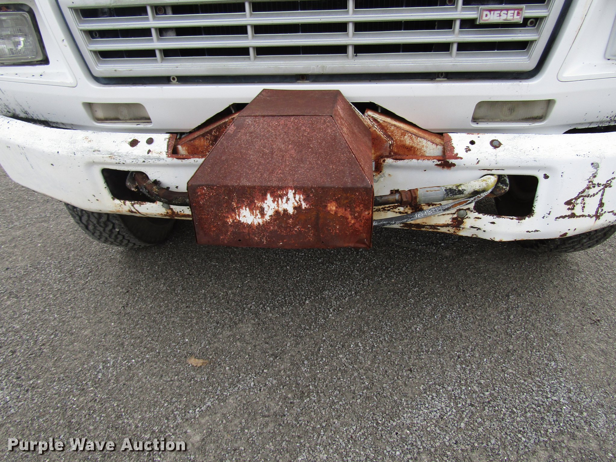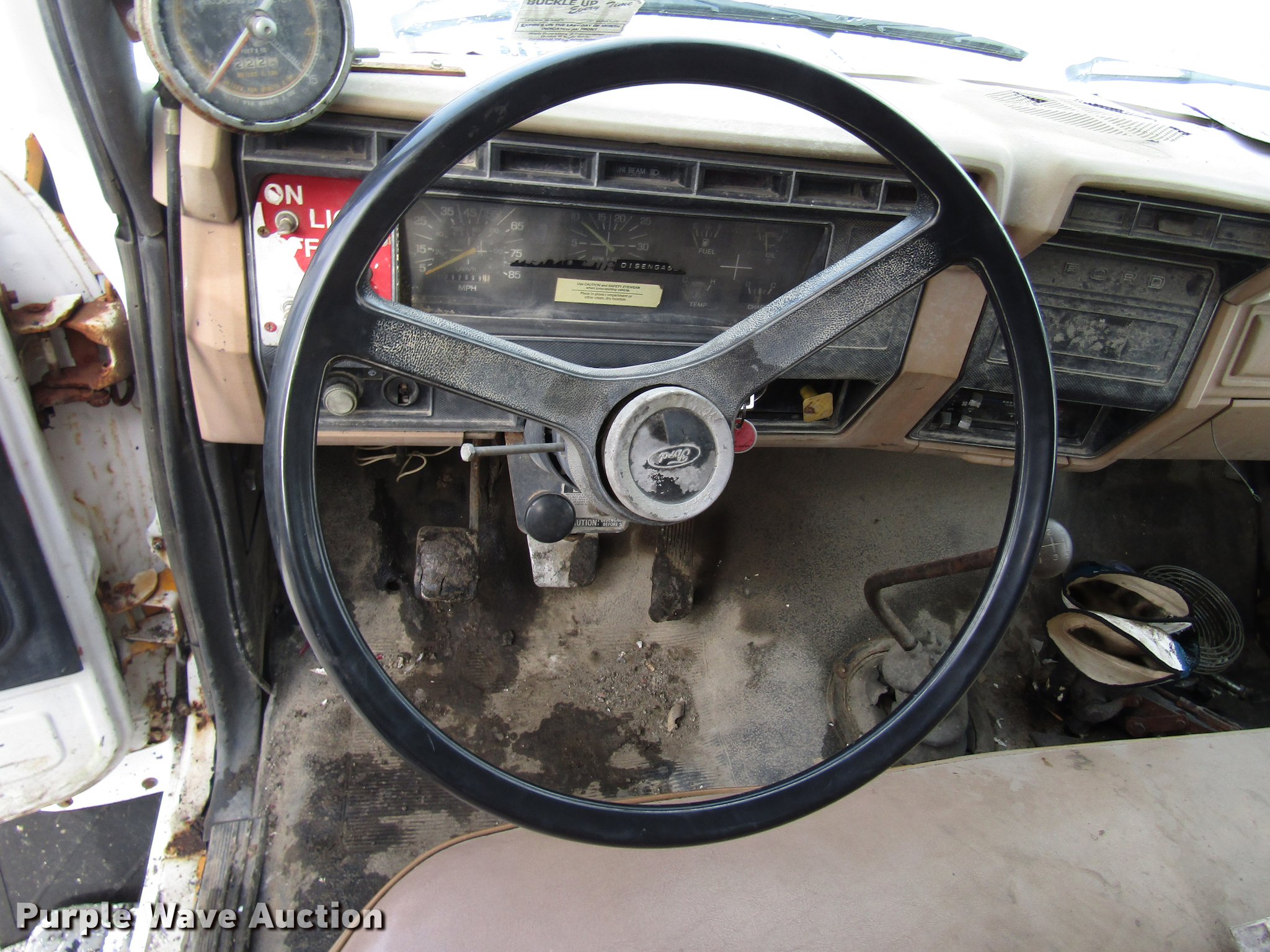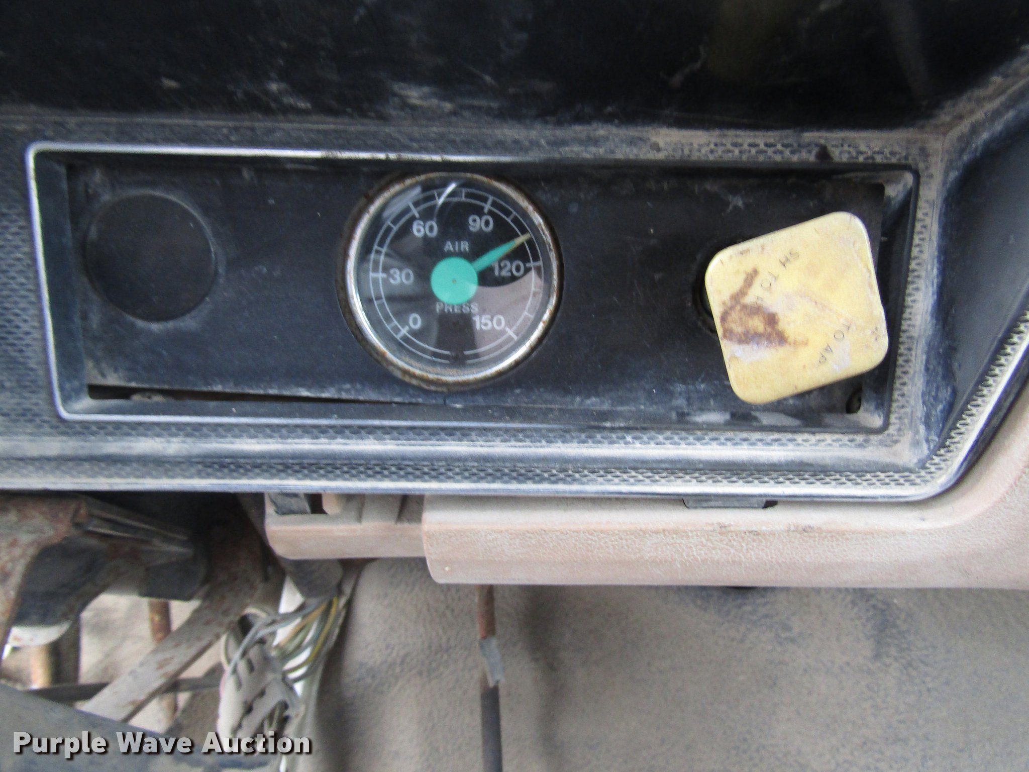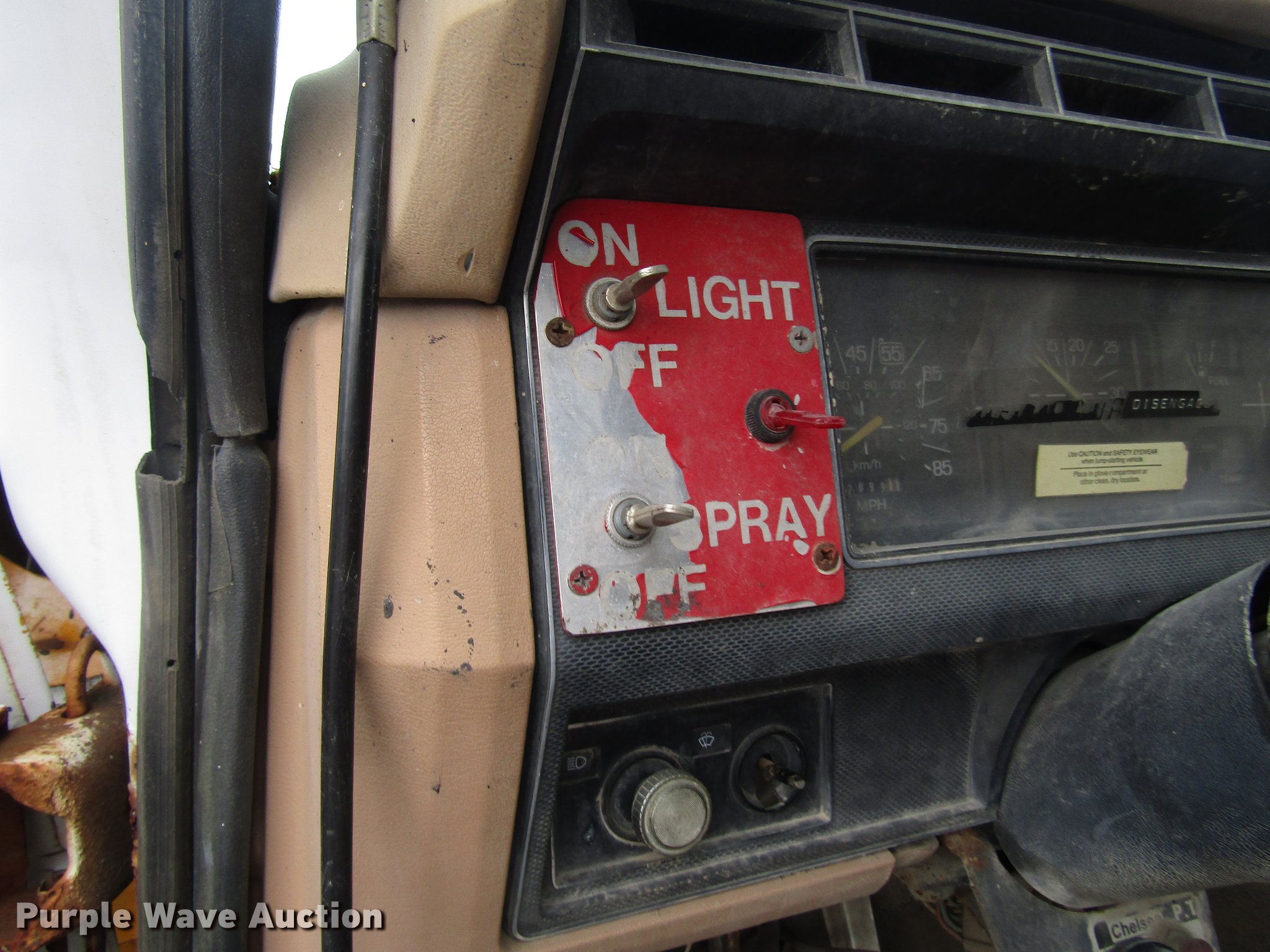 Purple Wave is selling a used Oil Distributor Truck in Illinois. This item is a 1984 Ford B700 oil distribution truck with the following: 32,099 miles on odometer, Detroit Diesel 8.2L V8 diesel engine, Five speed manual transmission, Single axle, Heat, PTO, Beacon light, Etnyre oil distributor bed, 13.5'L, 1,800 gallon capacity, 10' spray boom width, (30) nozzles, Spray wand, Single fuel tank, 154" wheelbase, Spring suspension, Air brakes, 10.00R20 tires, Battery dead, Burners missing