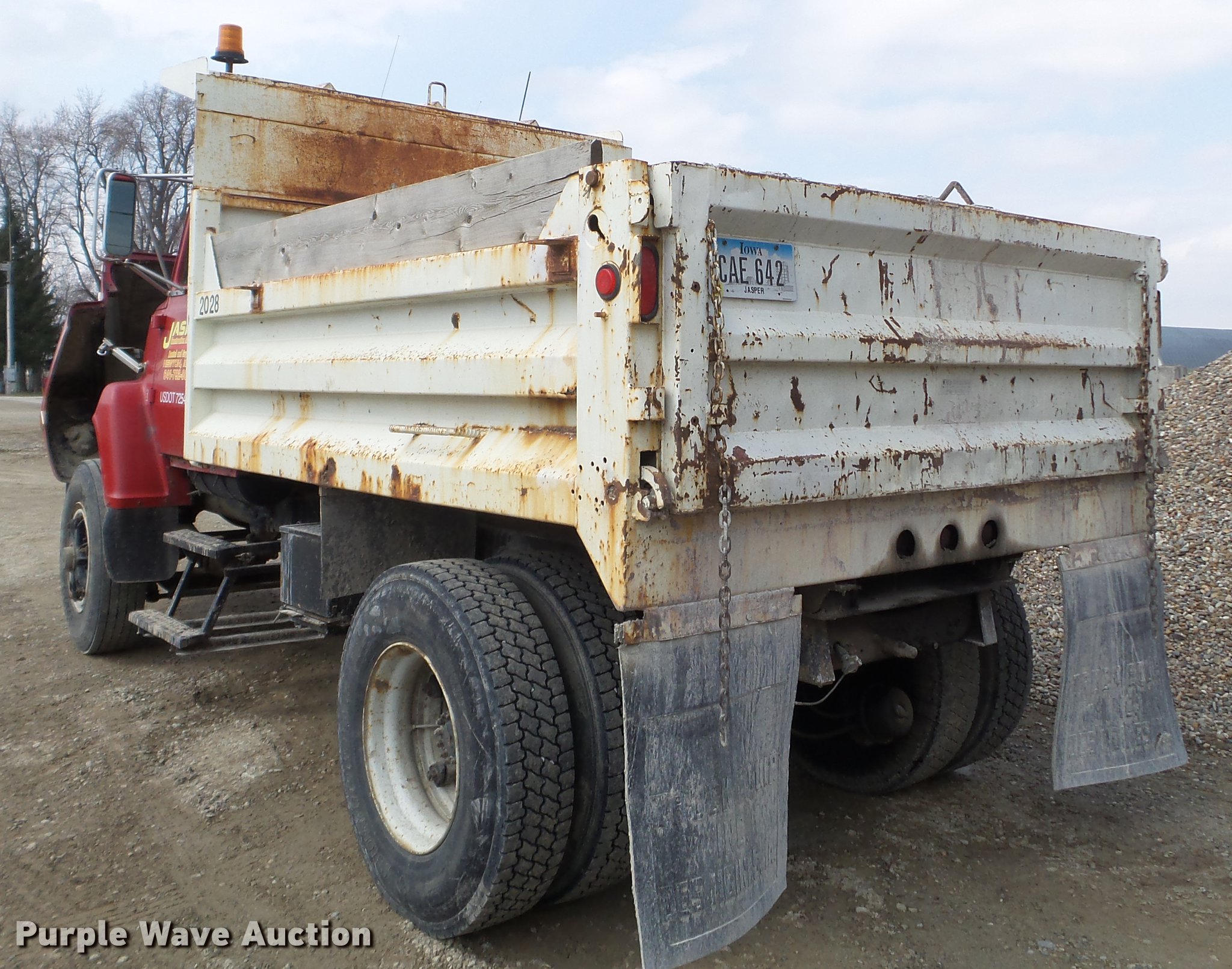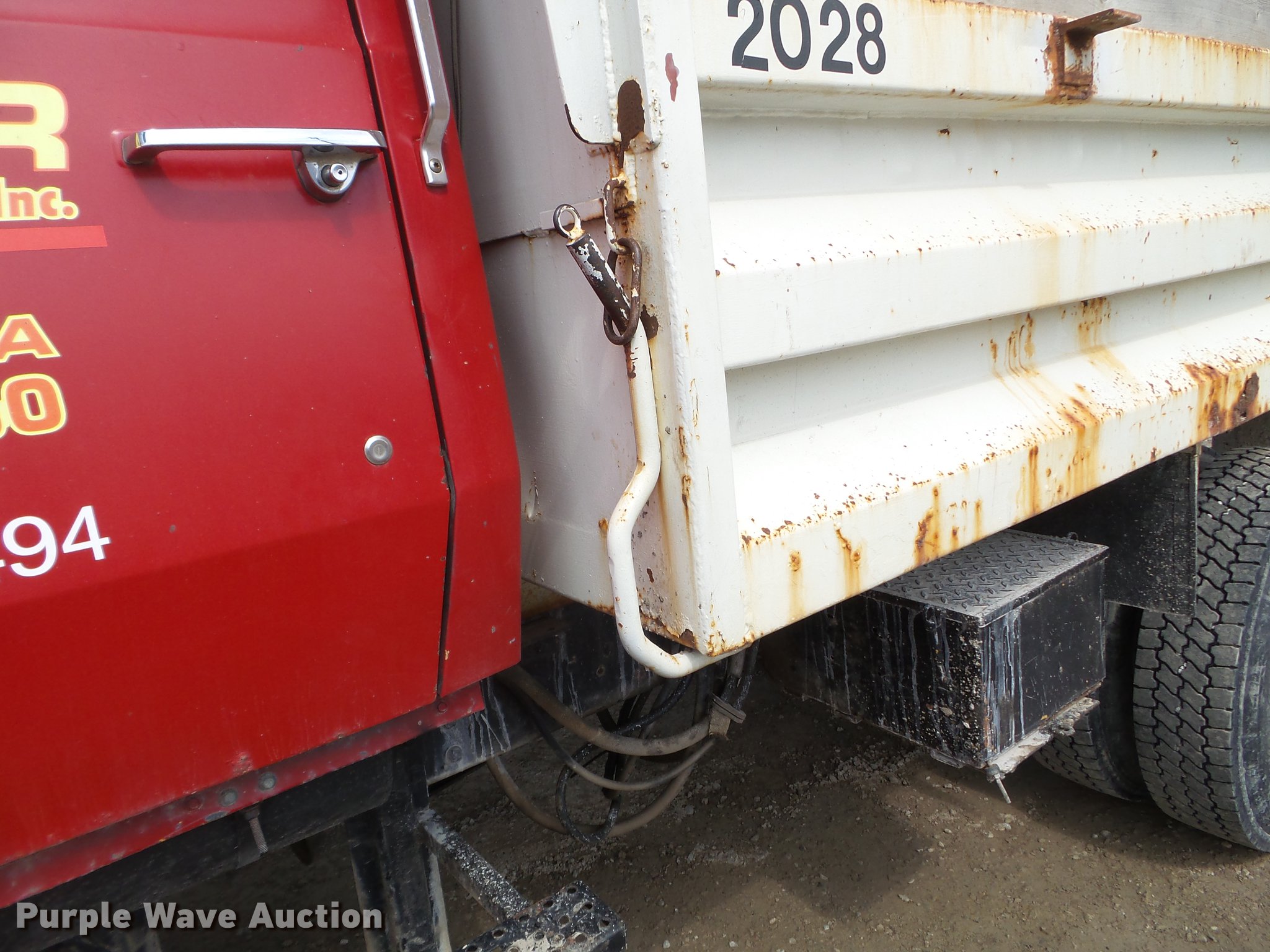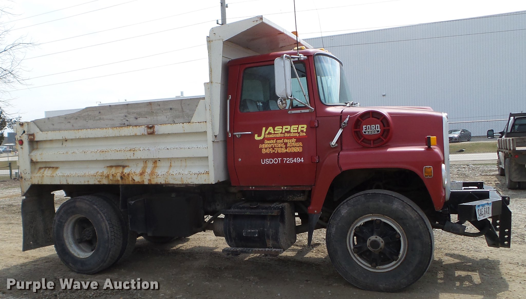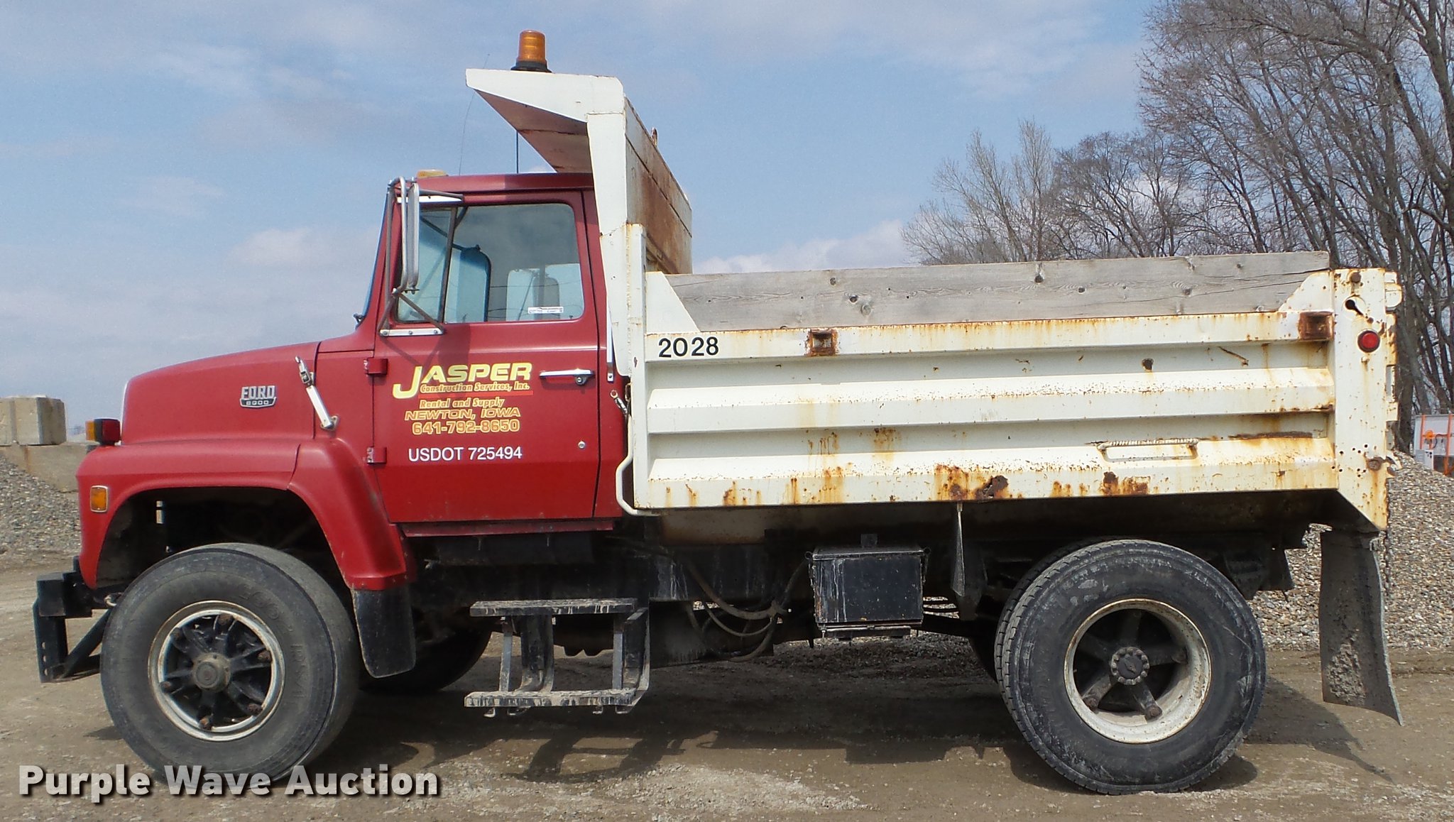 Purple Wave is selling a used Construction Dump Truck in Iowa. This item is a 1984 Ford 8000 dump truck with the following: 248,799 miles on odometer, Caterpillar 3208 10.4L V8 diesel engine, Serial 32Y88542, Five speed manual transmission, Two speed rear end, Heat, AM, Air suspension seat, Front mounted PTO, 10'L x 96"W steel dump bed, 28" side height, 10" side board height, Single ram hoist, Manual operated end gate, Rear hydraulic remotes, Single fuel tank, Spring suspension, Air brakes, 11R22.5 tires