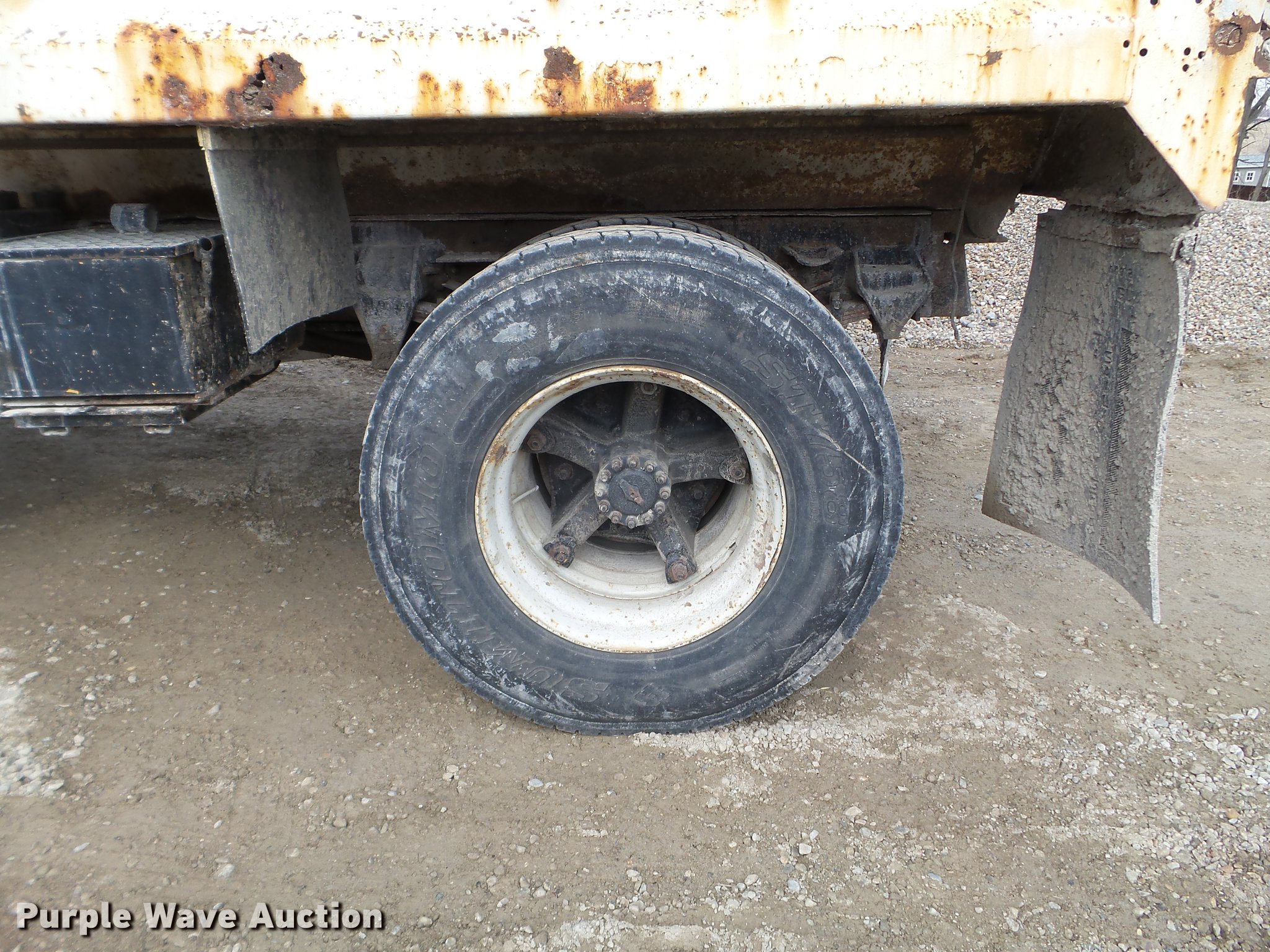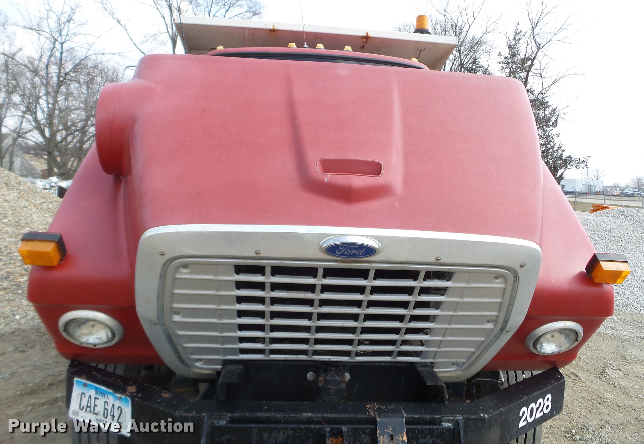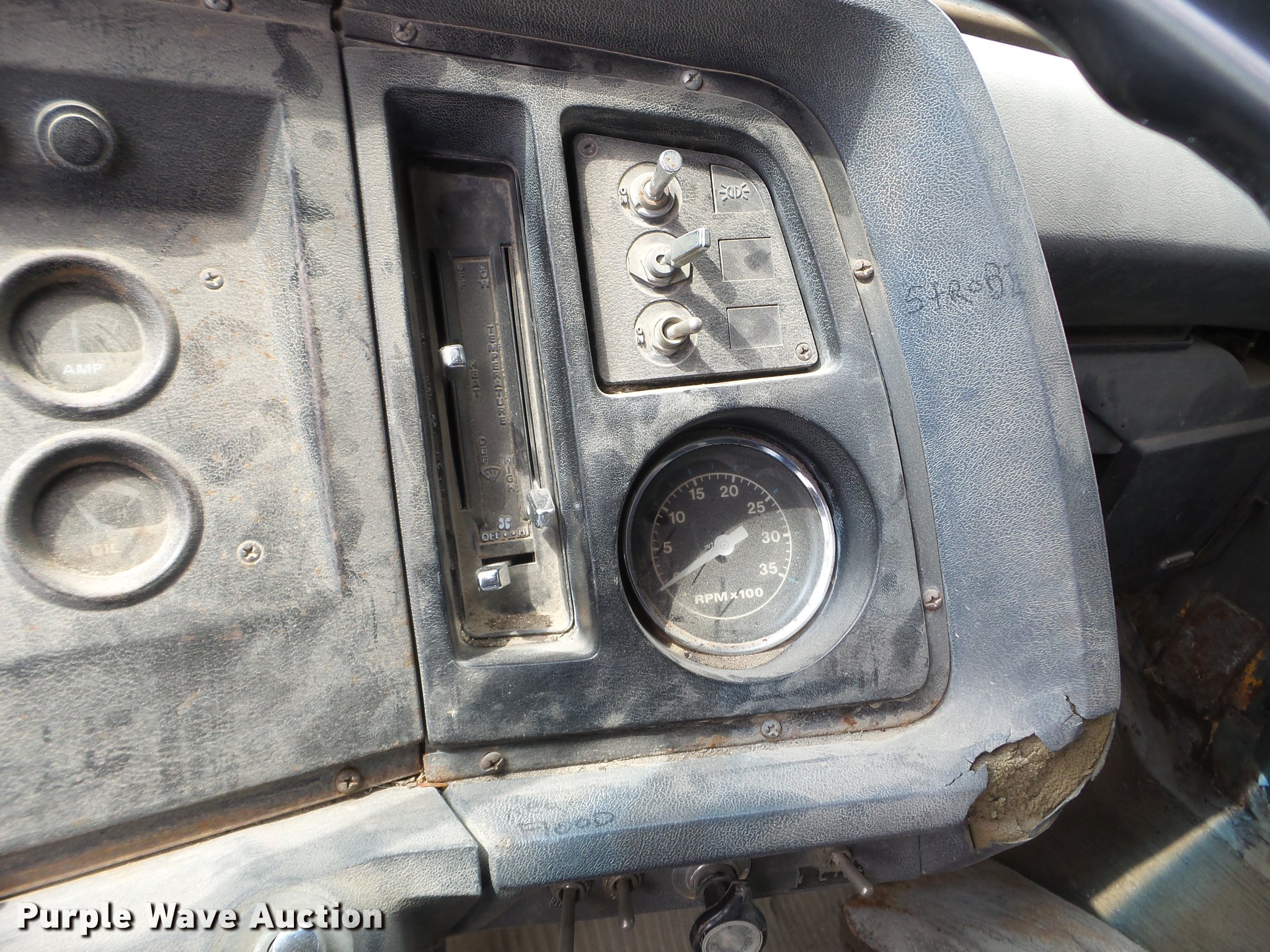 1984 Ford 8000 dump truck. 248,799 miles on odometer, Caterpillar 3208 10.4L V8 diesel engine Serial 32Y88542, Five speed manual transmission, Two speed rear end, Heat, AM, Air suspension seat, Front mounted PTO, 10'L x 96"W steel dump bed 28" side height, 10" side board height, Single ram hoist, Manual operated end gate, Rear hydraulic remotes, Single fuel tank, Spring suspension, Air brakes, 11R22.5 tires. Iowa title. 1FDXR80U1EVA39854. Jasper Construction Services. 928 N 19th Ave E. Newton, IA 50208