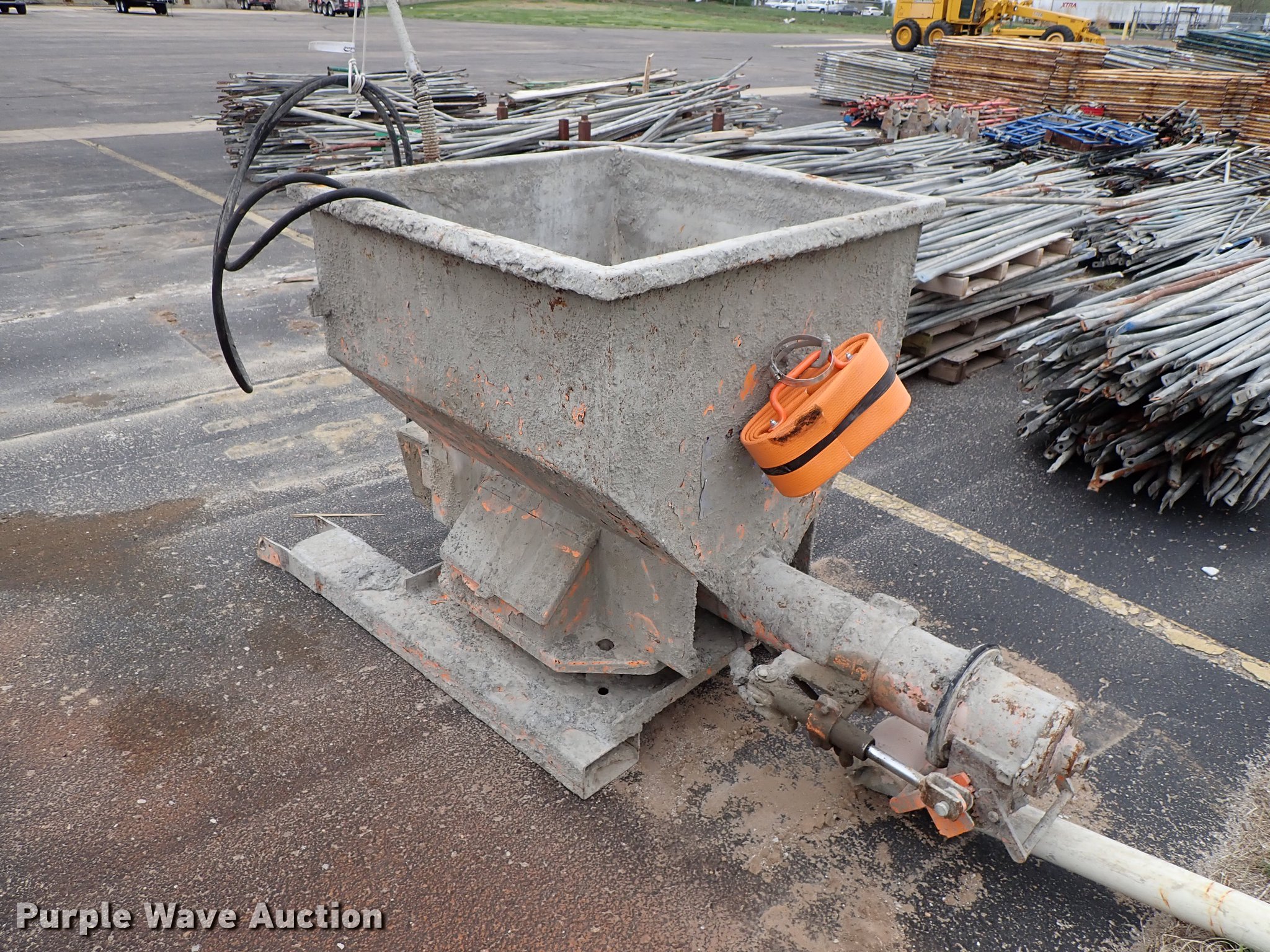 Purple Wave is selling a used Concrete Dispenser in Kansas. This item is a Grout Hog MW-75 grout pump with the following: 40" x 40" hopper, Forklift pockets