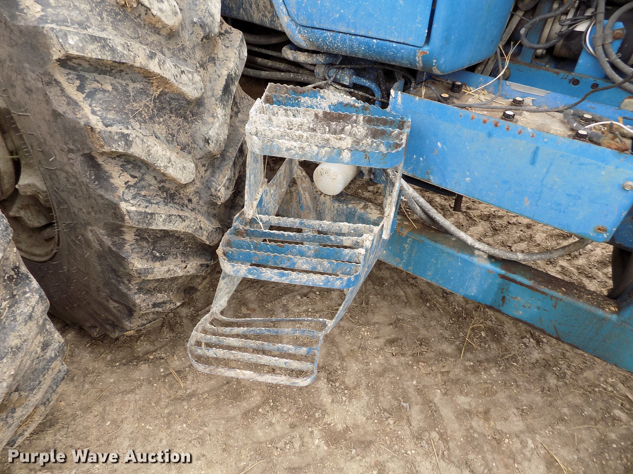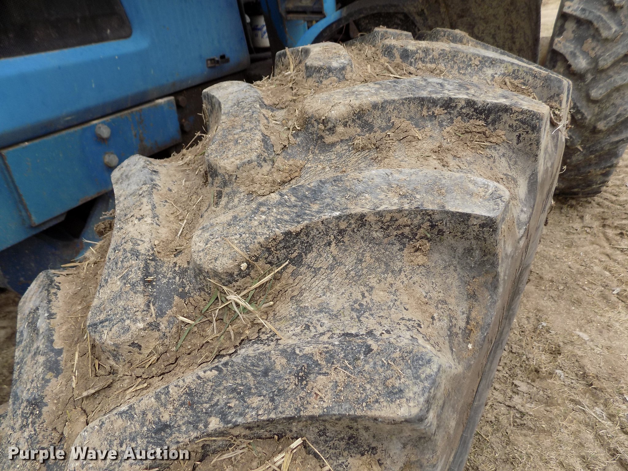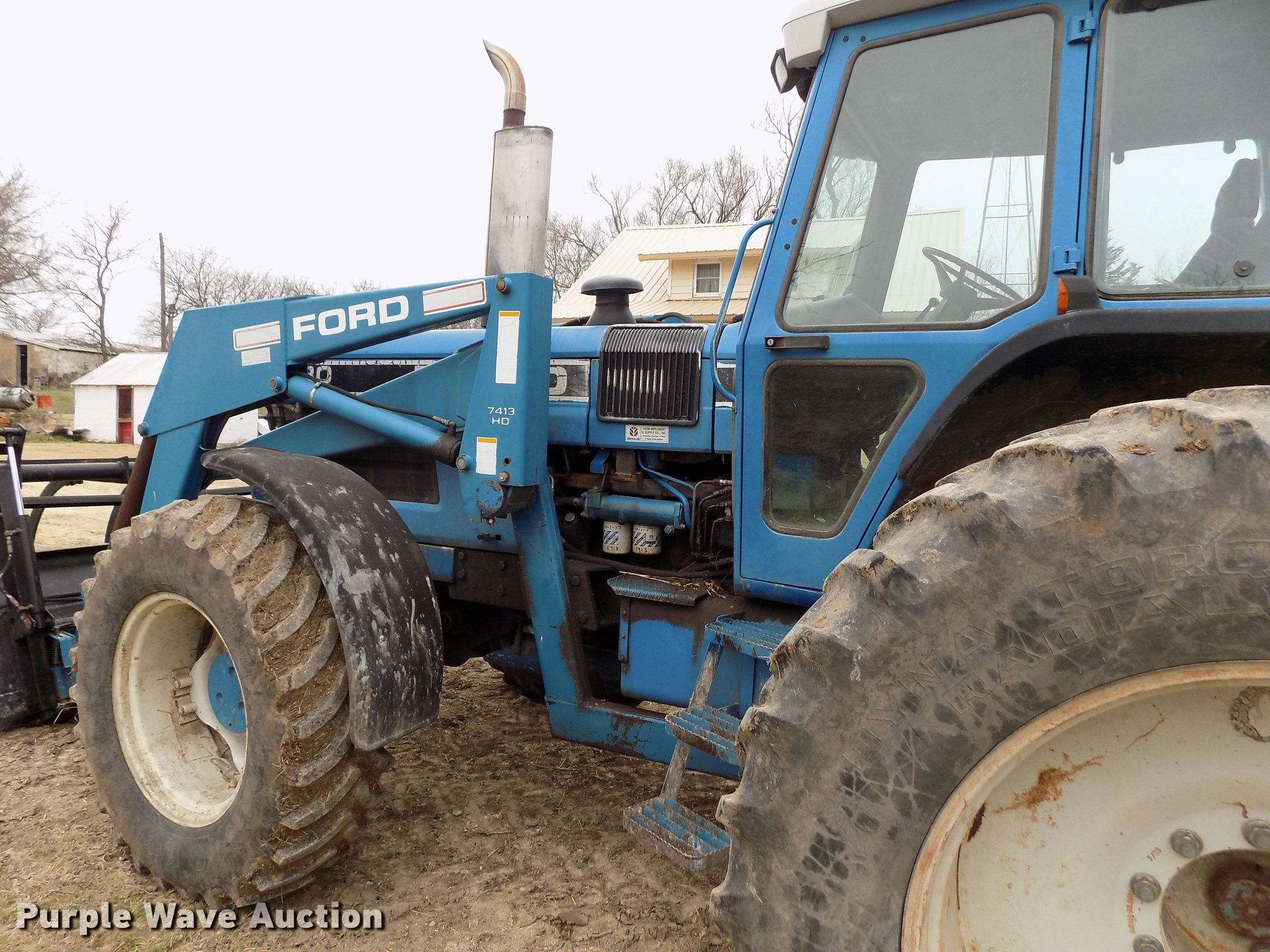 Purple Wave is selling a used Tractor in Kansas. This item is a Ford 8830 MFWD tractor with the following: 6,220 hours on meter, Ford 6.6L six cylinder diesel engine, Serial FNH9673626DS, Powershift transmission, 18F-9R gears, Differential lock, AC and heat, Tilt steering wheel, AM/FM, Suspension seat, Block heater, Ether start, Ford 7413HD loader, 96"W bucket, Grapple, Joystick controls, Three point, Seven pin outlet, 1000 PTO, (3) rear hydraulic remote sets, (5) wheel weights, 14.9R28 front tires, 18.4R38 dual rear tires