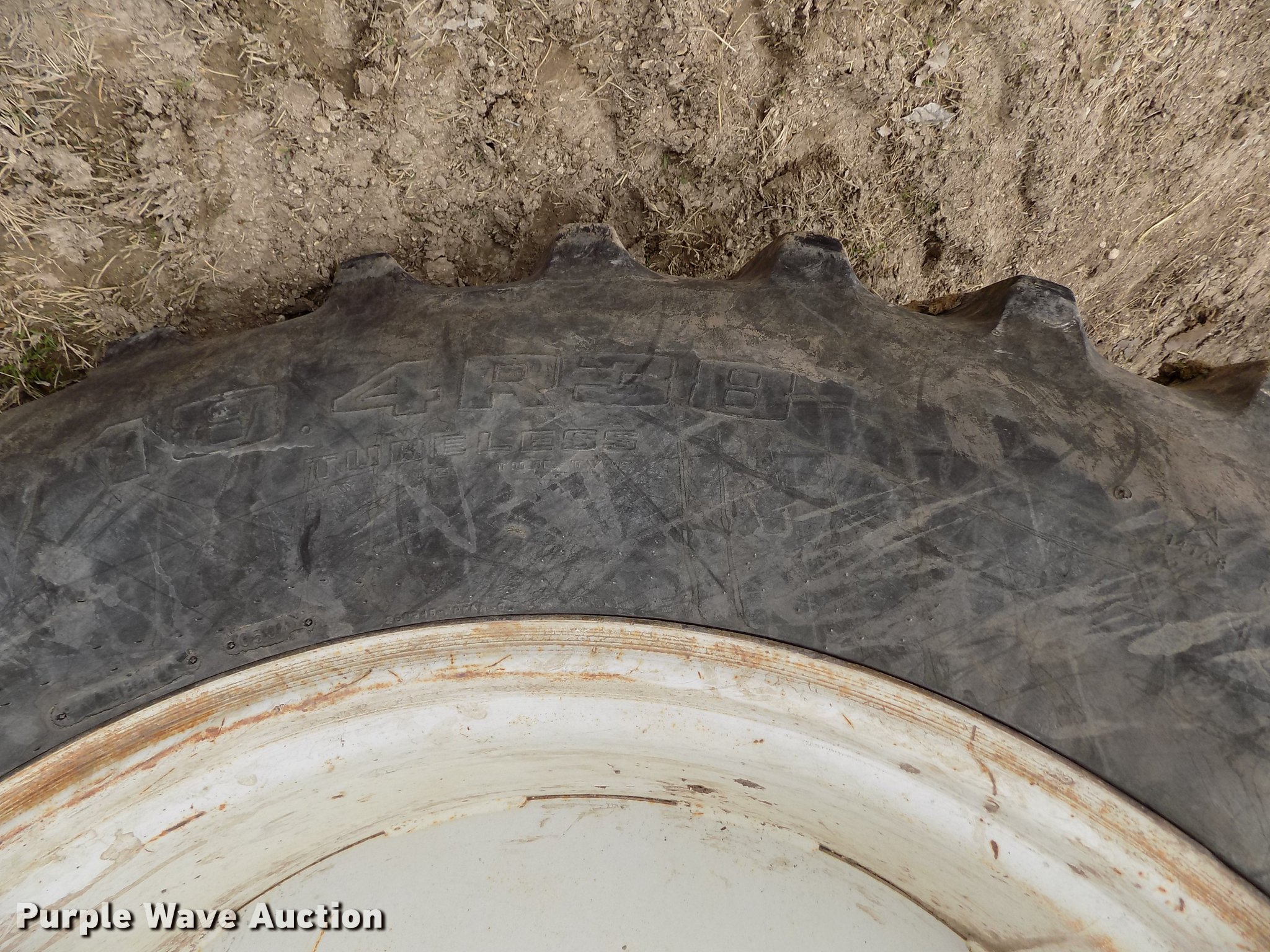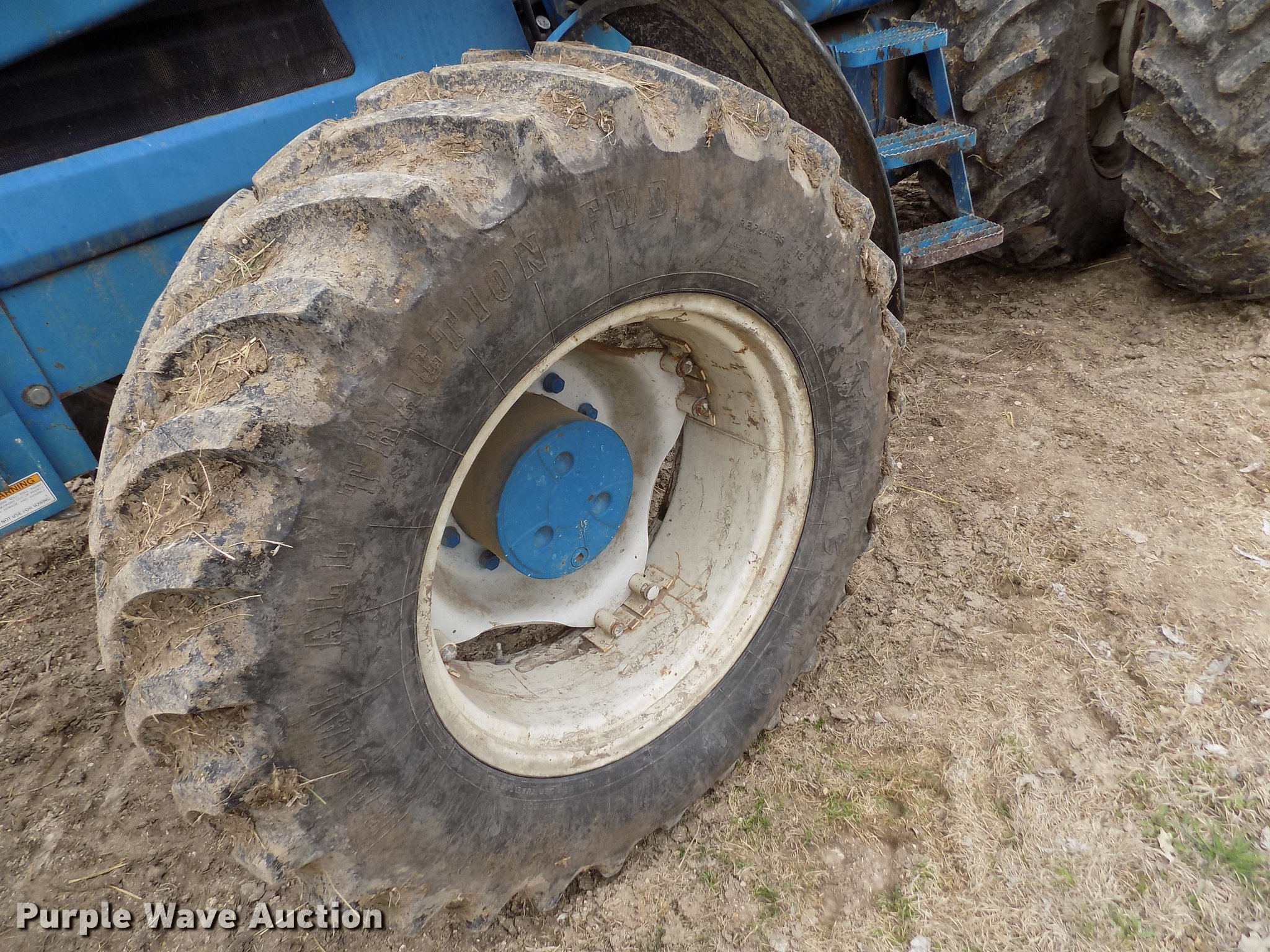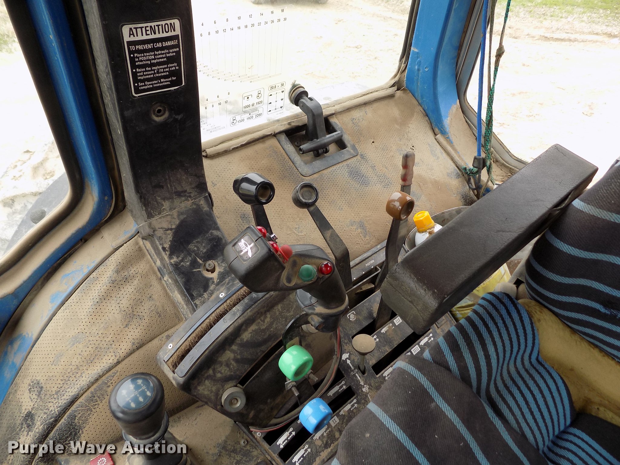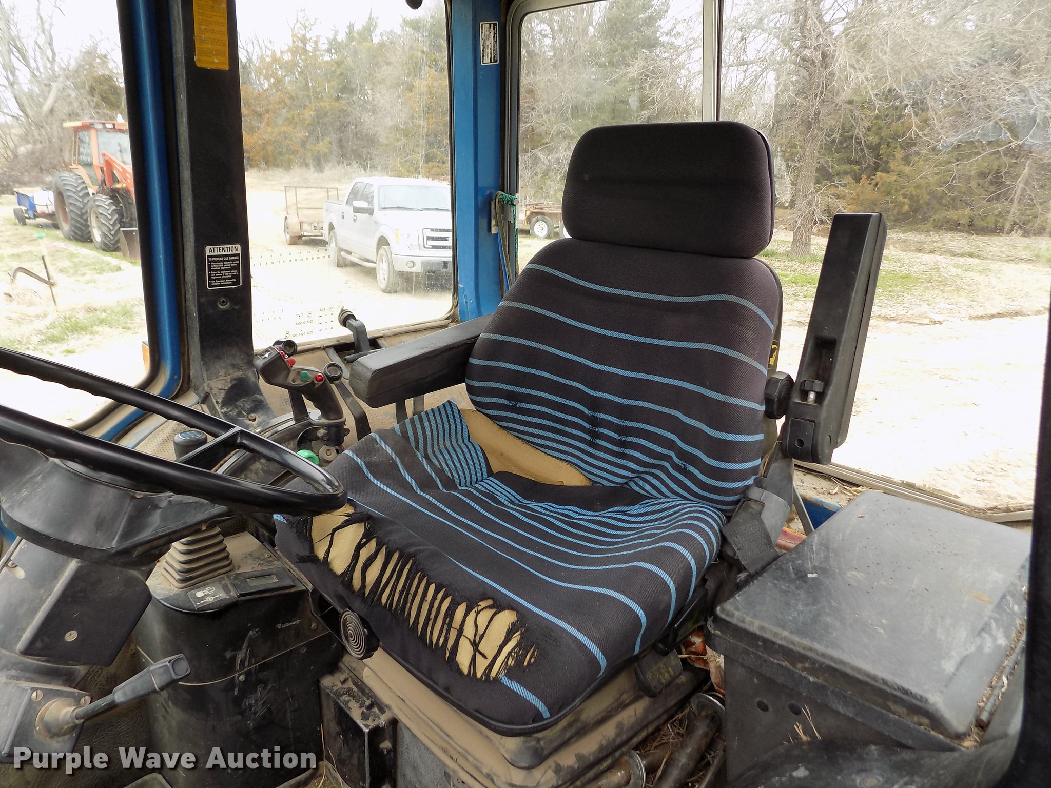 Purple Wave is selling a used Tractor in Kansas. This item is a Ford 8830 MFWD tractor with the following: 6,220 hours on meter, Ford 6.6L six cylinder diesel engine, Serial FNH9673626DS, Powershift transmission, 18F-9R gears, Differential lock, AC and heat, Tilt steering wheel, AM/FM, Suspension seat, Block heater, Ether start, Ford 7413HD loader, 96"W bucket, Grapple, Joystick controls, Three point, Seven pin outlet, 1000 PTO, (3) rear hydraulic remote sets, (5) wheel weights, 14.9R28 front tires, 18.4R38 dual rear tires