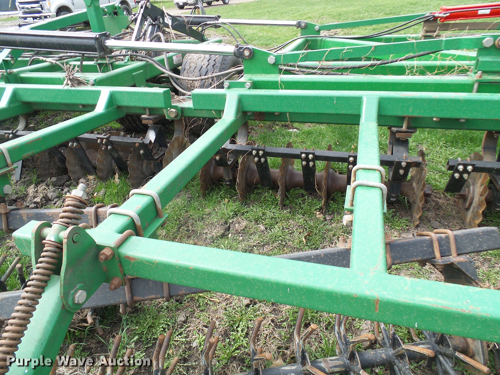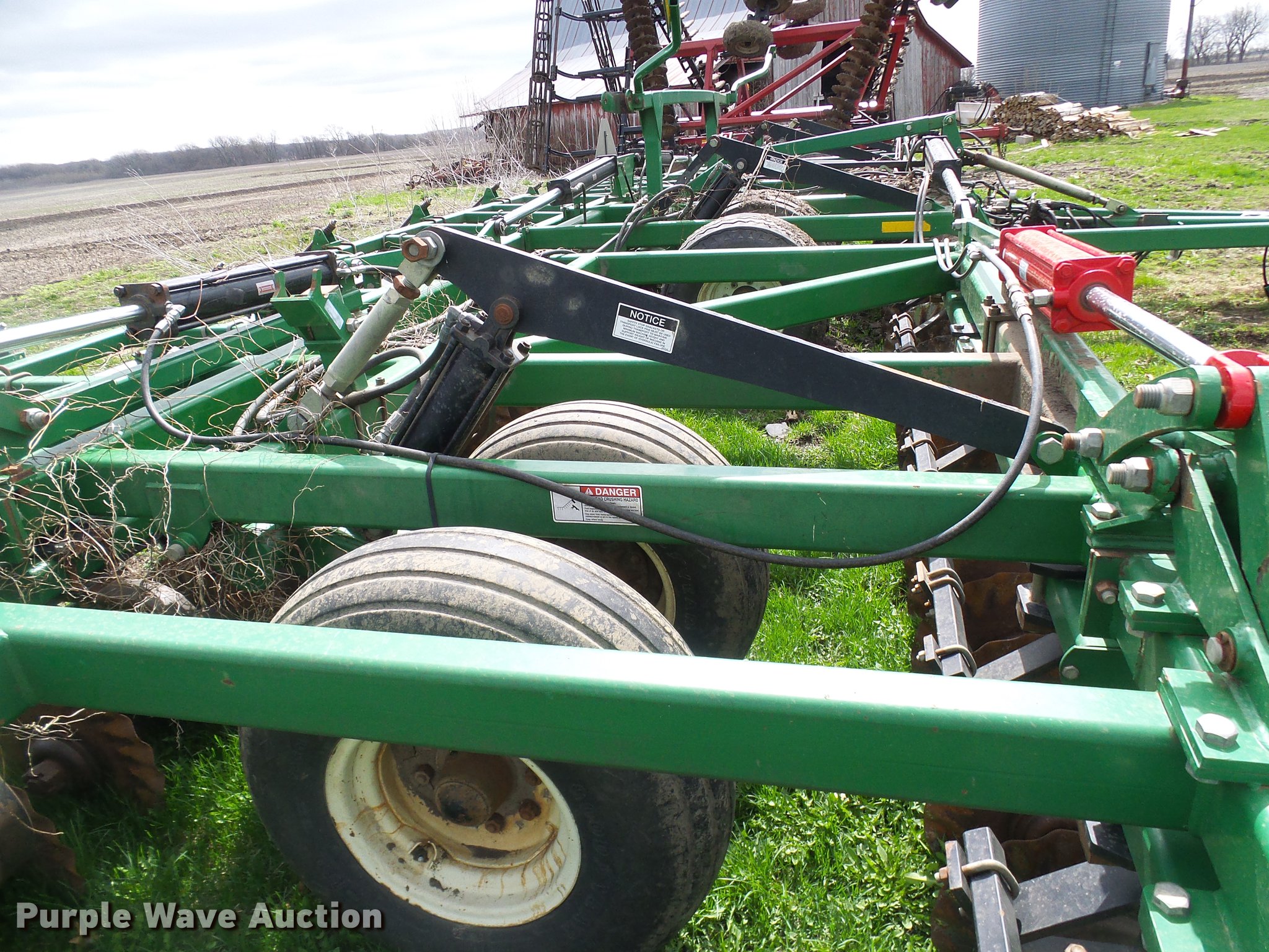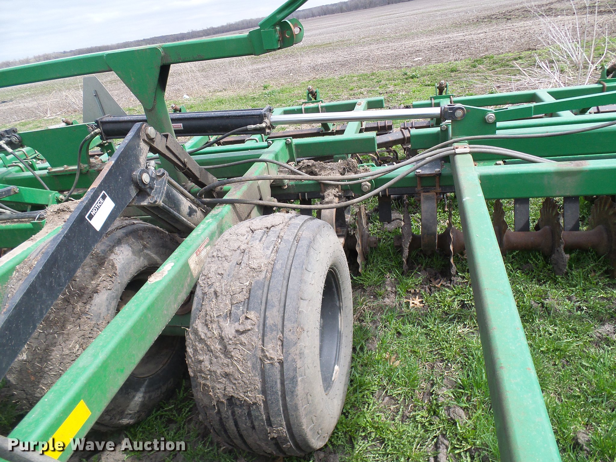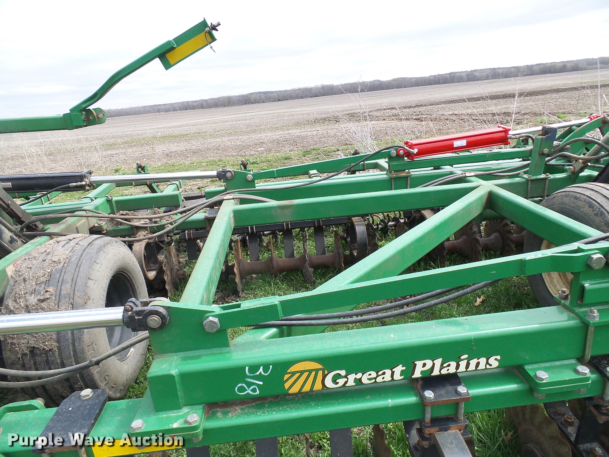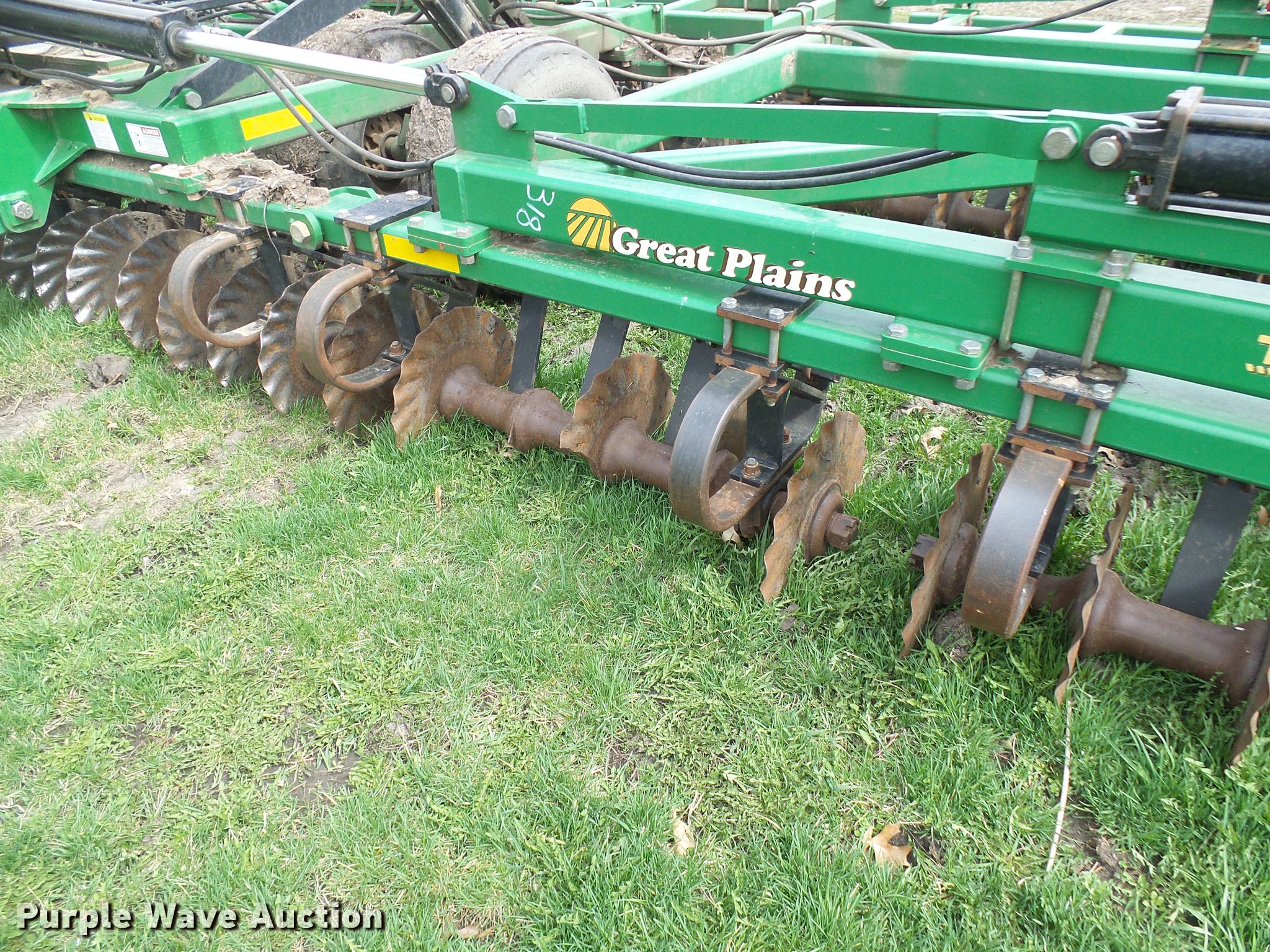 Purple Wave is selling a used Vertical Tillage in Missouri. This item is a 2006 Great Plains Turbo Till 4000TT vertical tillage with the following: 40'W, 10" spacing, Disk scrapers, Hydraulic lift and fold, Pin/clevis hitch, 32x15.50-16.50SL tires, 12.5L-15 tires, One disc missing and one broken, Serial GP-2392NN