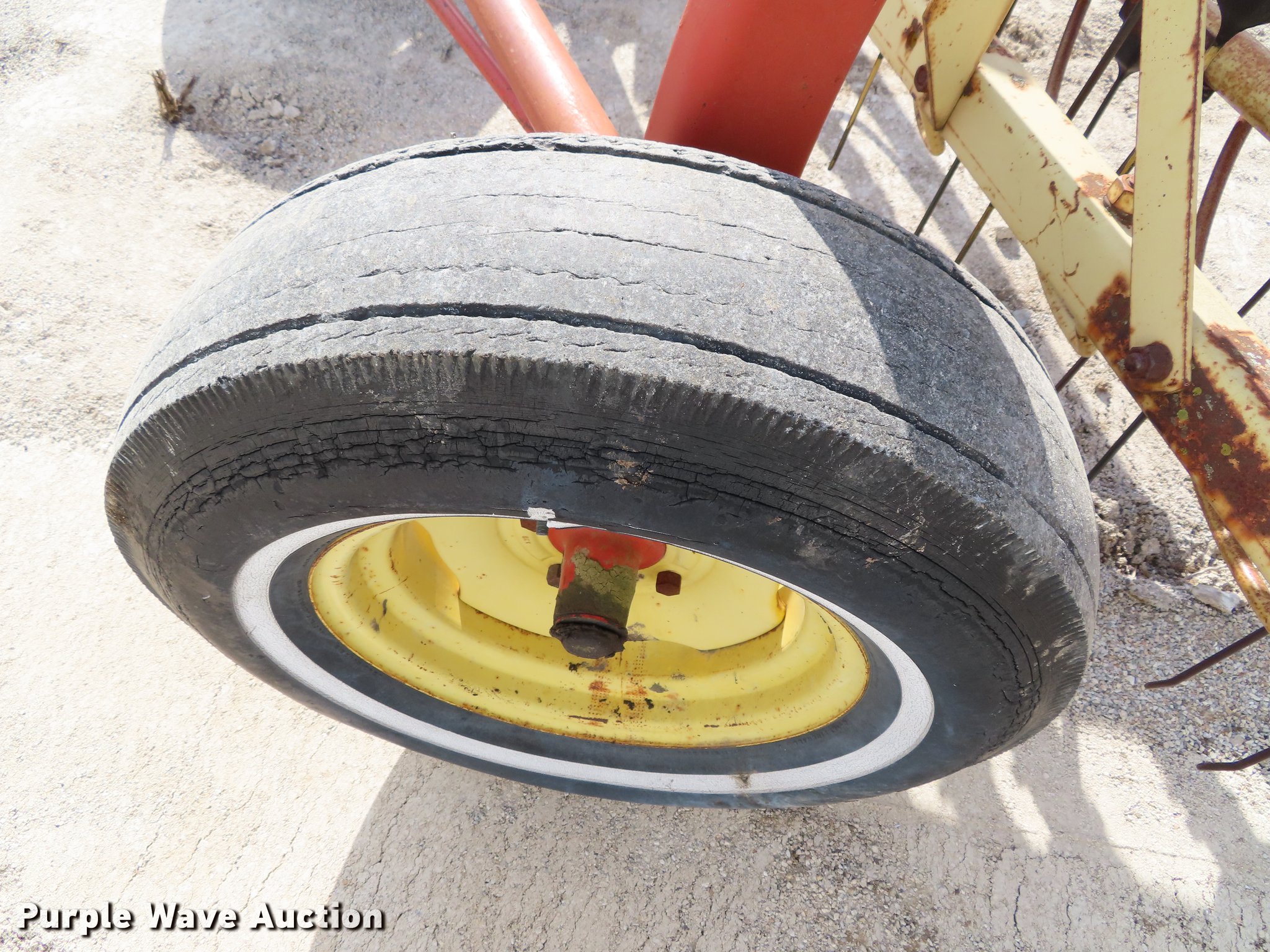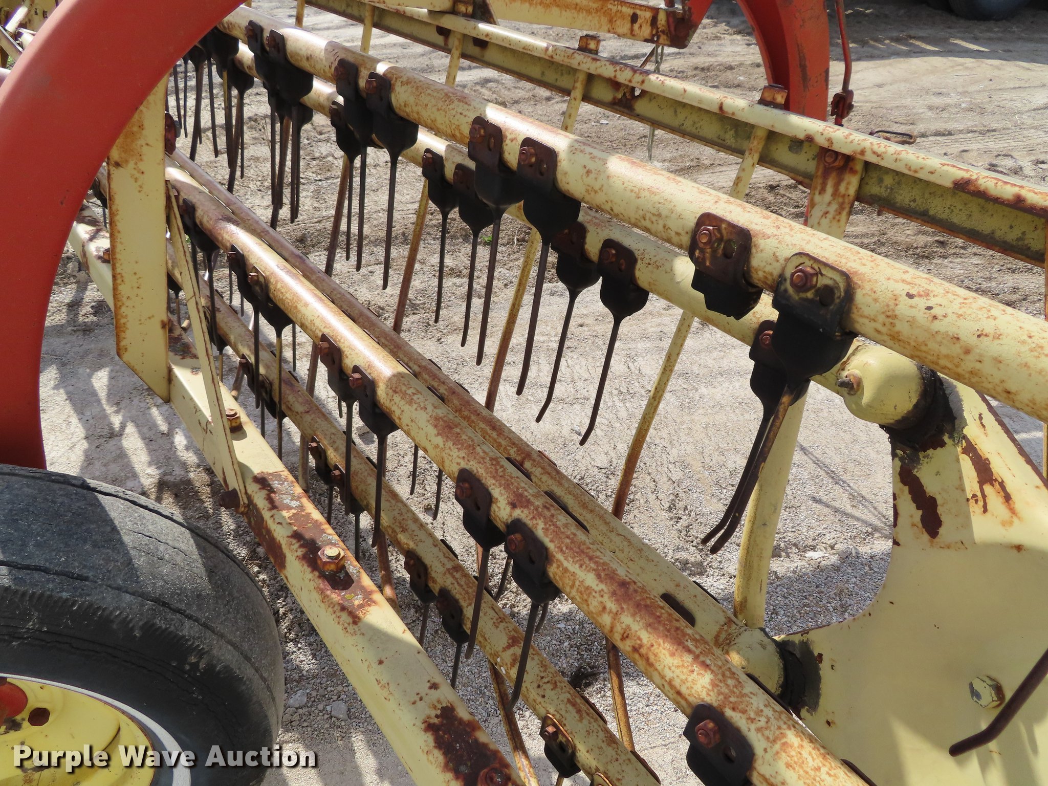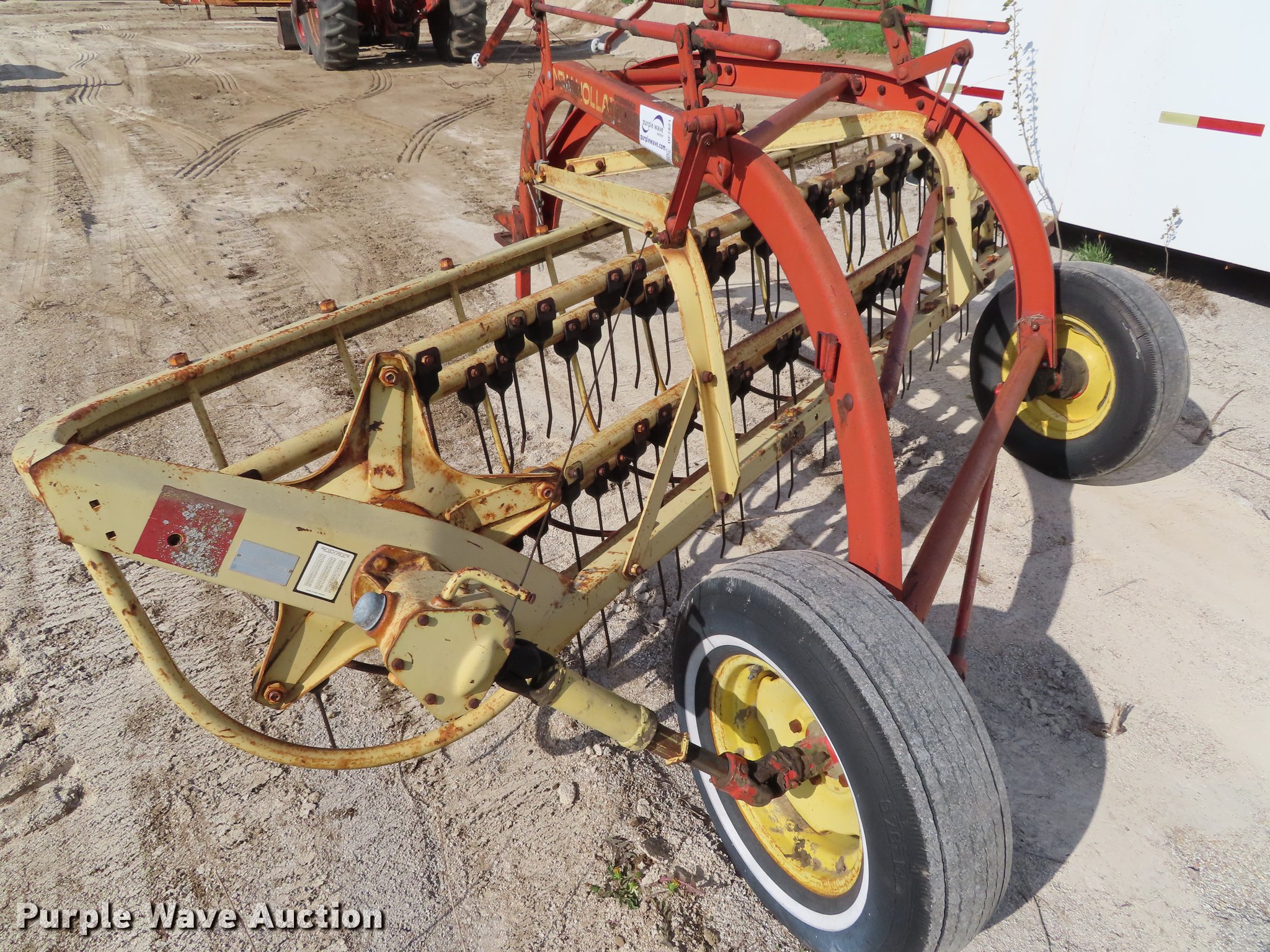 Purple Wave is selling a used Hay Rake in Kansas. This item is a New Holland 285 side delivery hay rake with the following: 14" tires, Serial 390000