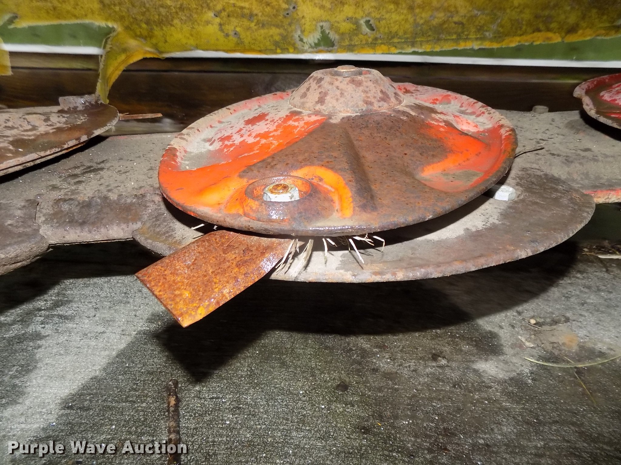 Purple Wave is selling a used Disc or Sickle Mower in Iowa. This item is a New Holland 462 disc mower with the following: 7'W cutting width, 540 PTO, Three point, Vinyl cover torn, Serial U0425