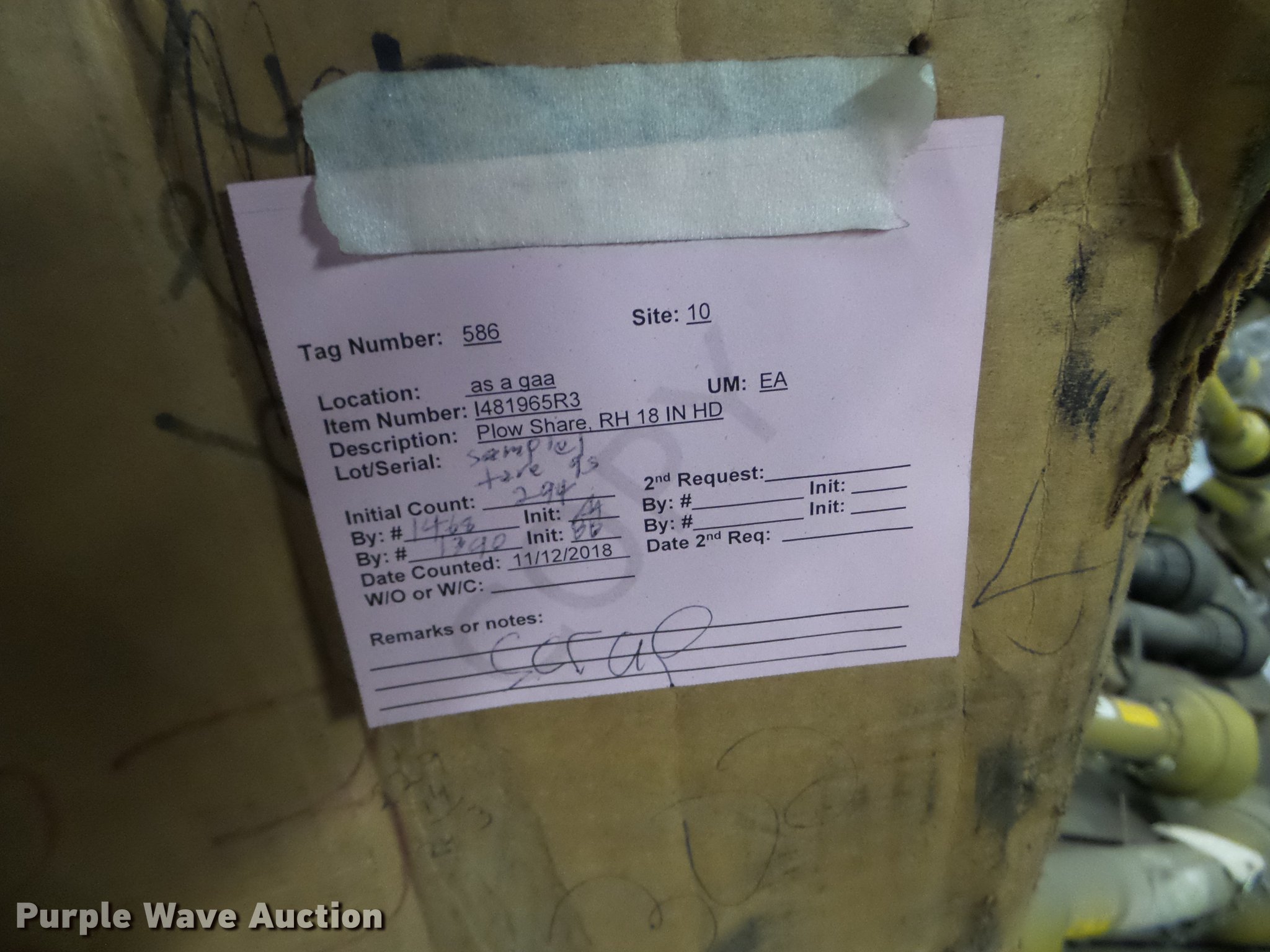Purple Wave is selling a used Tools in Iowa. This item is a Equipment parts with the following: (12) right side plow beams, (12) pivot pins, (81) right side coulter arms, (2) left side coulter arms, (294) 18" right side plow shares, (3) coulter attachment parts