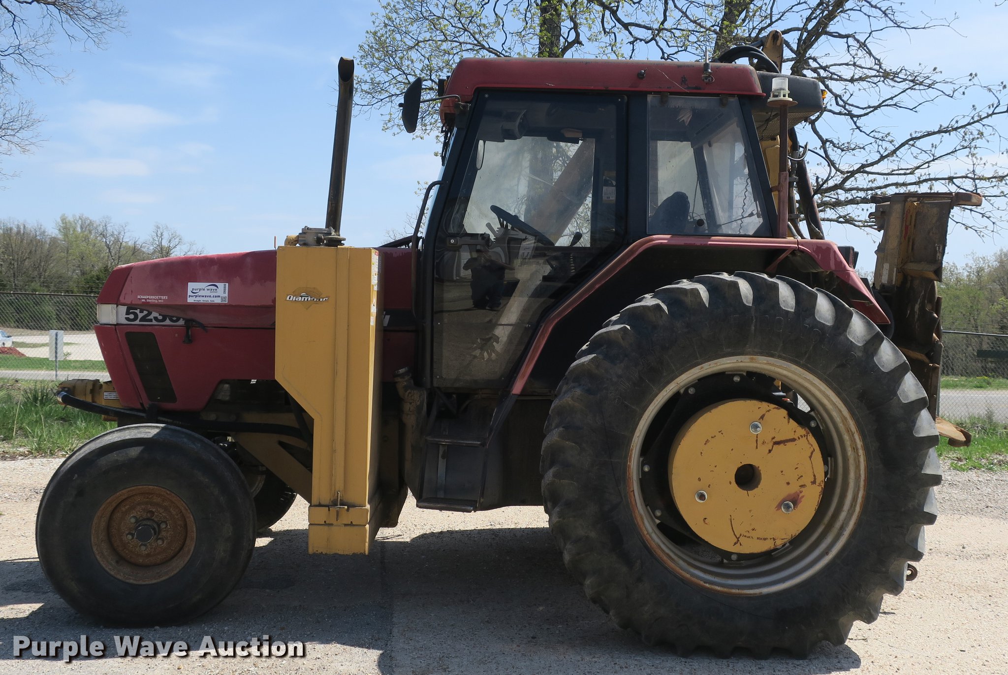 Purple Wave is selling a used Tractor in Missouri. This item is a Case IH 5230 tractor with the following: 7,742 hours on meter, Cummins 5.9L L6 diesel engine, Powershift transmission, 16F-8R gears, AC and heat, AM/FM, Spring suspension seat, Tilt steering wheel, Shades and visors, Three point, 540 PTO, ISO electrical outlet, Rear hydraulic remote sets, Wheel weight, 11.00-16 front tire, LT315/75R16 front tire, 18.4-38 rear tires, Diamond boom mower, 53" cutting capacity, Hydraulic operation, Four lever control, Glass cracked, Three point disabled, Serial JJF1051185, Unit# 3629