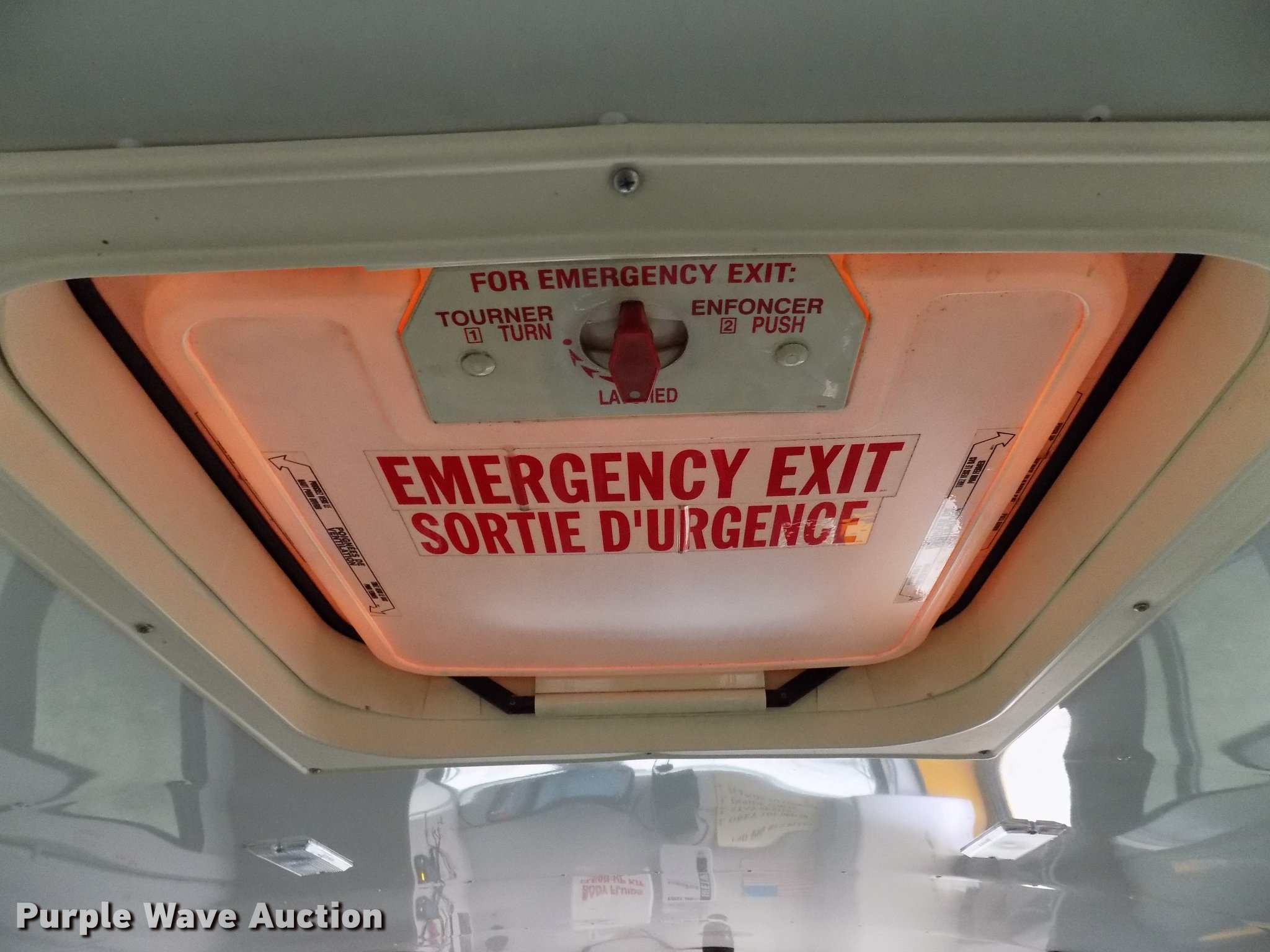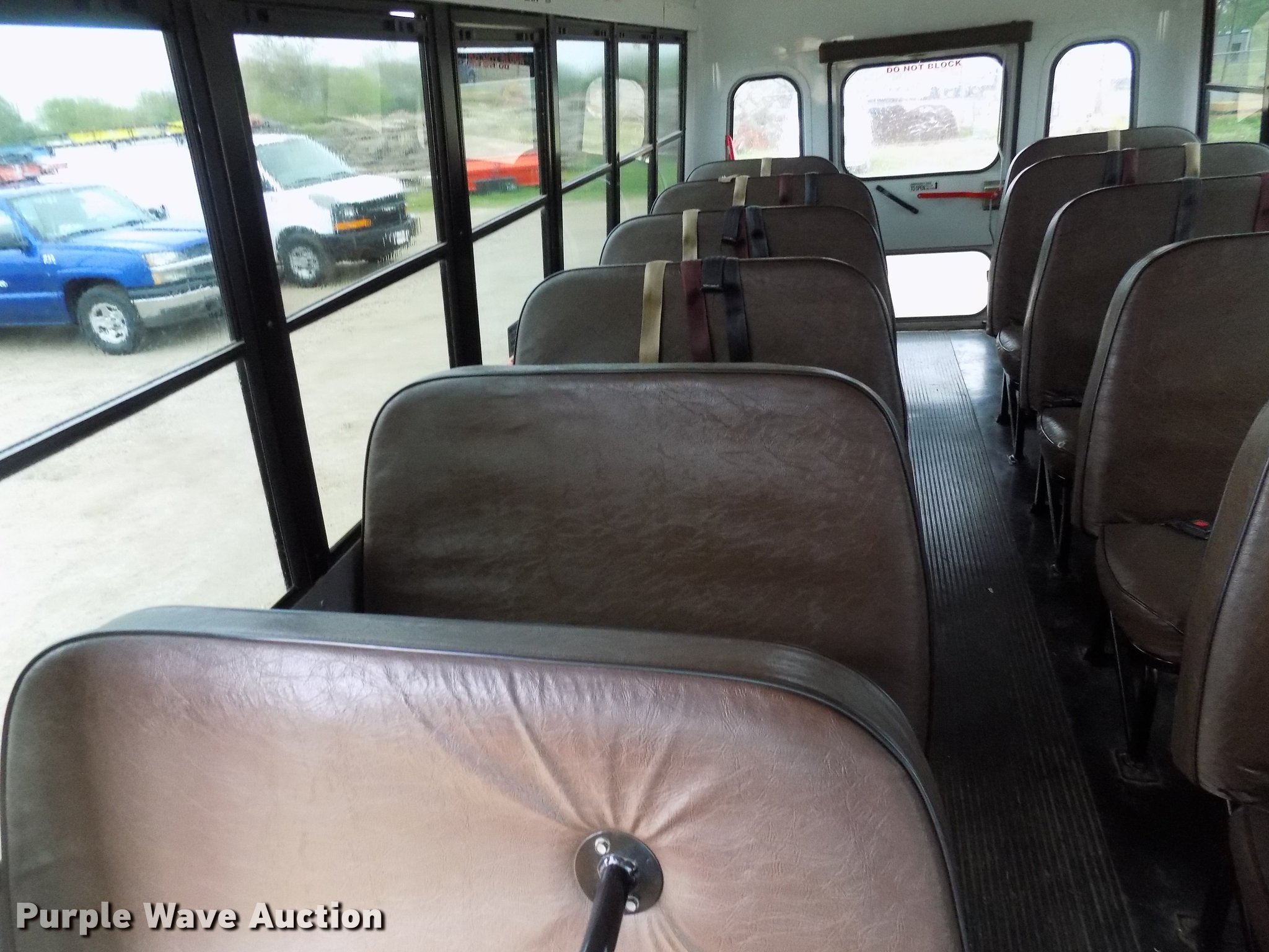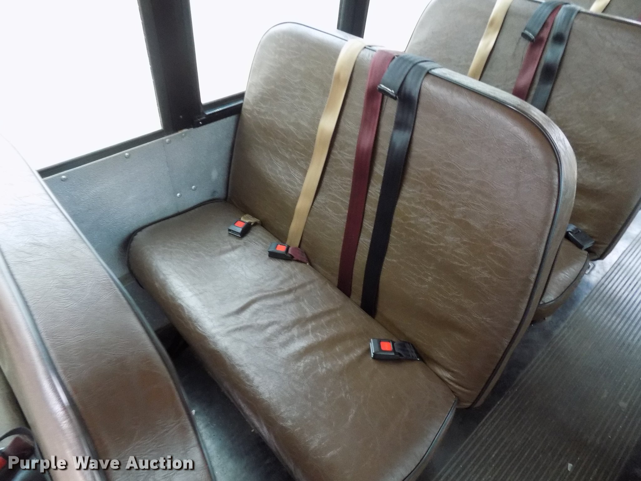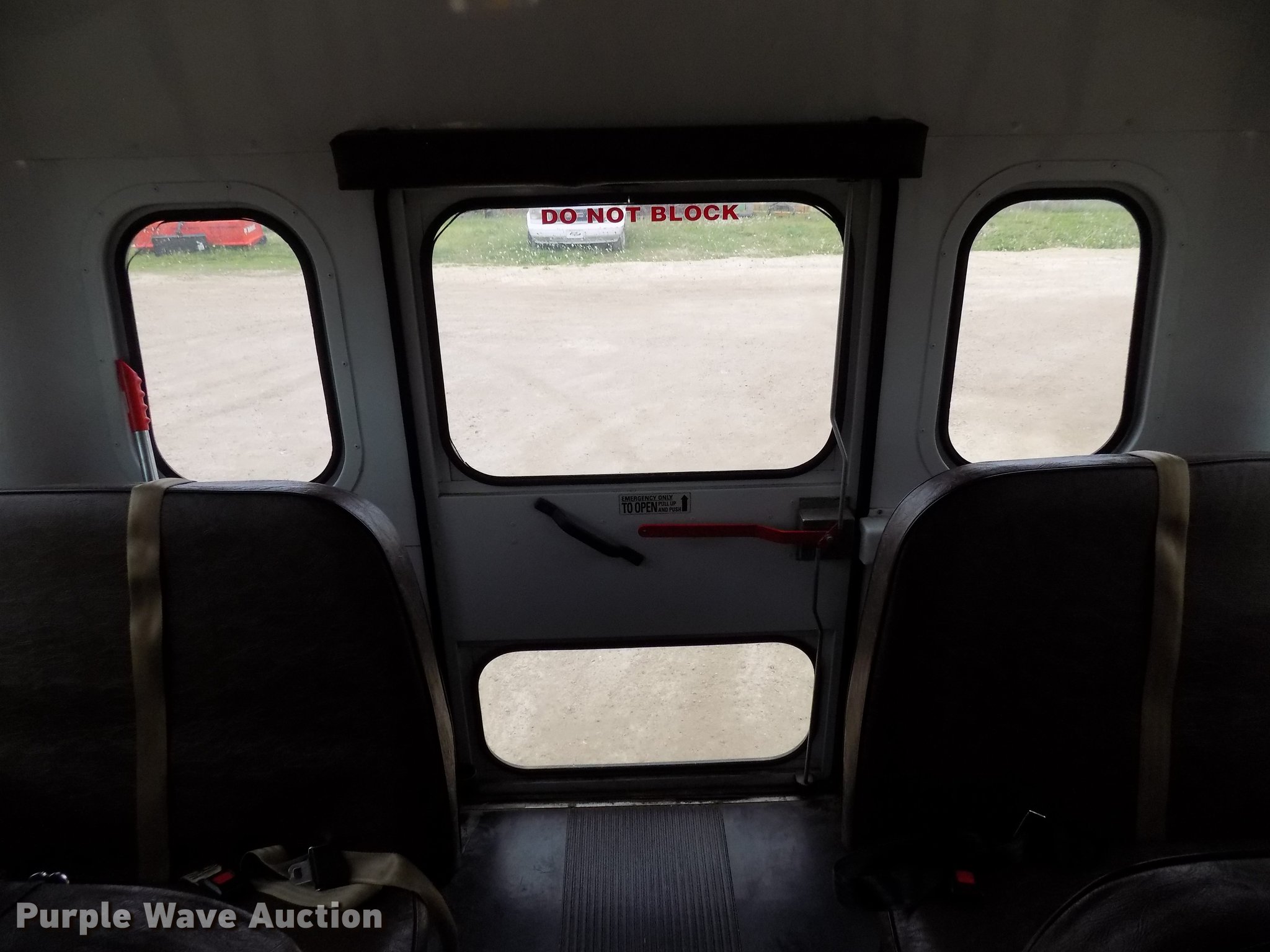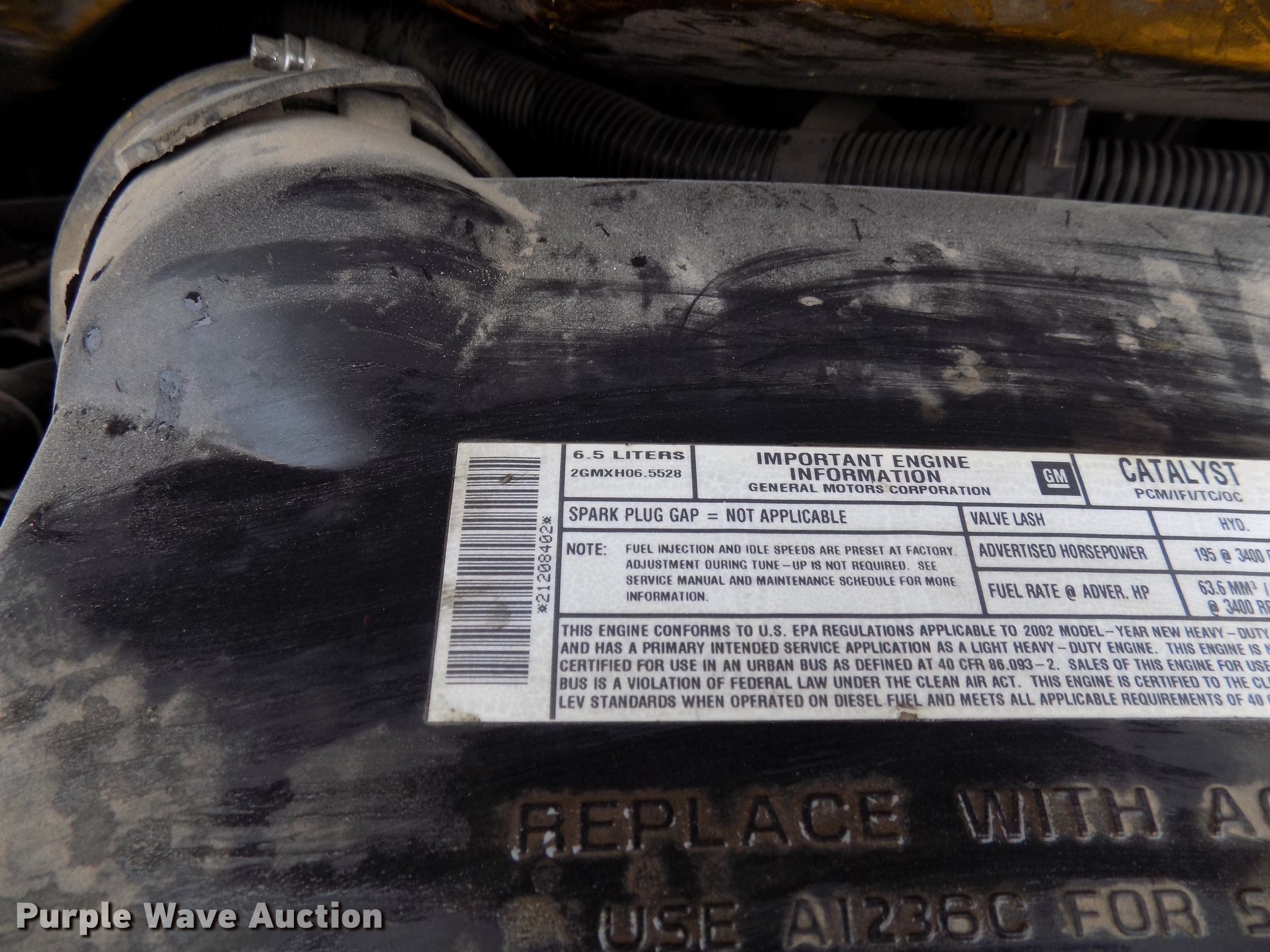 Purple Wave is selling a used Bus in Kansas. This item is a 2002 Chevrolet Express G3500 school bus with the following: 173,822 miles on odometer, 6.5L V8 OHV 16V diesel engine, Automatic transmission, Single axle, AC and heat, 28 passenger capacity, (10) adult seats, Seat belts, Ceiling and rear emergency exits, Stop sign, Hydraulic brakes, 225/75R16 tires, GVWR 12,000 lbs, Transmission issues