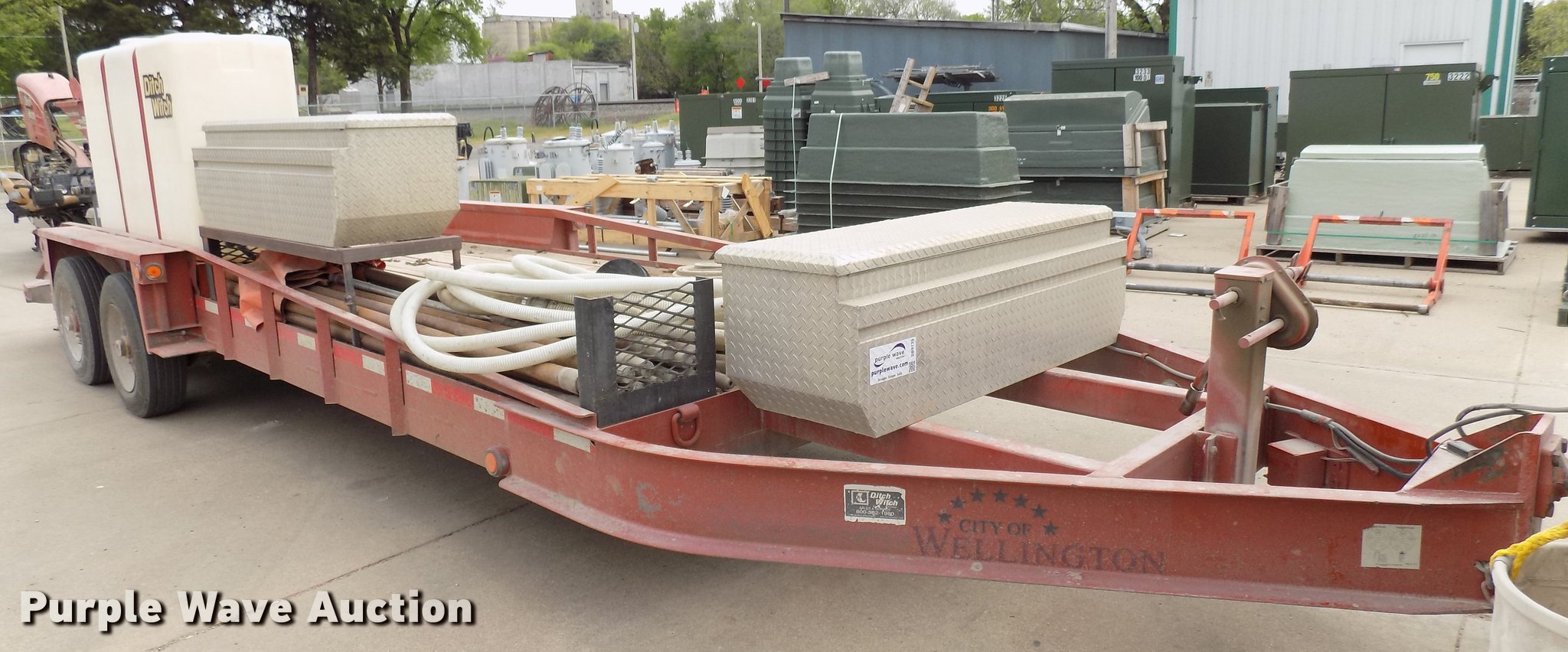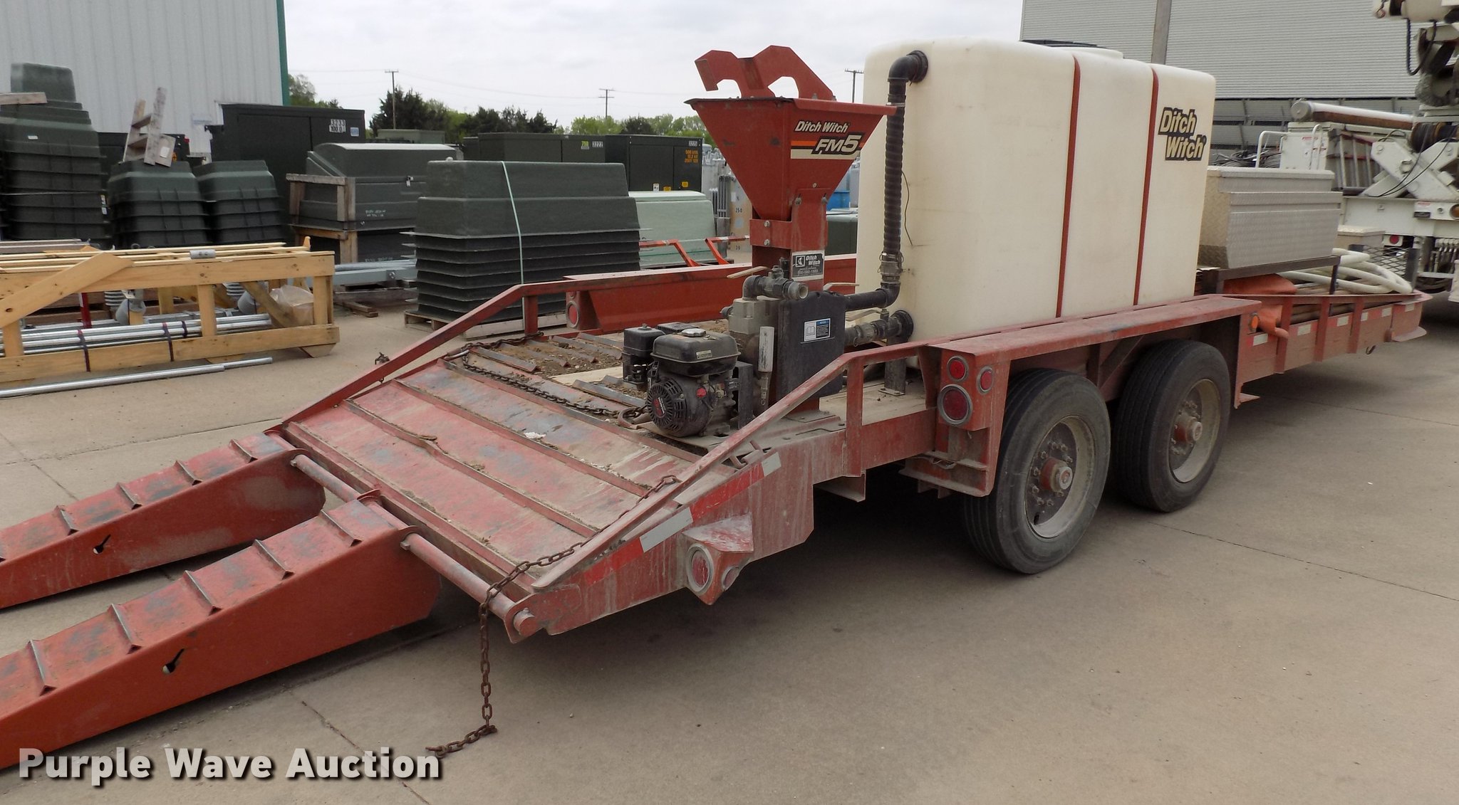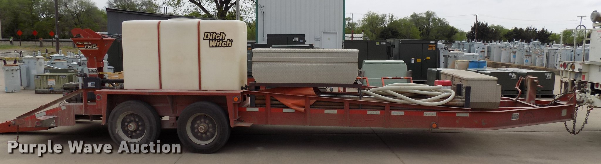 Purple Wave is selling a used Directional Boring Unit in Kansas. This item is a 2006 Ditch Witch JT2020 directional boring unit with the following: 1,078 hours on meter, Cummins four cylinder diesel engine, Serial 68040042, FMC L0618comp water pump, 30 gallon per minute capacity, (40) drill stems, (15) additional drill stems, 10'L, 200 gallon poly tank and cradle, Ditch Witch FM5 fluid mixing system, 531 hours on meter, Honda GX160 gas engine, 5.5 HP, 11.5"W rubber tracks, 2006 Belshe equipment trailer, 32'L x 88"W, Spring suspension, Electric brakes, Single axle, 215/75R17.5 tires, 752 display not included, Ground drive remote not included, Serial CMWJ2020J60000193