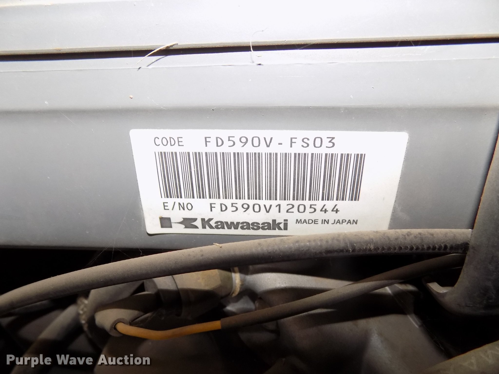 Purple Wave is selling a used Lawn Mower in Kansas. This item is a John Deere F725 lawn mower with the following: 48" cut, Kawasaki 585cc gas engine, 20x10.00-8 front tires, 15x6.00-6 rear tires, Serial TCF725X150178