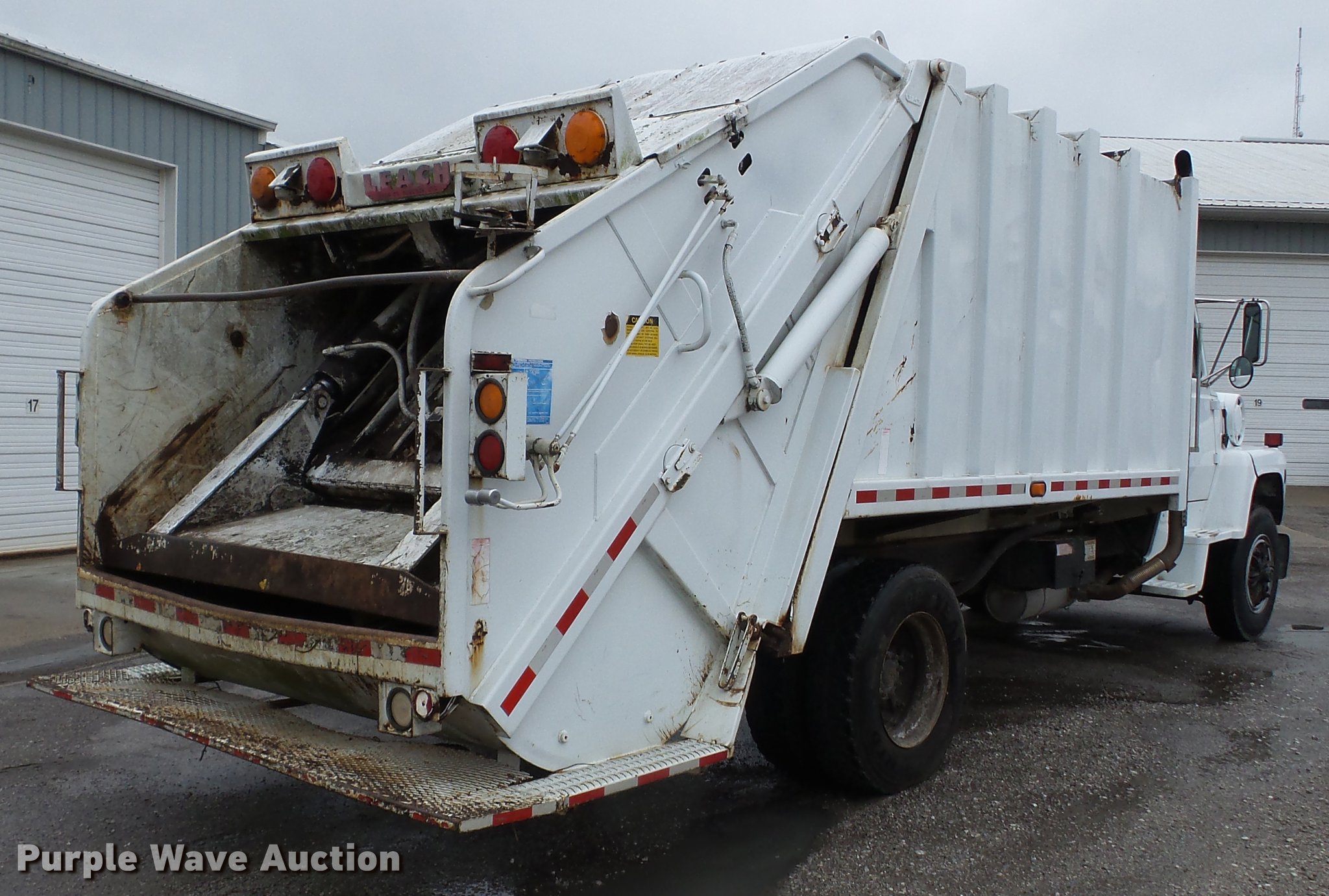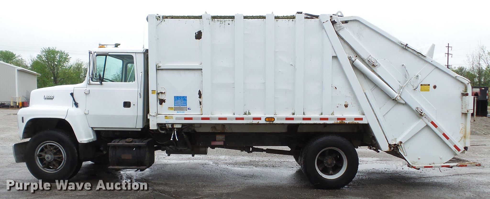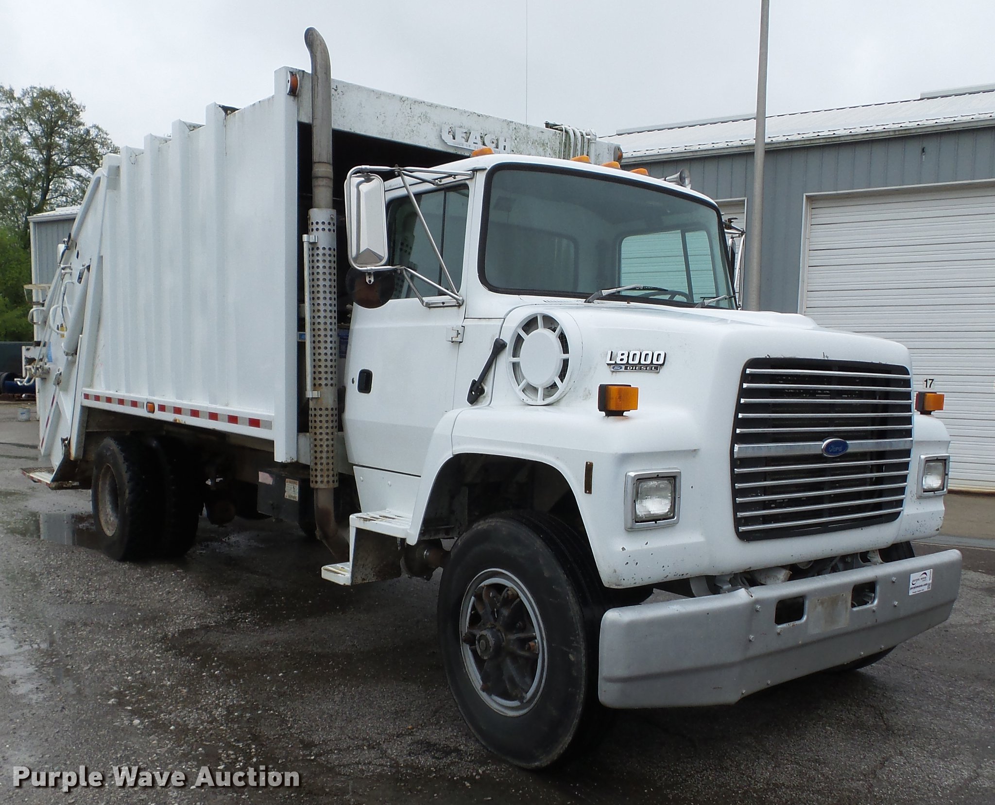 Purple Wave is selling a used Refuse Truck in Missouri. This item is a 1994 Ford L8000 refuse truck with the following: 100,458 miles on odometer, Cummins 8.3L L6 diesel engine, Serial 44908Z33, Allison automatic transmission, Single axle, Heat, Air suspension seat, PTO, Leech 20 refuse bed, 20 yd. capacity, Rear load, Serial 2218, Single fuel tank, Spring suspension, Air brakes, 204" wheelbase, 11R22.5 tires, GVWR 33,000 lbs