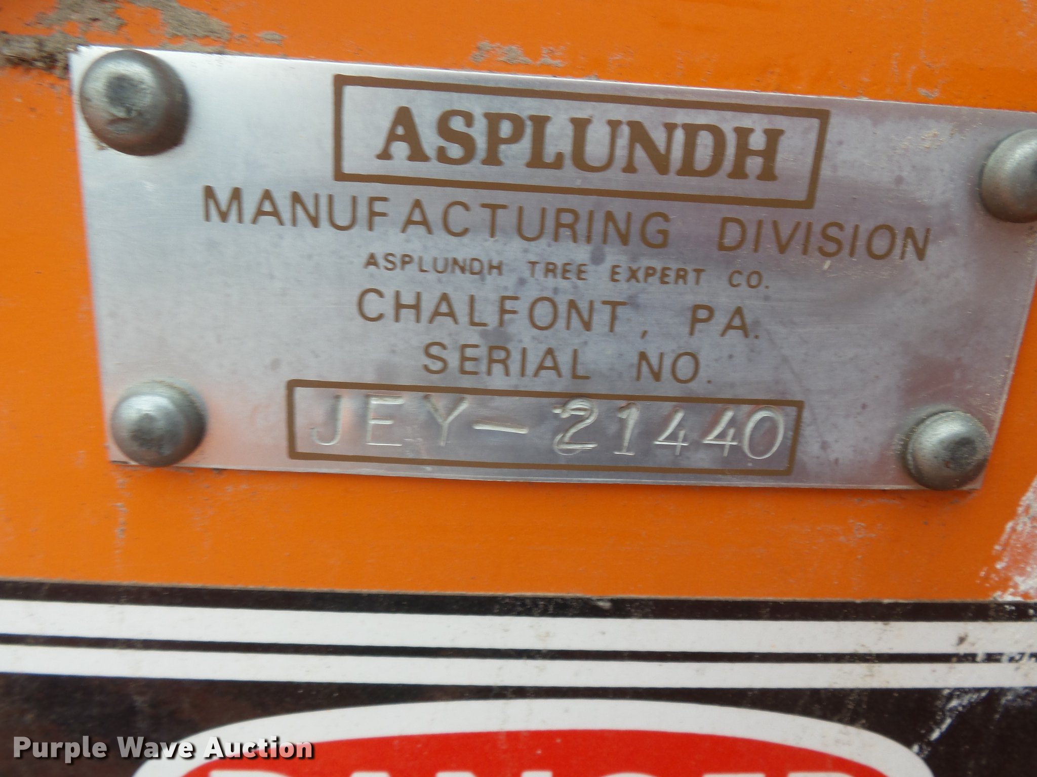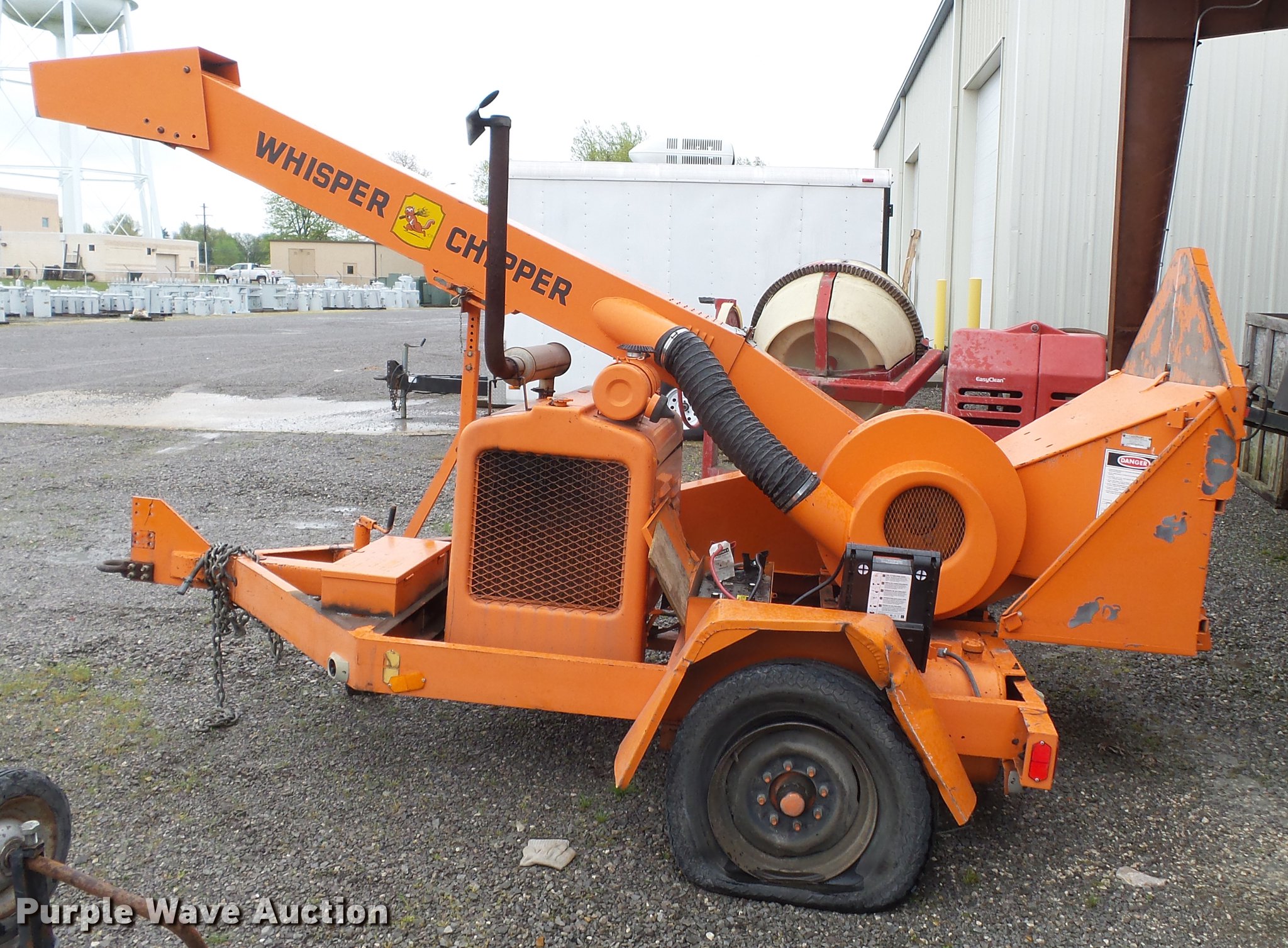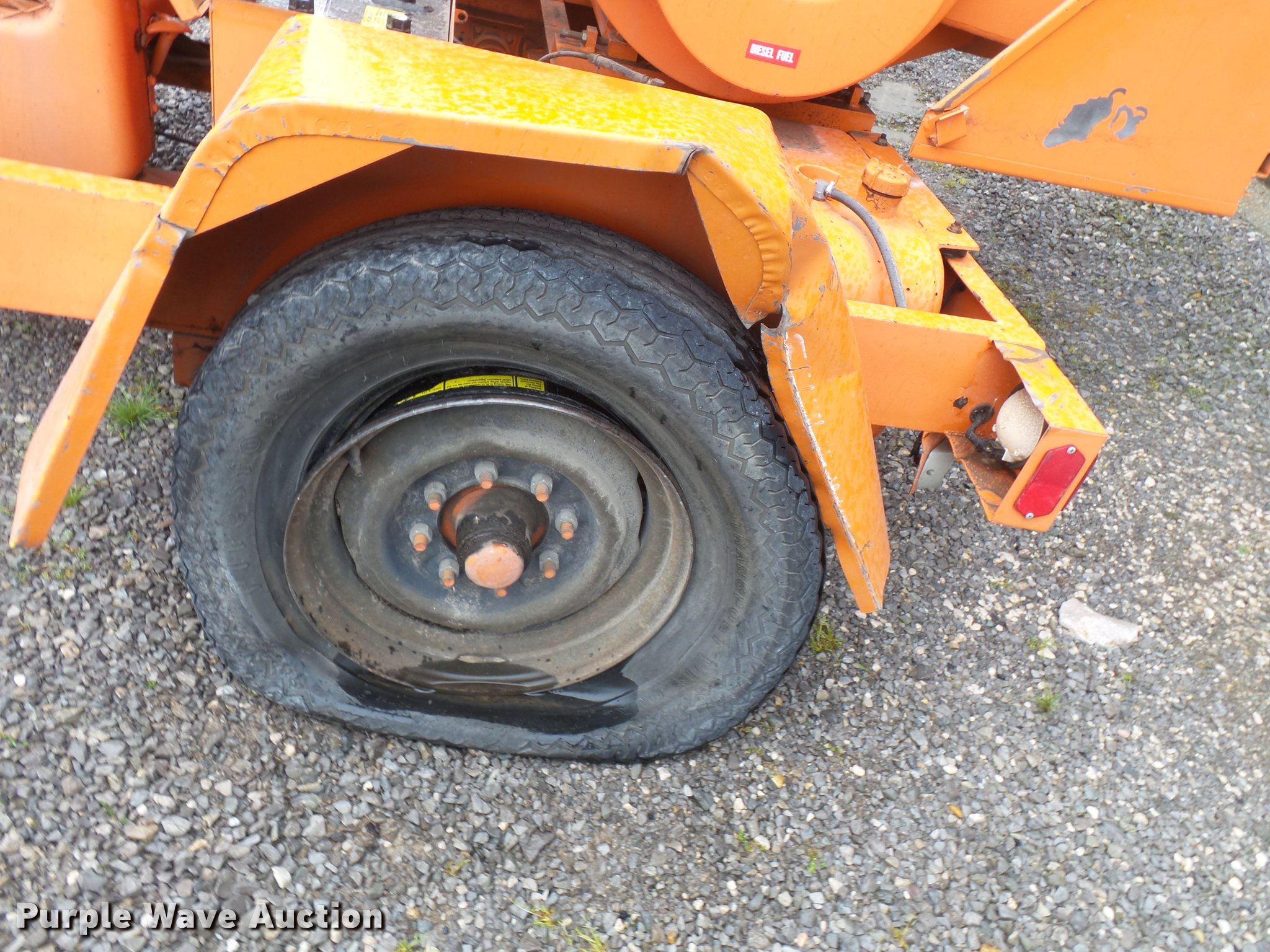 Purple Wave is selling a used Wood Chipper or Stump Grinder in Missouri. This item is a Asplundh Whisper chipper with the following: Hercules four cylinder diesel engine, Serial E13457152D2300X295, Rockford 4-26165 manual transmission, 1F gear, Pintle hitch, 8.75-16.5 tires, Dead battery, Non-operational chipper, Serial JEY21440