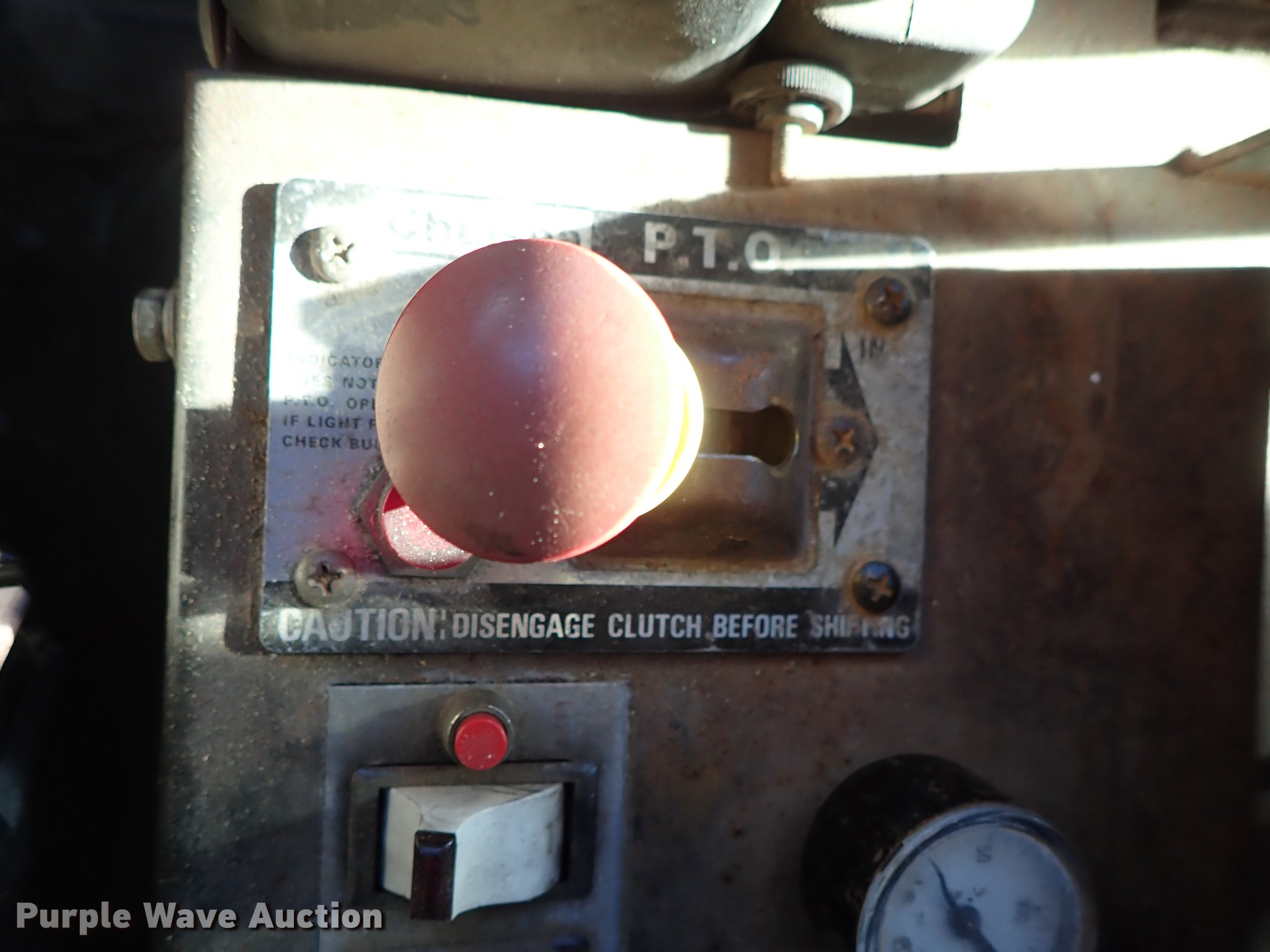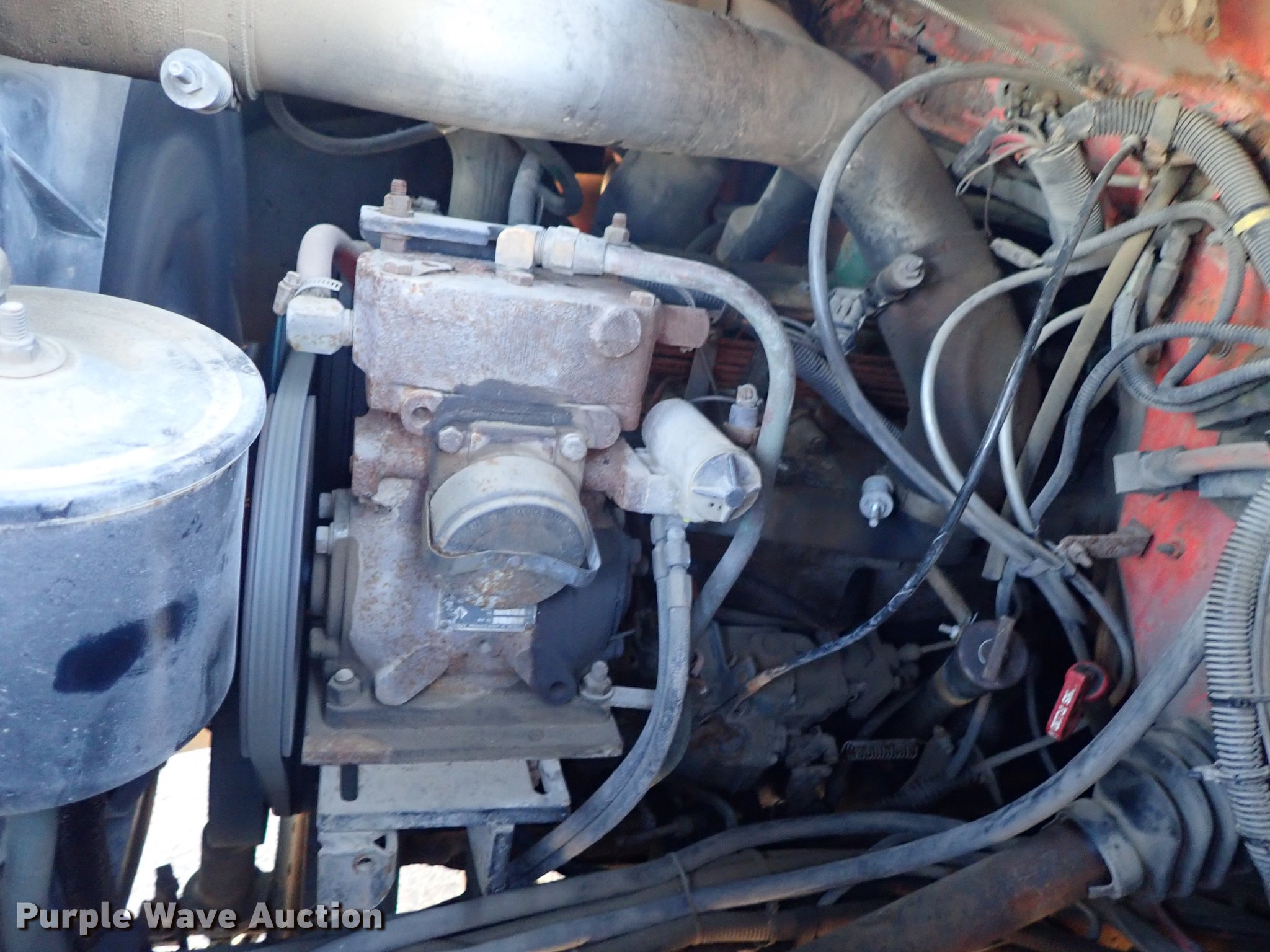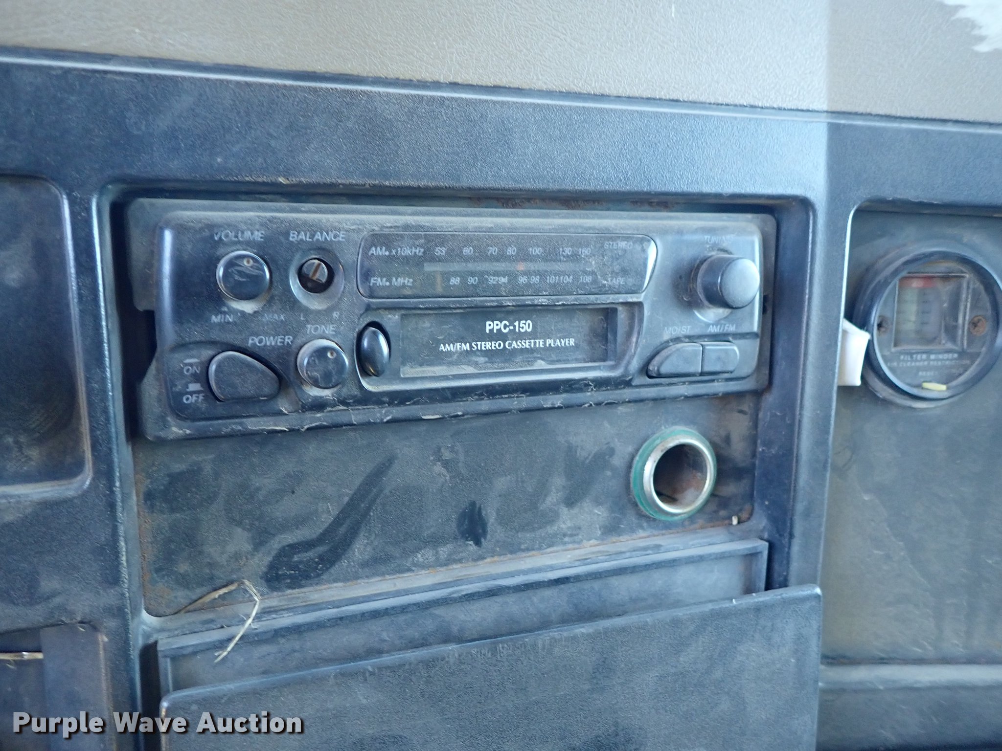 Purple Wave is selling a used Construction Dump Truck in Kansas. This item is a 1991 International 4900 dump truck with the following: 191,048 miles on odometer, International DT466 7.6L L6 diesel engine, Automatic transmission, Tandem axle, Heat, AM/FM, In-cab spreader controls, In-cab plow controls, Air suspension seat, PTO, 13'L x 8'W steel dump bed, Flink stainless steel spreader, 13'L, Seven cu. yd. capacity, Single spinner, 11'W snow plow, Bolt-on cutting edge, Plow lights, Pintle hitch, Trailer wiring, Spring suspension, Air brakes, 295/75R22.5 tires, Front leaf spring cracked