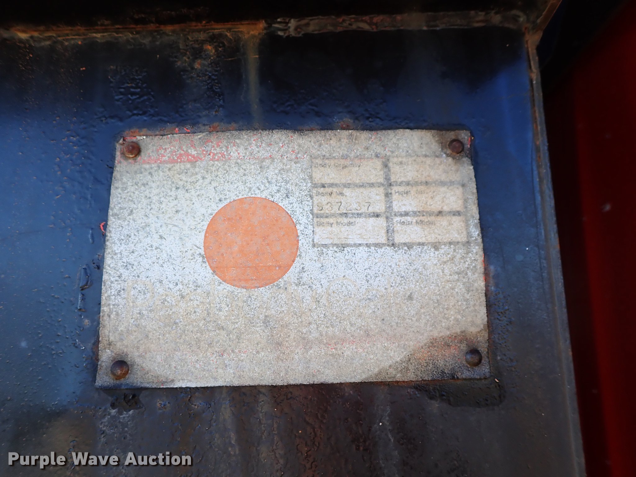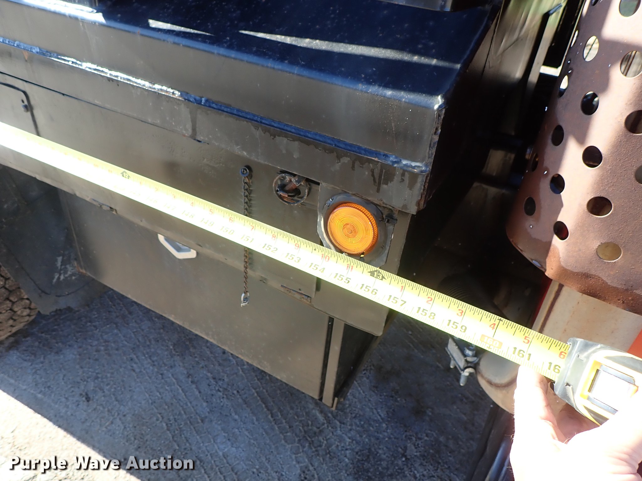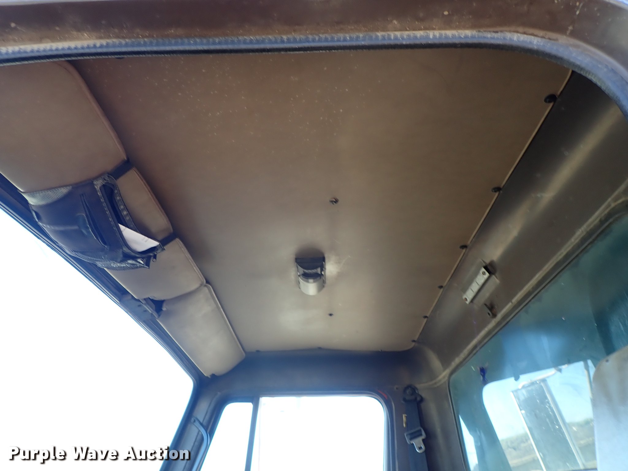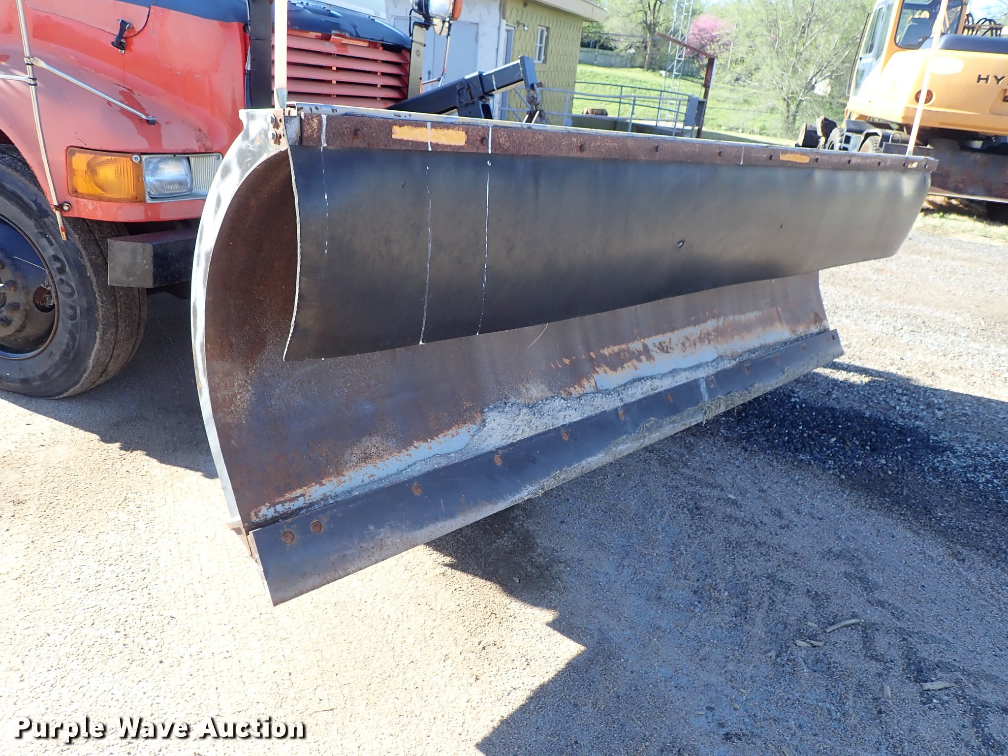 Purple Wave is selling a used Construction Dump Truck in Kansas. This item is a 1991 International 4900 dump truck with the following: 191,048 miles on odometer, International DT466 7.6L L6 diesel engine, Automatic transmission, Tandem axle, Heat, AM/FM, In-cab spreader controls, In-cab plow controls, Air suspension seat, PTO, 13'L x 8'W steel dump bed, Flink stainless steel spreader, 13'L, Seven cu. yd. capacity, Single spinner, 11'W snow plow, Bolt-on cutting edge, Plow lights, Pintle hitch, Trailer wiring, Spring suspension, Air brakes, 295/75R22.5 tires, Front leaf spring cracked