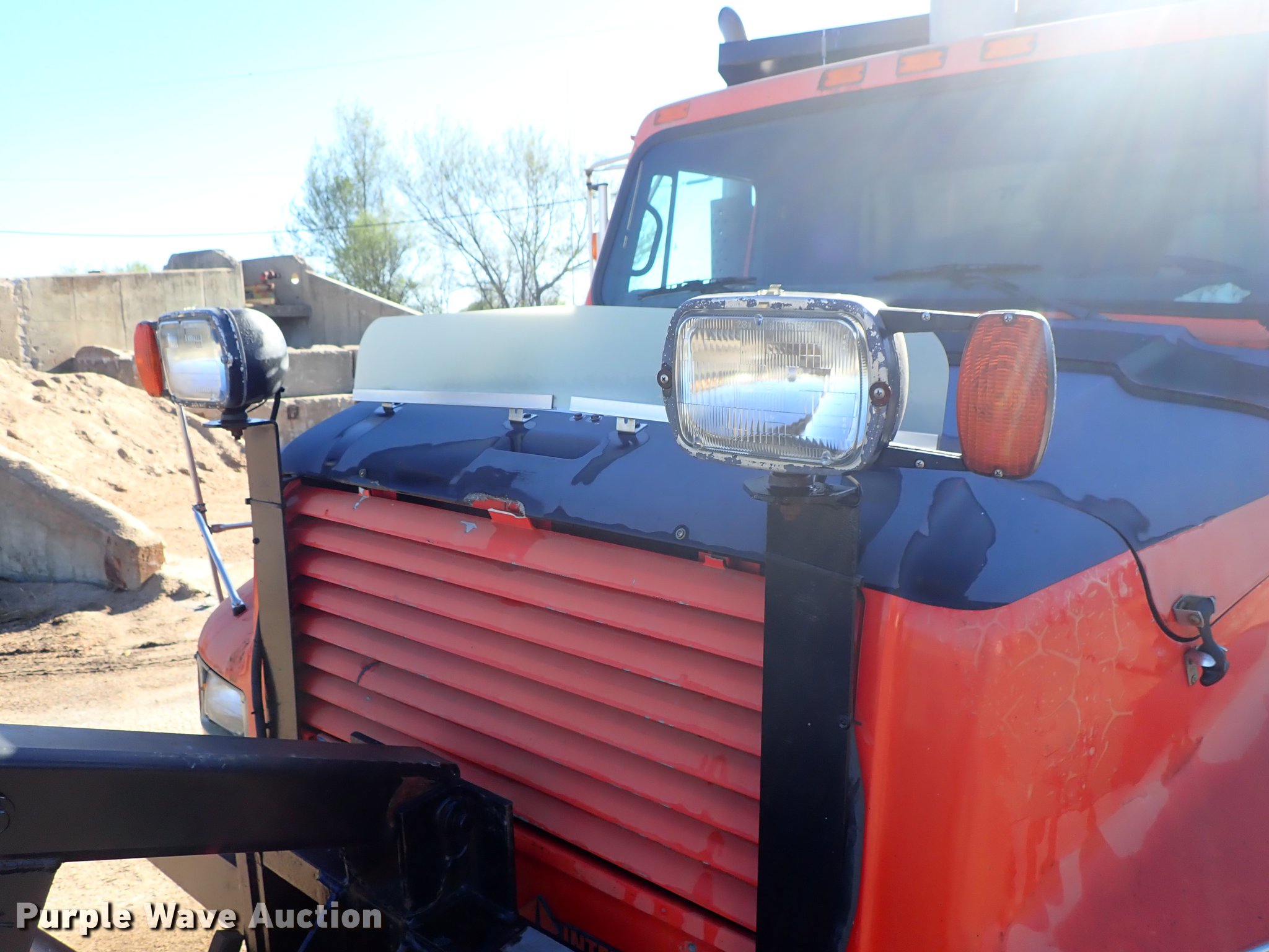 1991 International 4900 dump truck. 191,048 miles on odometer, International DT466 7.6L L6 diesel engine, Automatic transmission, Tandem axle, Heat, AM/FM, In-cab spreader controls, In-cab plow controls, Air suspension seat, PTO, 13'L x 8'W steel dump bed, Flink stainless steel spreader 13'L, Seven cu. yd. capacity, Single spinner, 11'W snow plow Bolt-on cutting edge, Plow lights, Pintle hitch, Trailer wiring, Spring suspension, Air brakes, 295/75R22.5 tires, Front leaf spring cracked. Kansas title. 1HTSHNGR3MH347688. City of Park City. Park City, KS 67219
