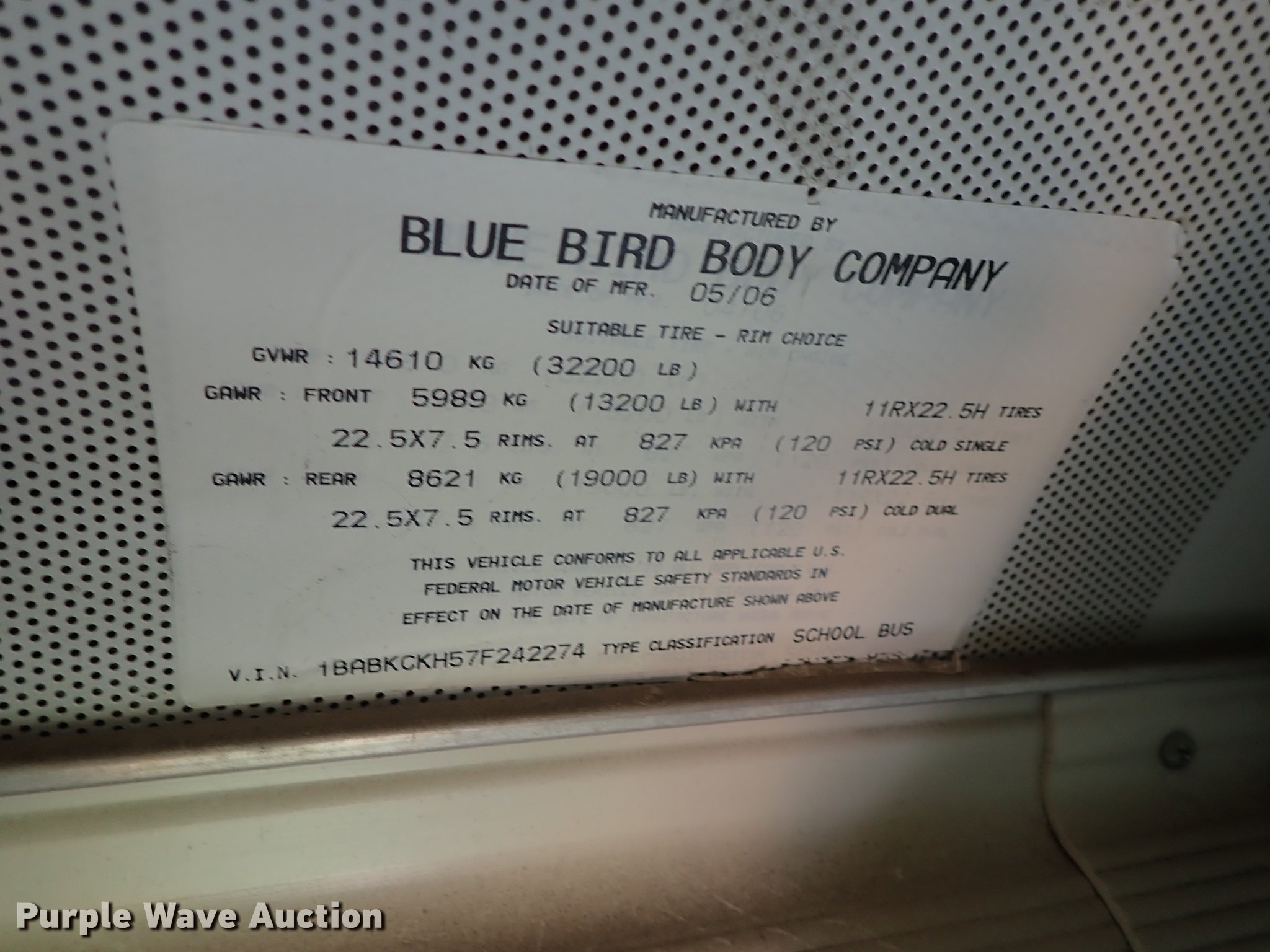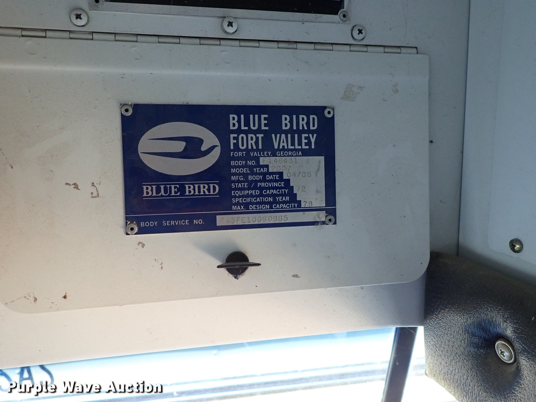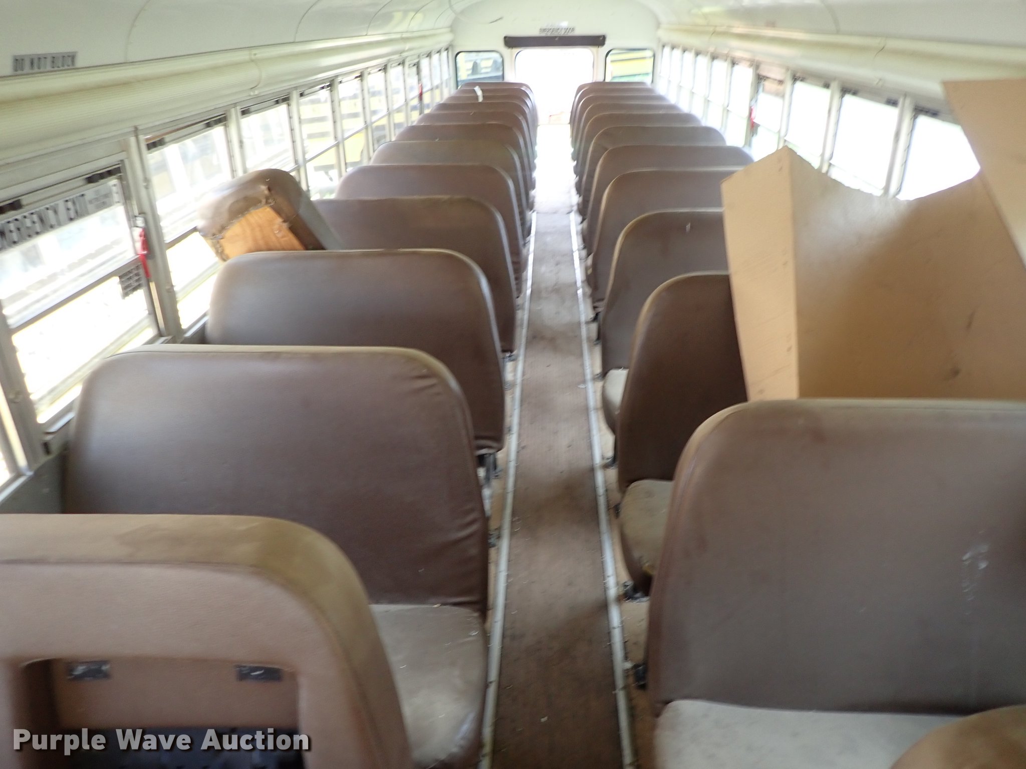 Purple Wave is selling a used Bus in Kansas. This item is a 2007 Blue Bird All American FE school bus with the following: Unknown miles on odometer, Caterpillar C7 7.2L L6 diesel engine, Automatic transmission, Heat, Rear, ceiling, and side emergency exits, Spring suspension, Hydraulic brakes, 11R22.5 tires, Dash parts pissing, Parts missing, Non-operational unit