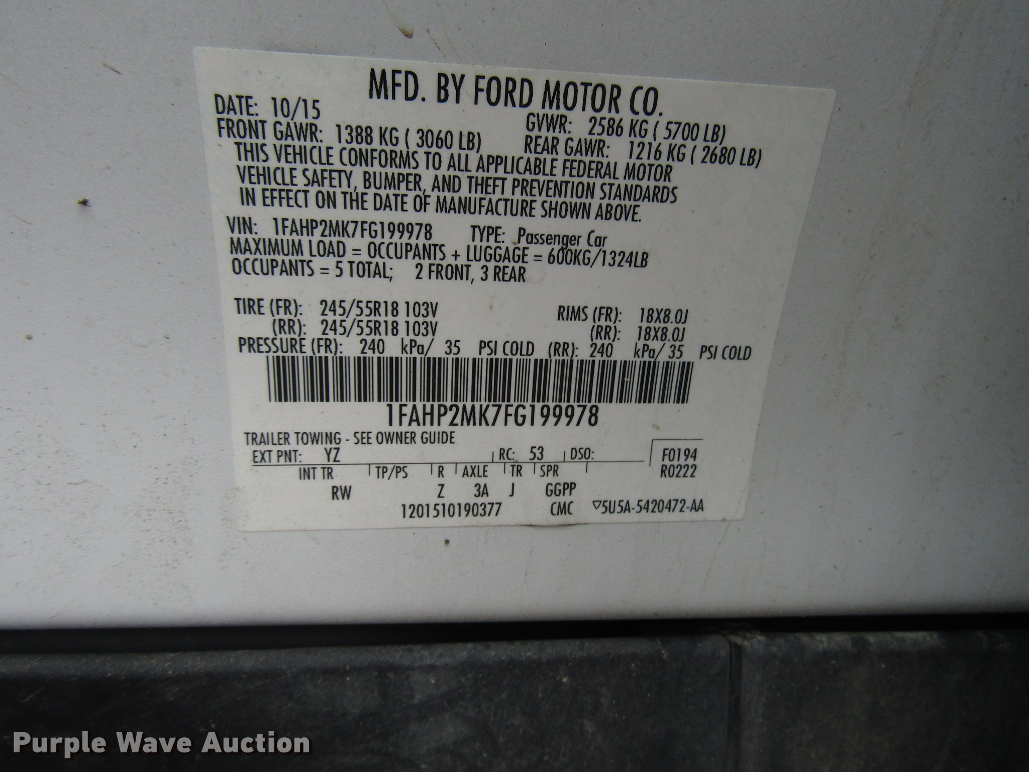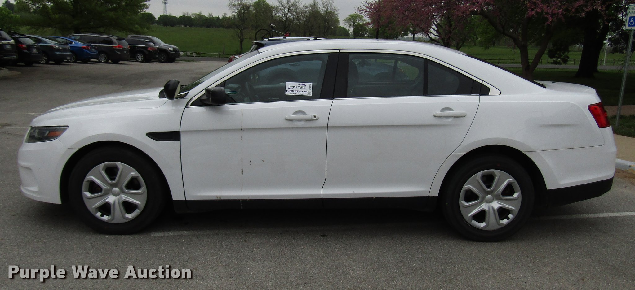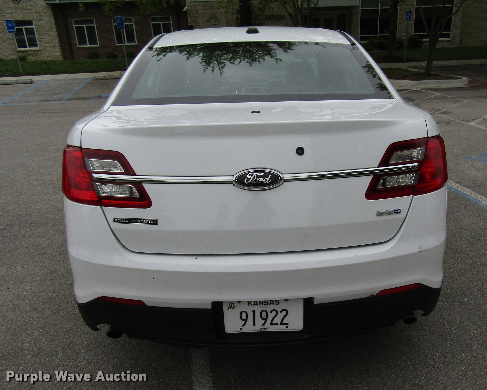 Purple Wave is selling a used Passenger Vehicle in Kansas. This item is a 2015 Ford Taurus Police Interceptor with the following: 122,930 miles on odometer, 3.7L V6 DOHC 24V gas engine, Automatic transmission, All wheel drive, AC and heat, Cruise, Power windows, locks, and seat, Heated mirrors, 245/55R18 tires, Rear door panel and seat missing